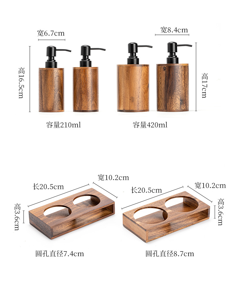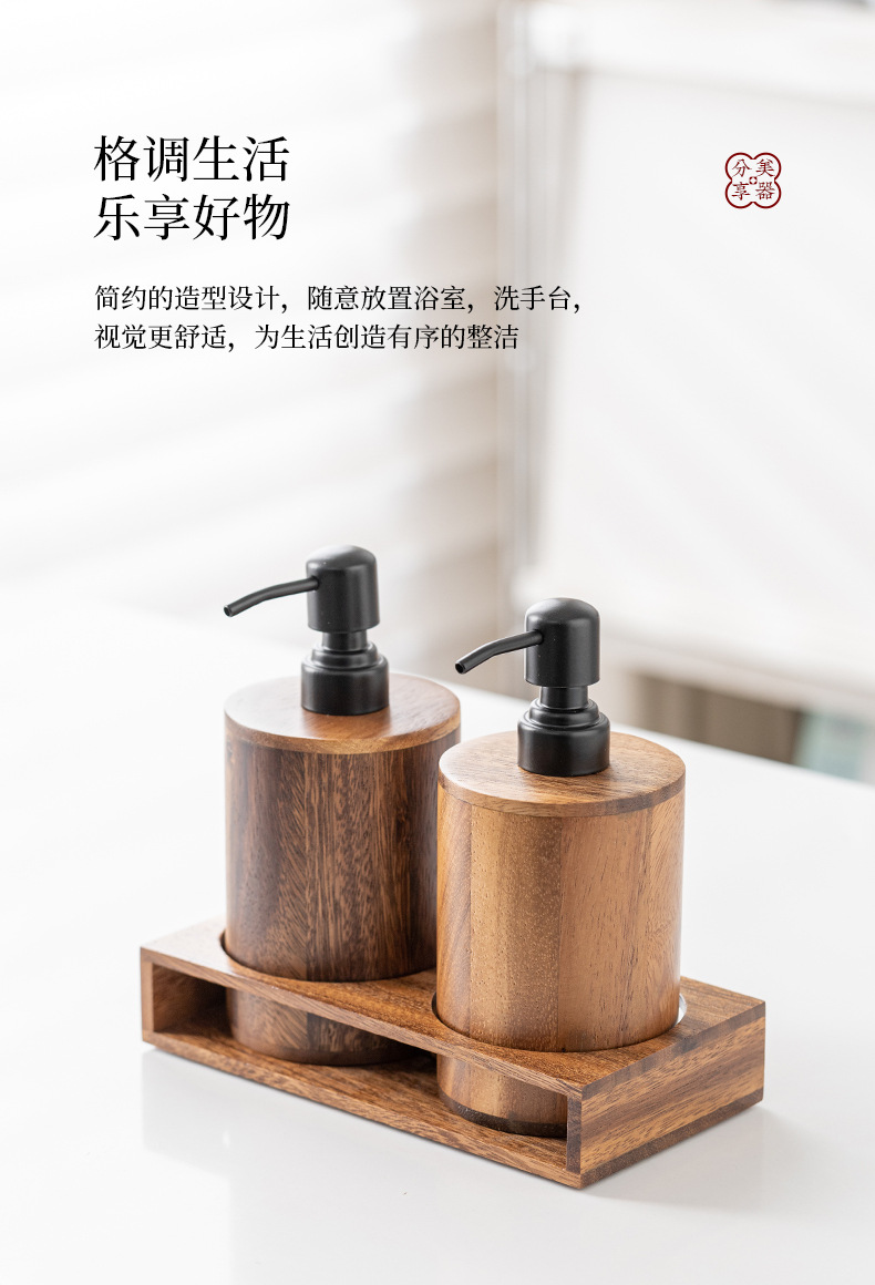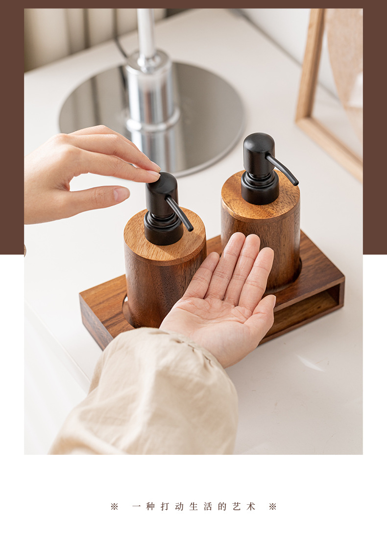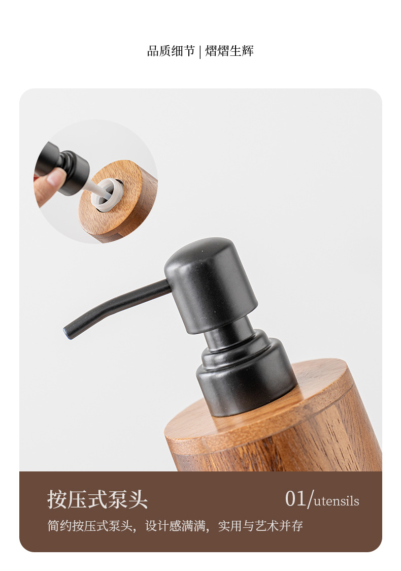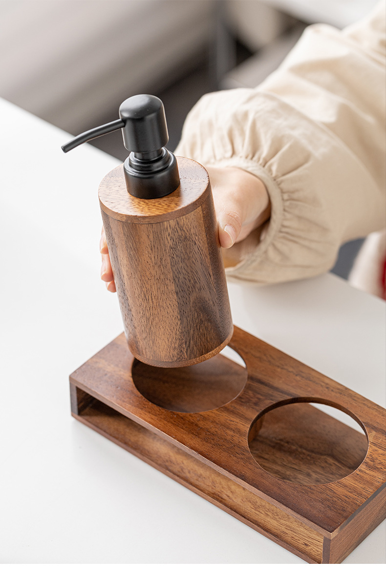 Loción de prensa de nogal botella vacía de madera maciza de lujo ligero hotel desinfectante de manos gel de ducha champú loción