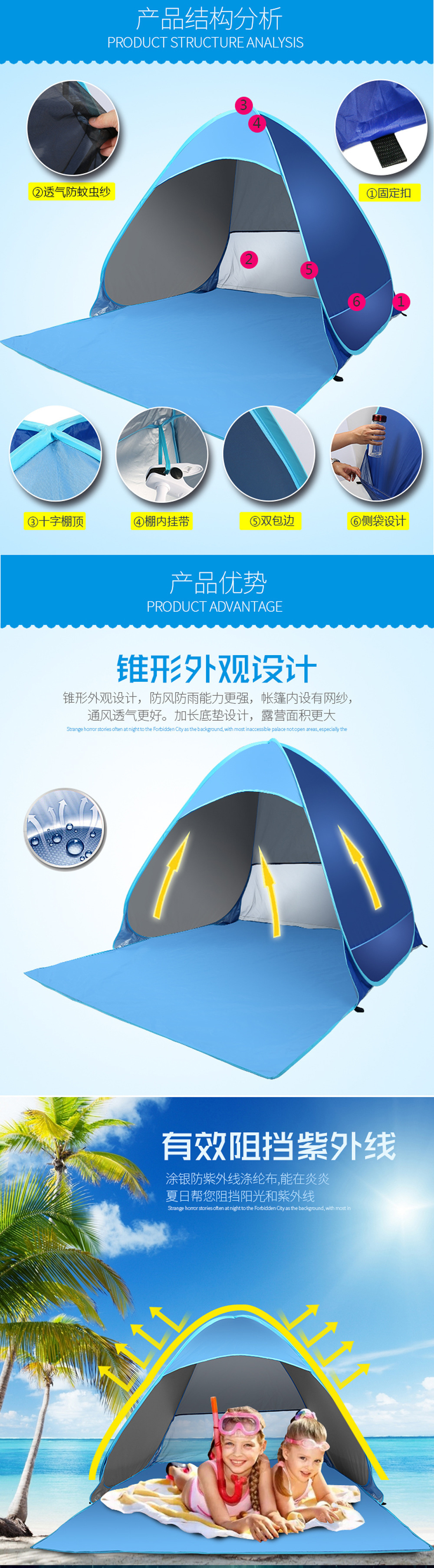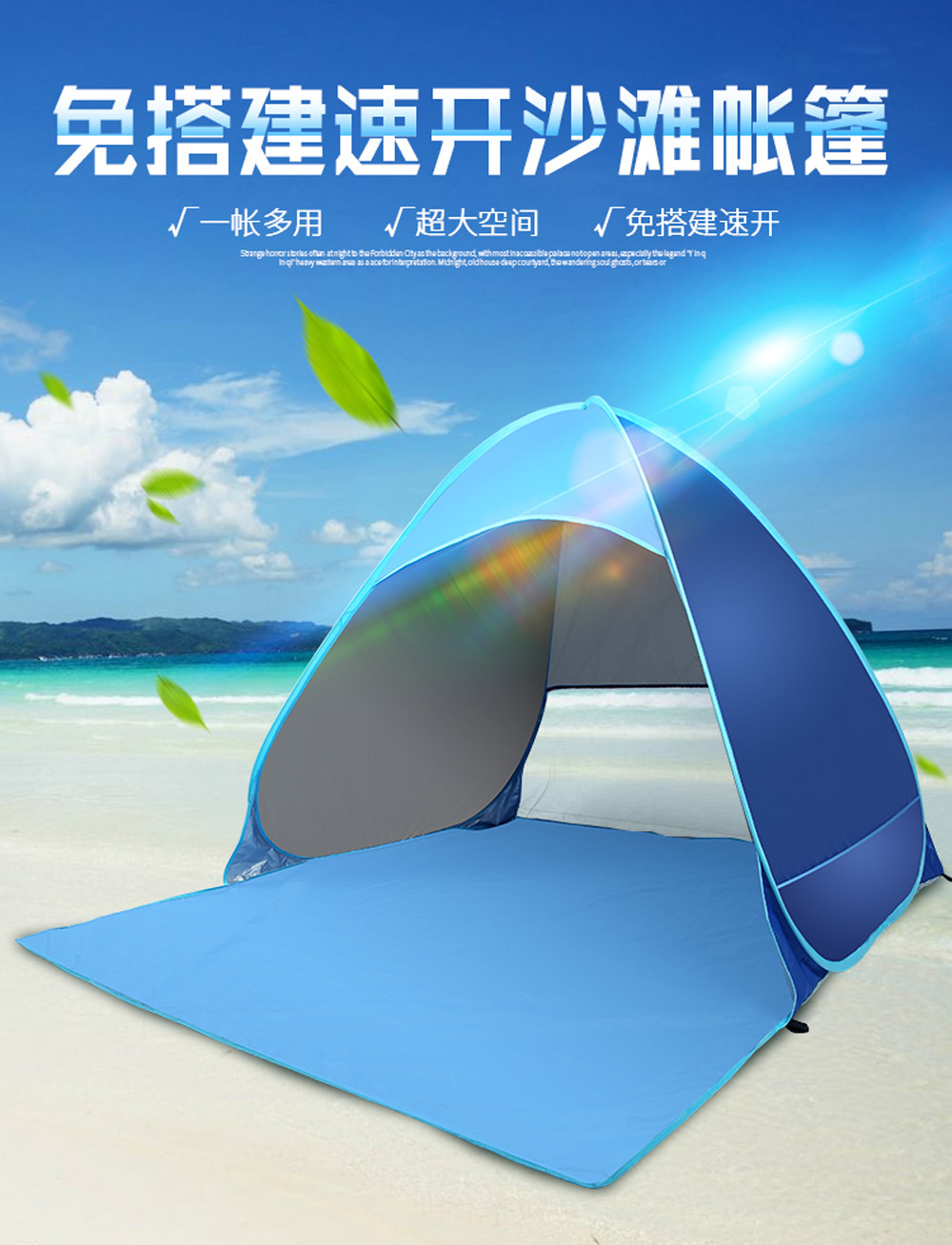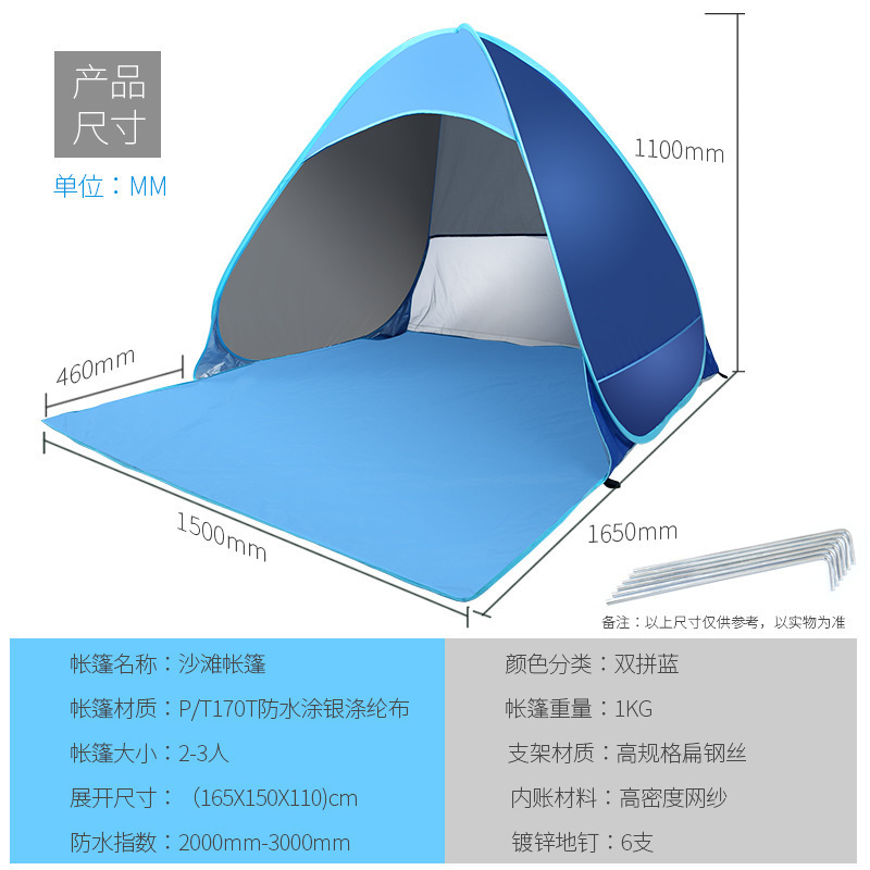 Acampamento de playa de acampamiento rápido sombreado solar plegable camping tent transpirable portátil al aire libre a prueba de viento y protección solar universal para cuatro estaciones