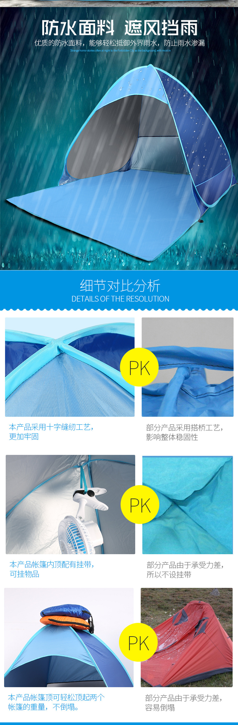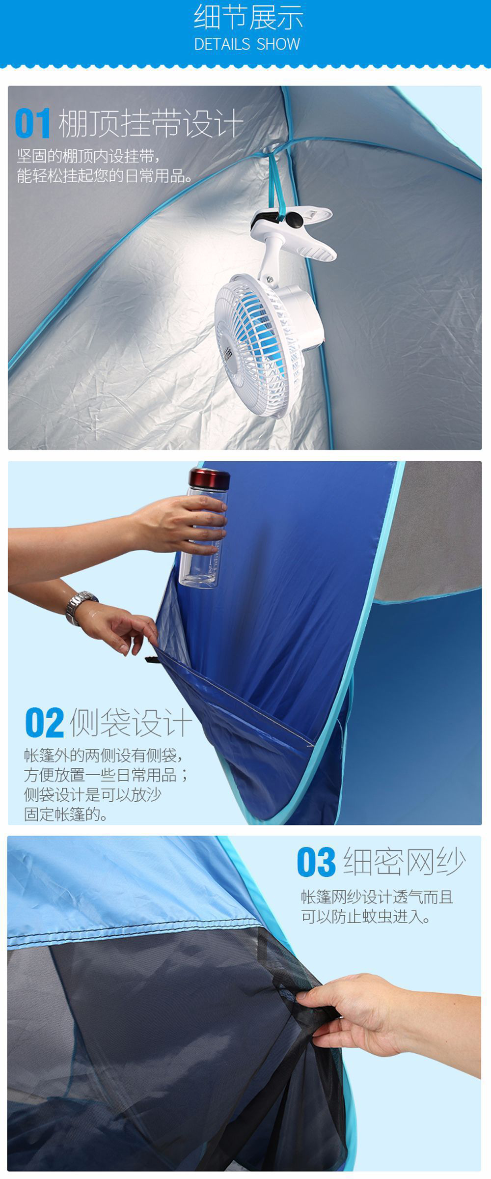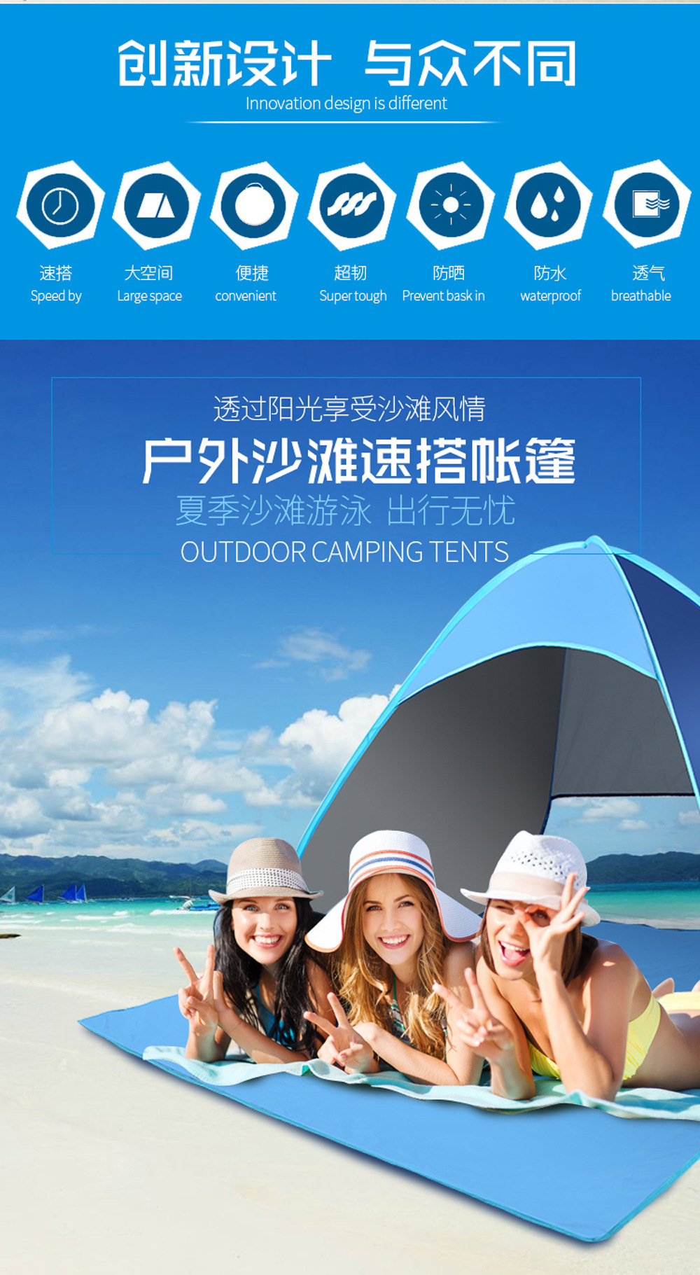 Acampamento de playa de acampamiento rápido sombreado solar plegable camping tent transpirable portátil al aire libre a prueba de viento y protección solar universal para cuatro estaciones