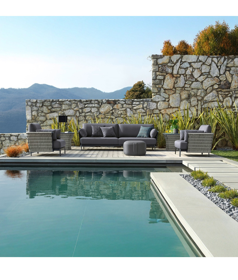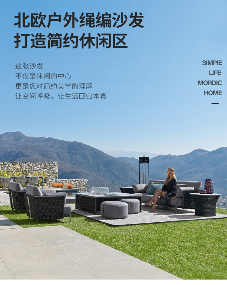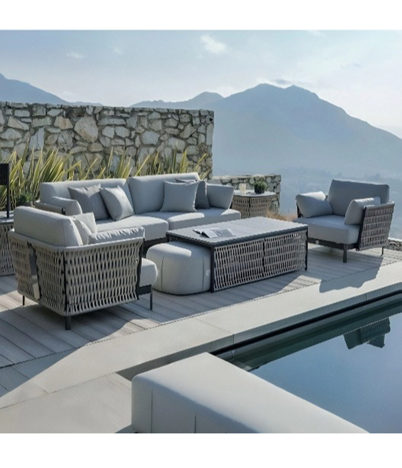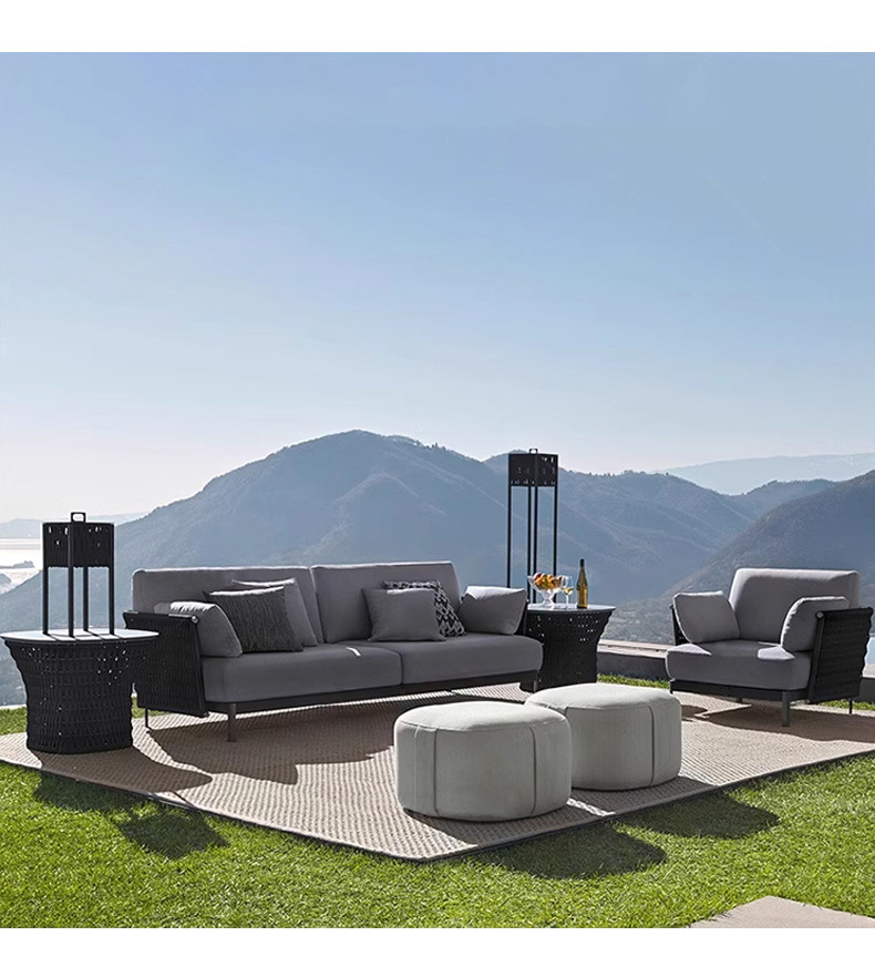 Sofá de caña al aire libre muebles clásicos combinación redonda balcón villa al aire libre patio jardín mesas y sillas