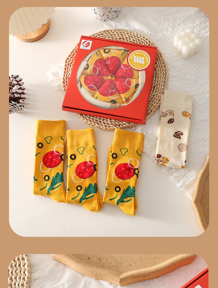 [4 pares de caja de regalo] calcetines de pizza creativos de algodón absorbente de sudor tendencia de personalidad de regalos extraños calcetines