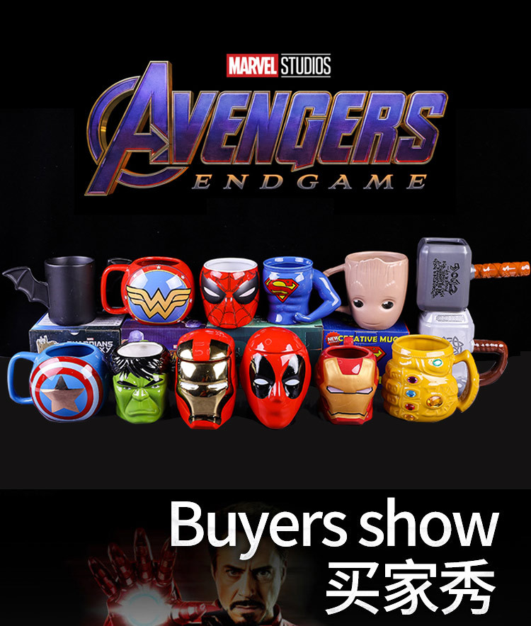 Cerámica transfronteriza Marvel Cup Iron Man con cubierta con cuchara taza Deadpool Thanos taza de agua tendencia de personalidad