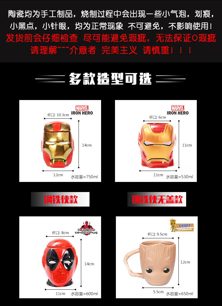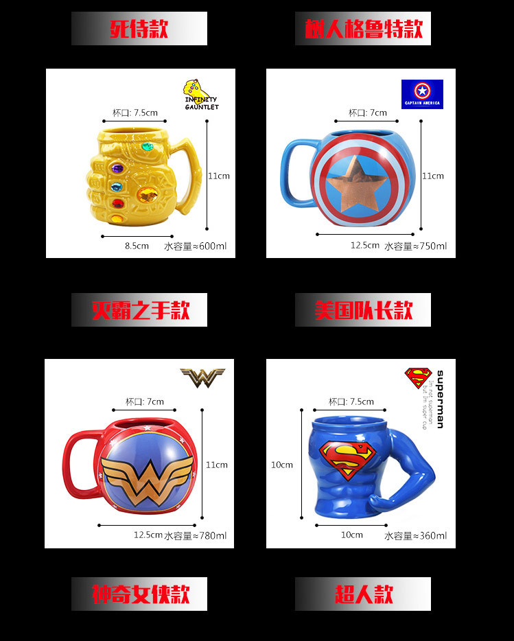 | Color | Taza de Iron Man sin tapa + cuchara de ingeniero, taza de Spider-Man + cuchara de ingeniero, taza de Hulk + cuchara de ingeniero, taza de Deadpool + cuchara de ingeniero, taza de Thanos + cuchara de ingeniero, taza de Superman + cuchara de ingeniero, taza de escudo del equipo americano + cuchara de ingeniero, taza de Mujer Maravilla + cuchara de ingeniero, taza de Iron Man con tapa + cuchara de ingeniero, taza de Tree Man + cuchara de ingeniero, taza de Hulk, taza de Deadpool, taza de Thanos, taza de Superman, taza de Iron Man con tapa, taza de árbol, taza de Iron Man con tapa en caja de regalo, taza de Iron Man sin tapa en caja de regalo, taza de regalo de Deadpool, Caja de regalo de la Copa de Thanos, caja de regalo de la Copa de Superman, caja de regalo de la Copa del Escudo de América |