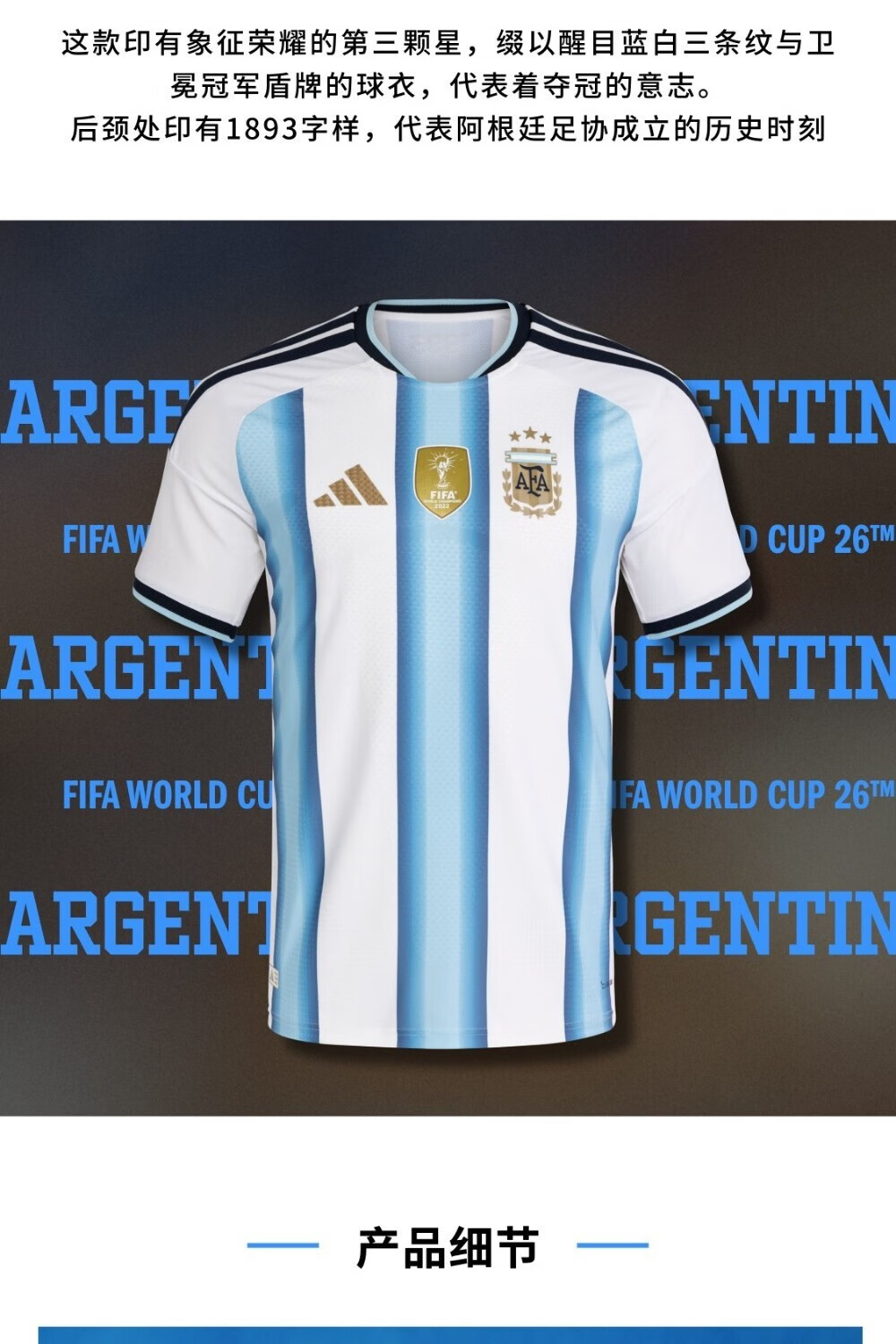 | Color | JM5897 - Jugador de manga corta, KA8068 - Jugador de manga larga, KH3934 - Edición especial del Jugador número 10 de Messi |