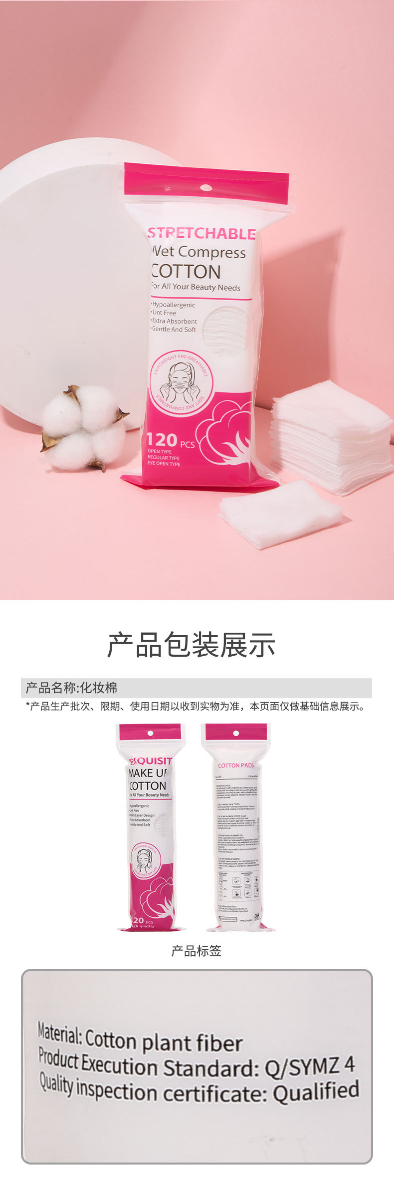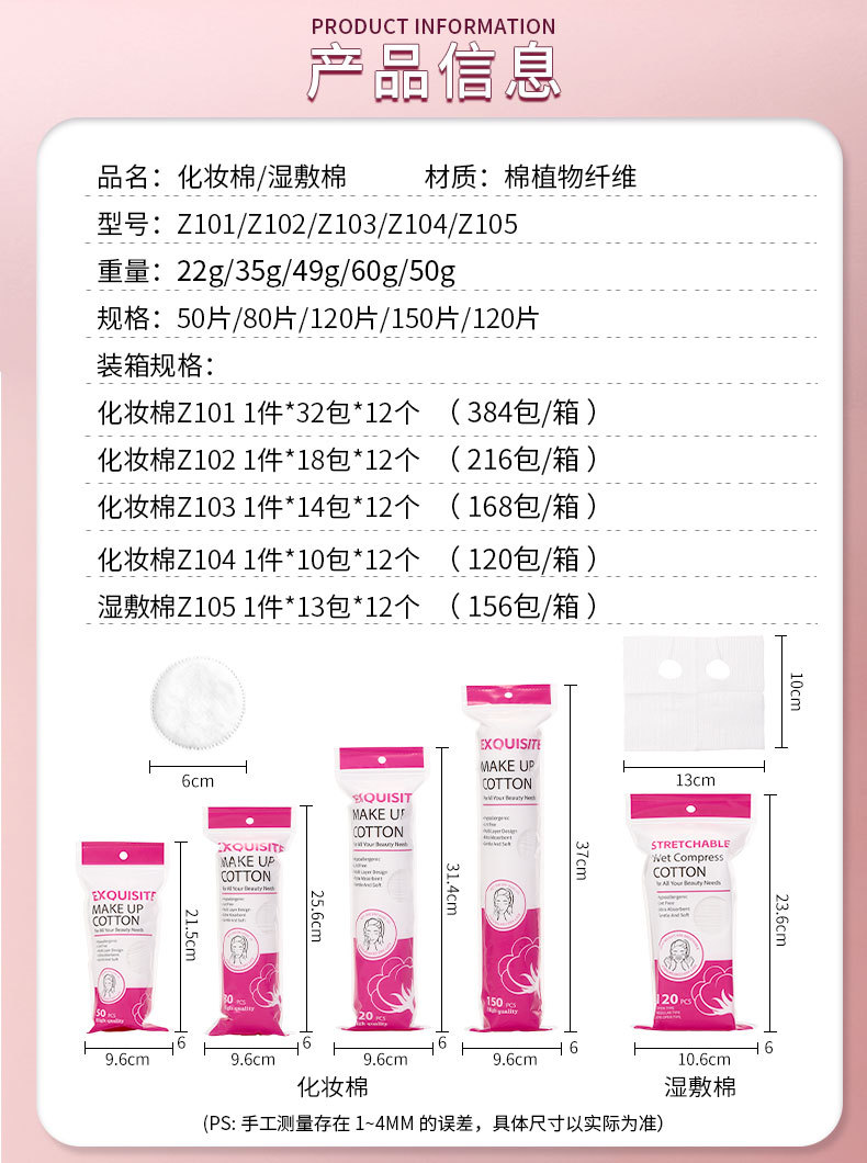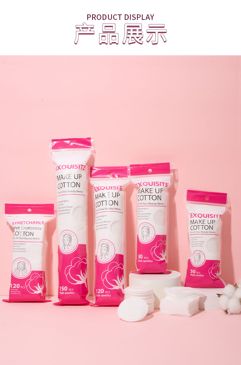 150 piezas de algodón de maquillaje circular en inglés, algodón de maquillaje limpiador húmedo, algodón redondo neutro Z101