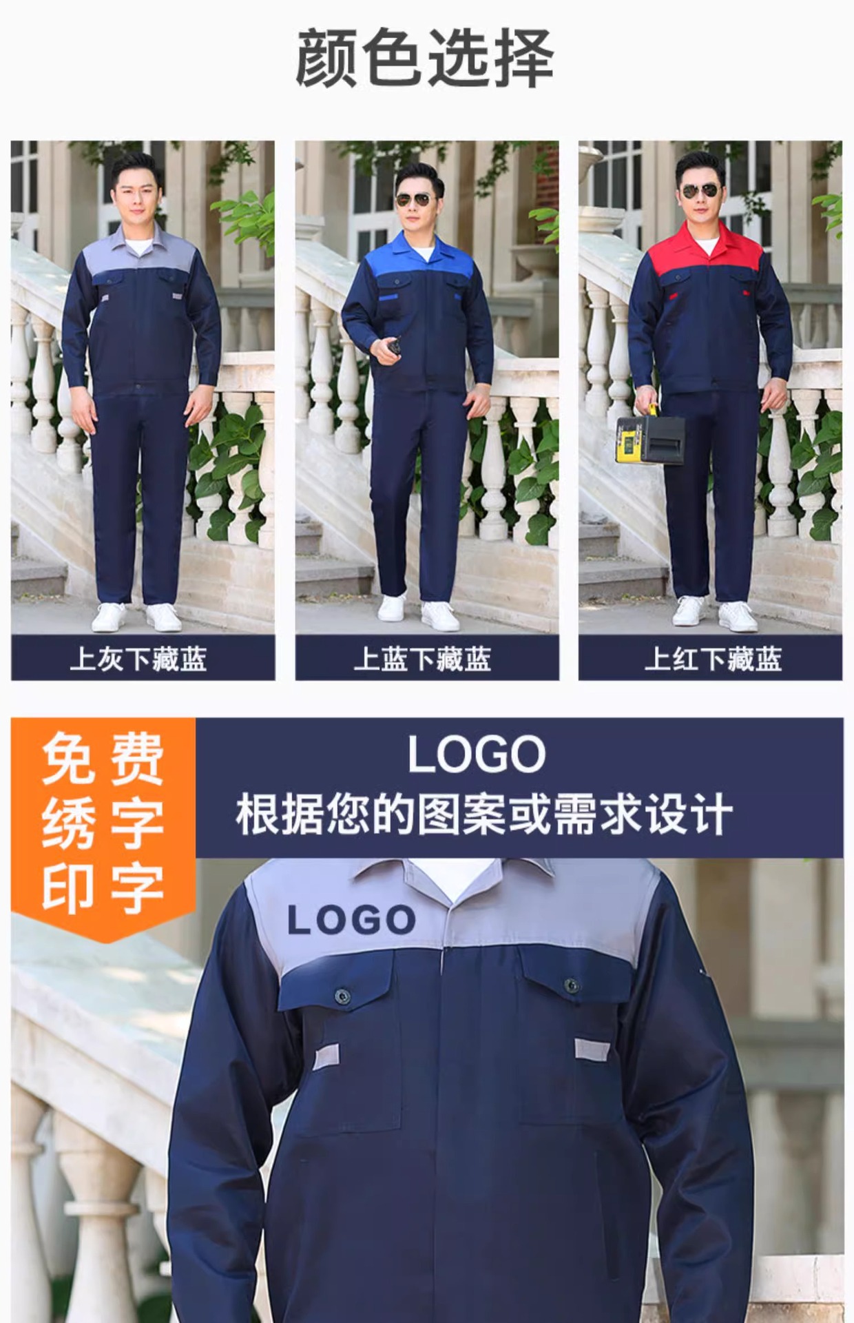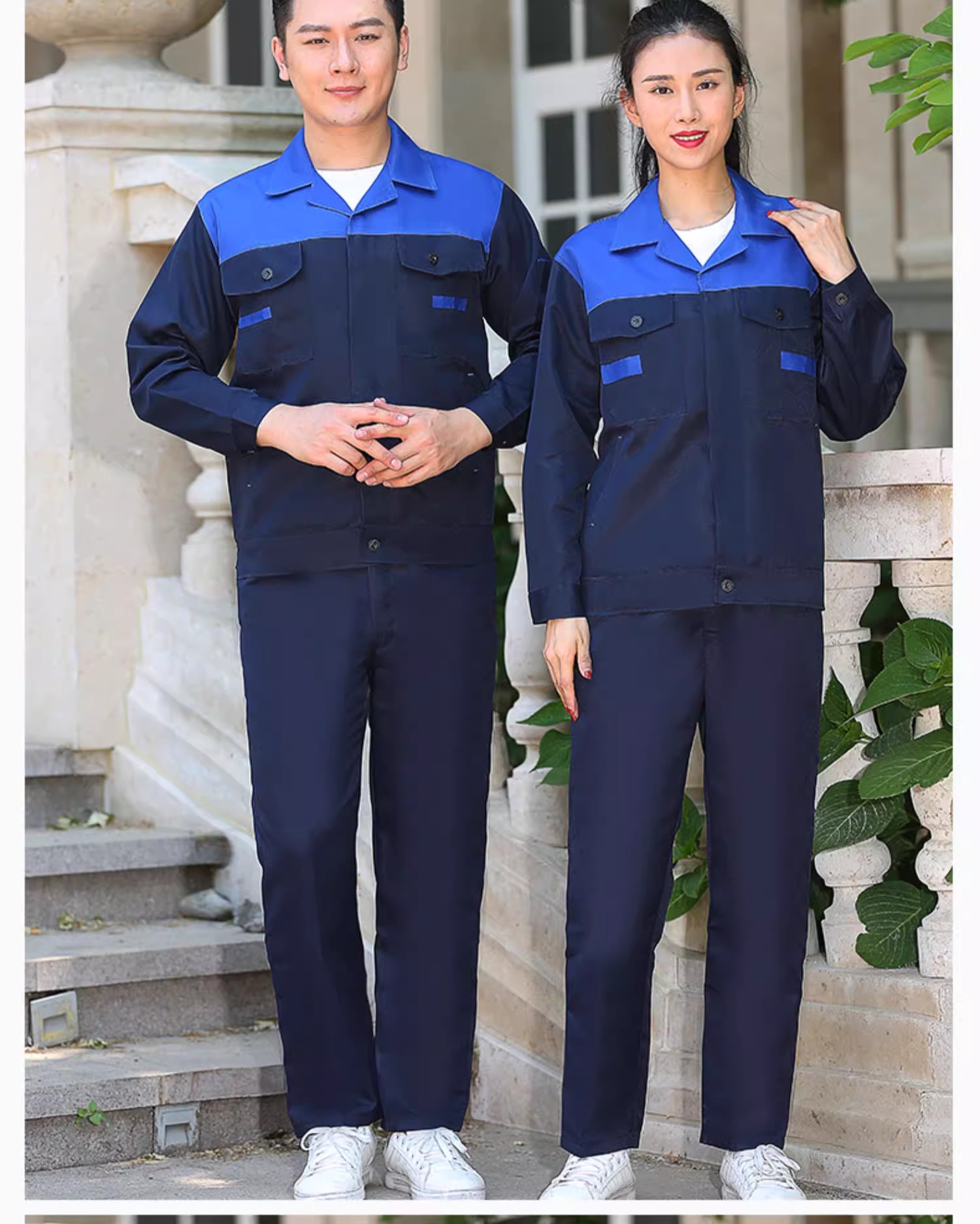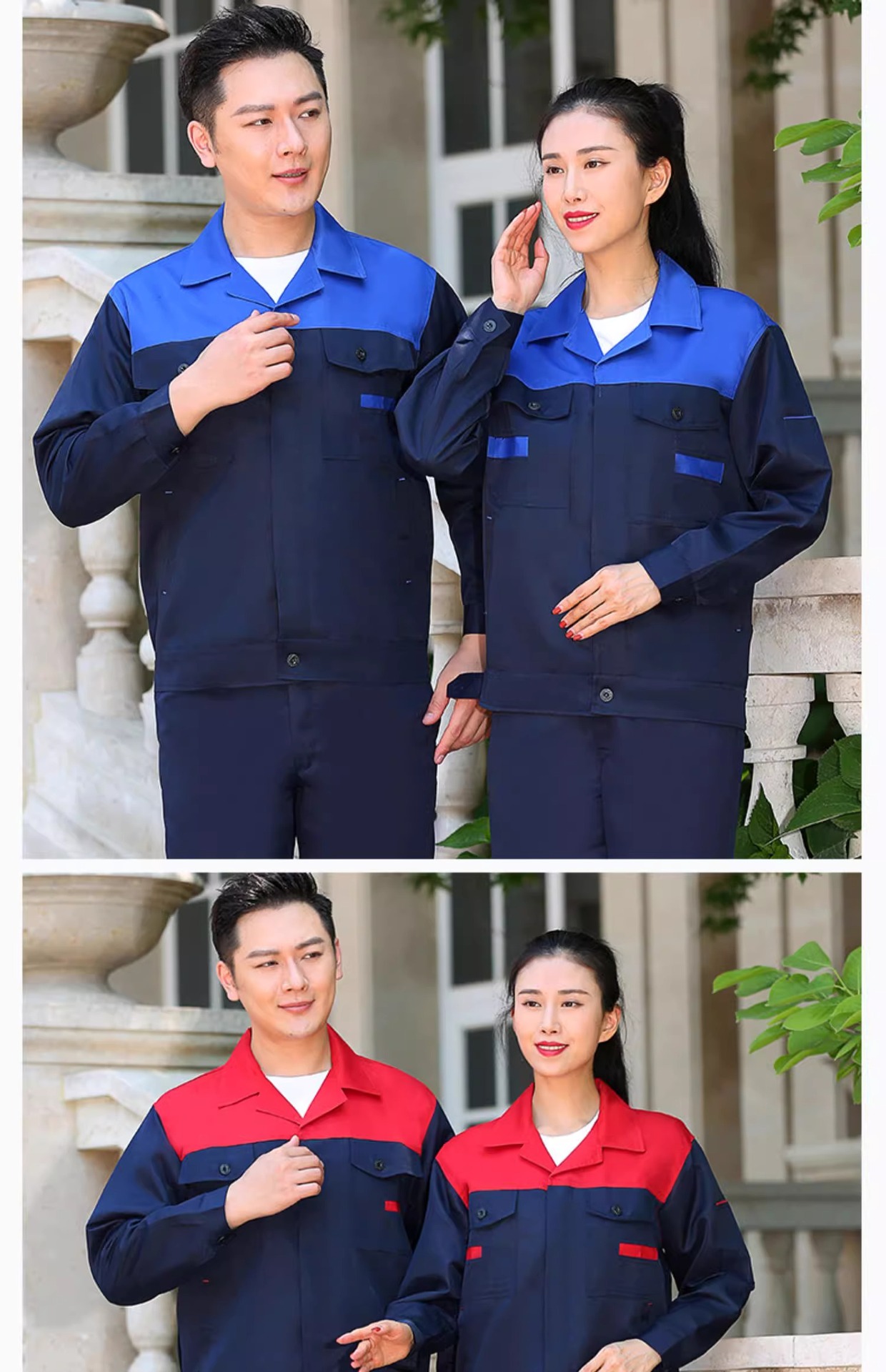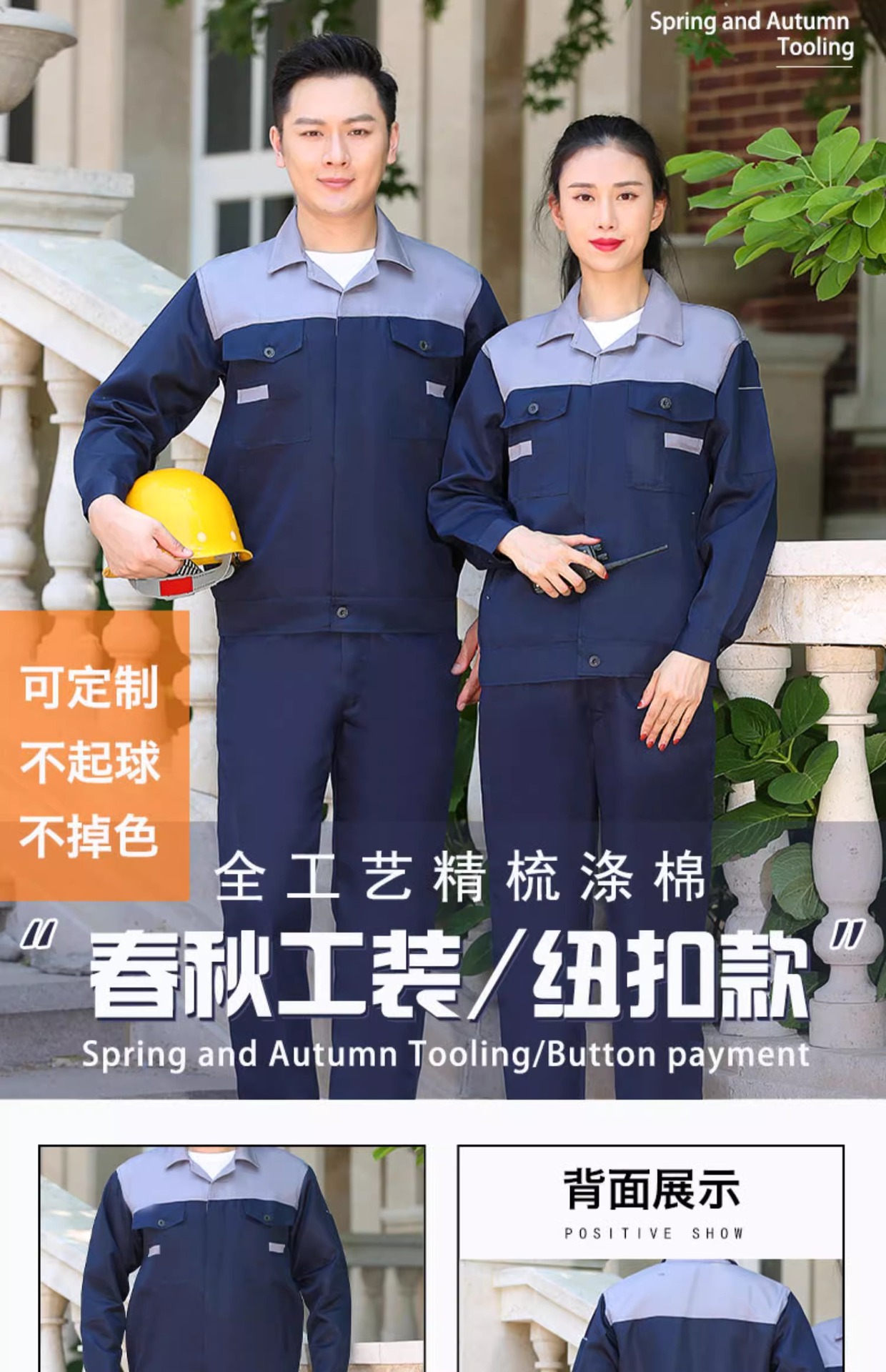 Trajes de trabajo masculinos primavera y otoño botones resistentes al desgaste taller de fábrica de ropa de protección laboral de manga larga ropa de trabajo personalizada / hecha
