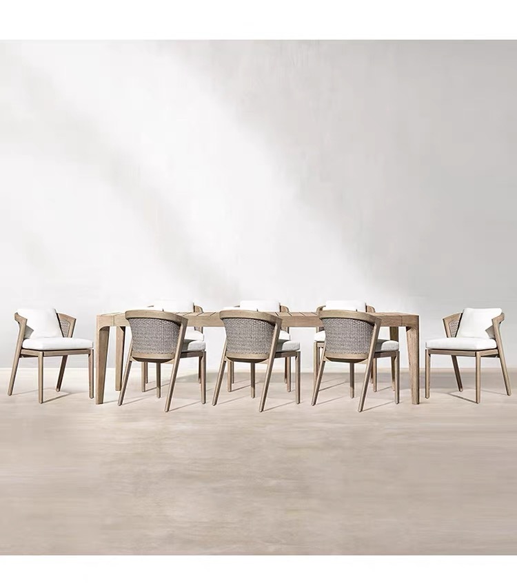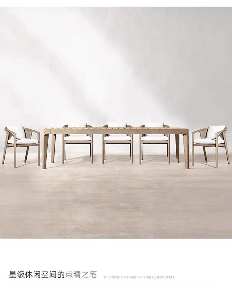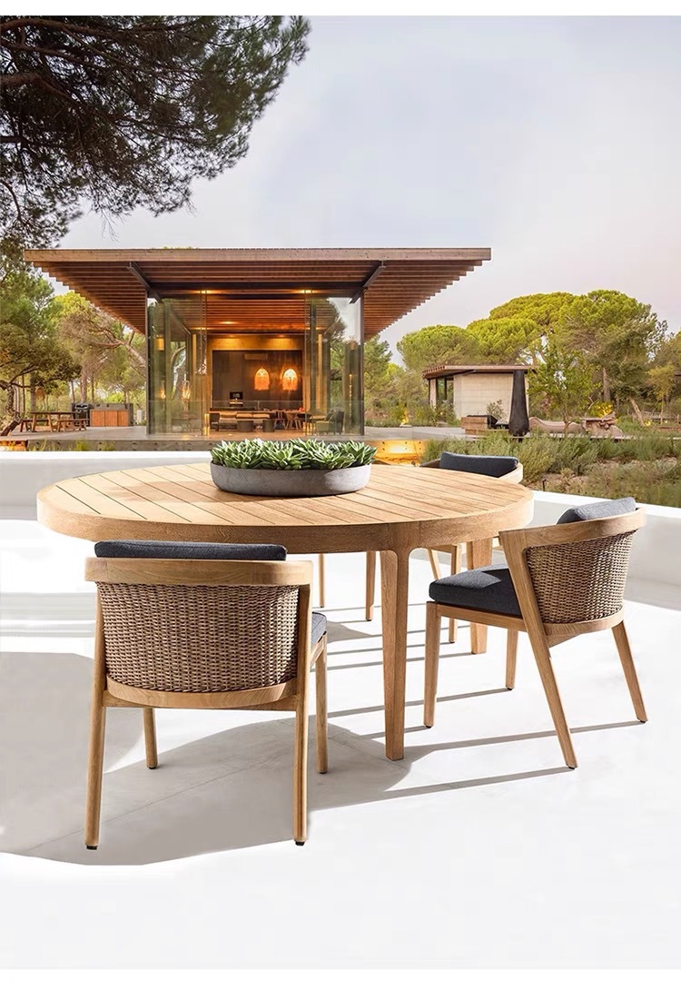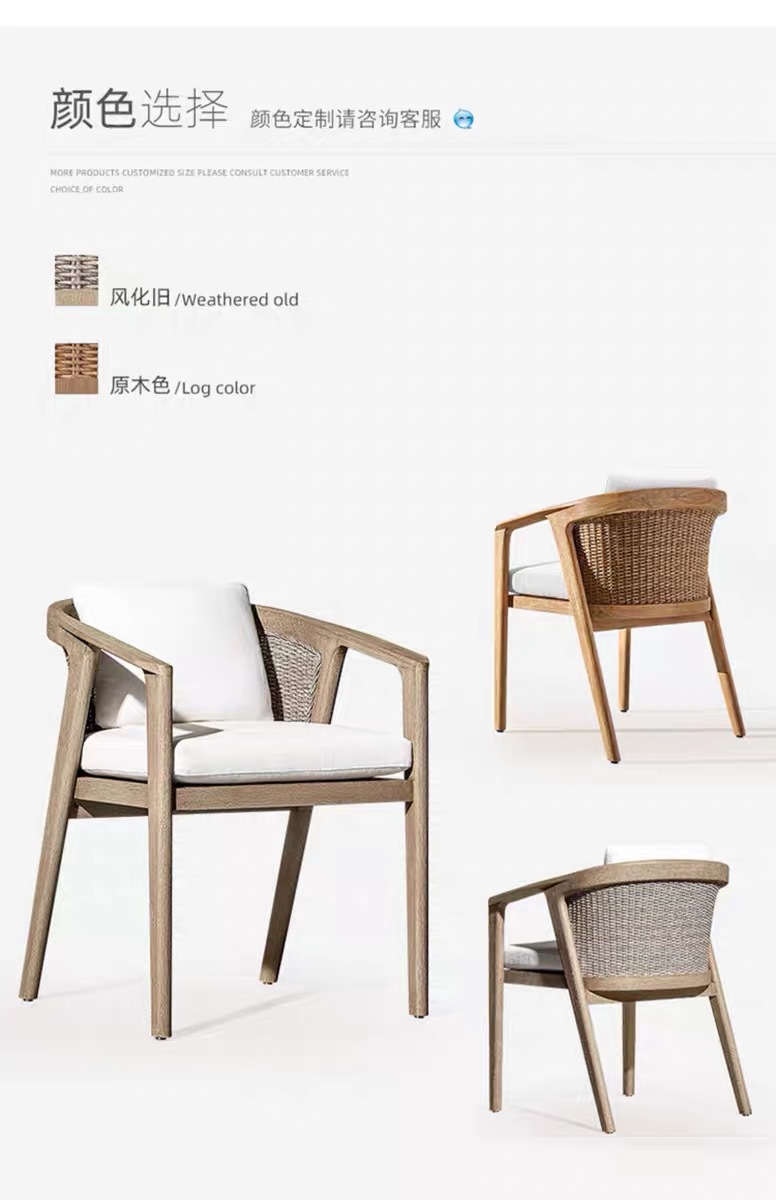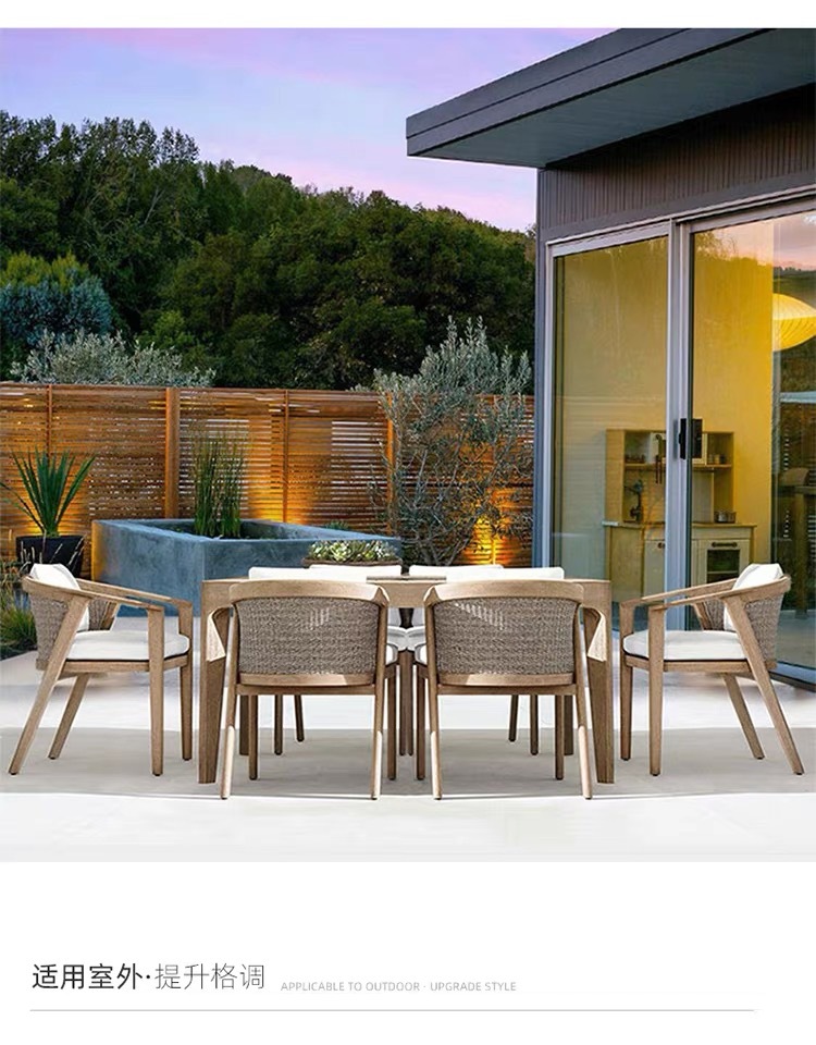 Mesas y sillas de teca de madera maciza nórdica Patio Villa Balcón Al aire libre Jardín al aire libre Hotel Silla de ratán de ocio de teca anticorrosiva
