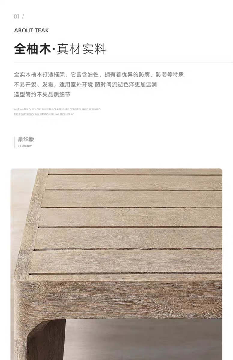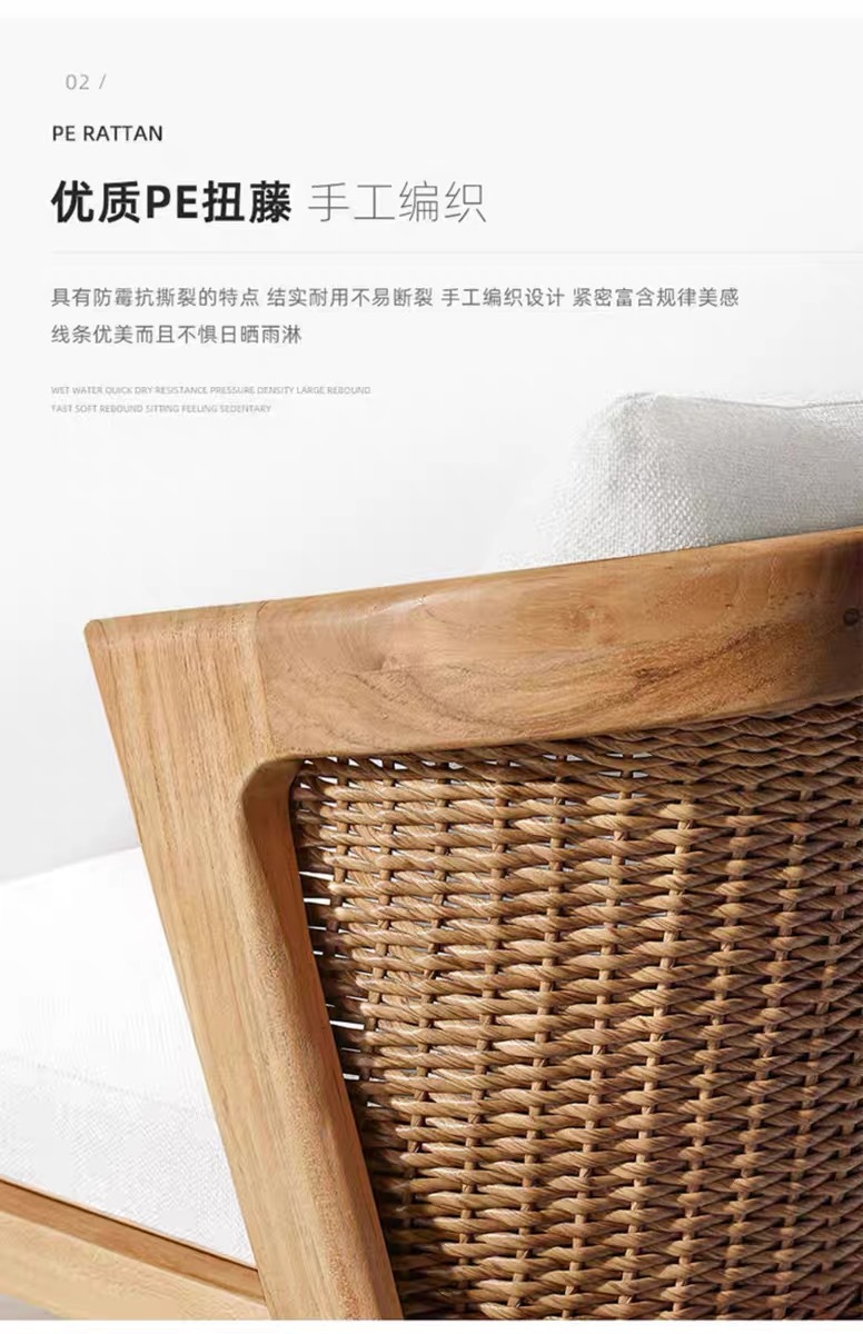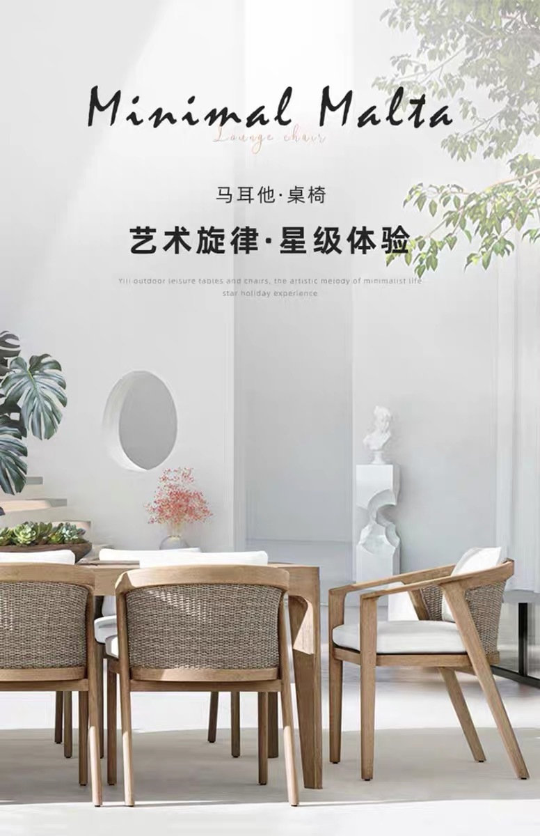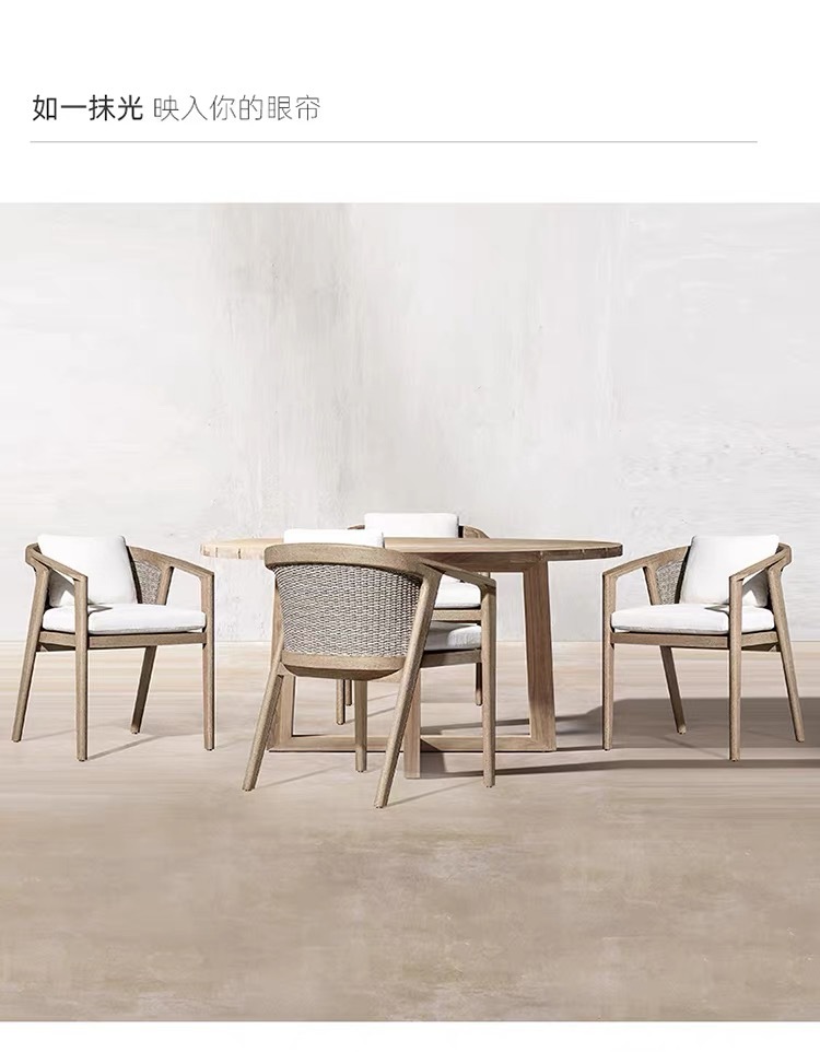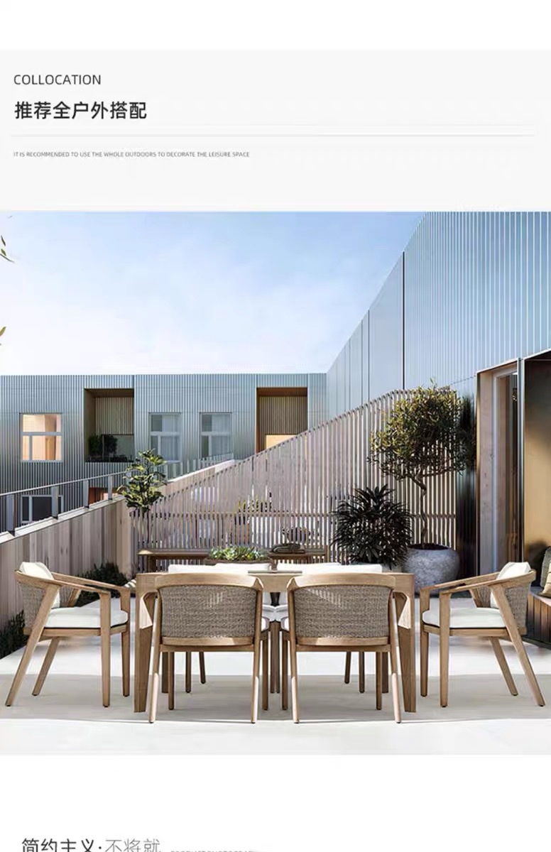 Mesas y sillas de teca de madera maciza nórdica Patio Villa Balcón Al aire libre Jardín al aire libre Hotel Silla de ratán de ocio de teca anticorrosiva