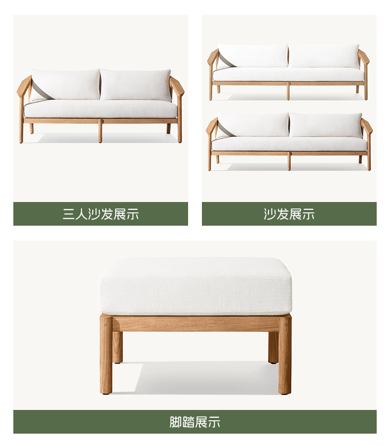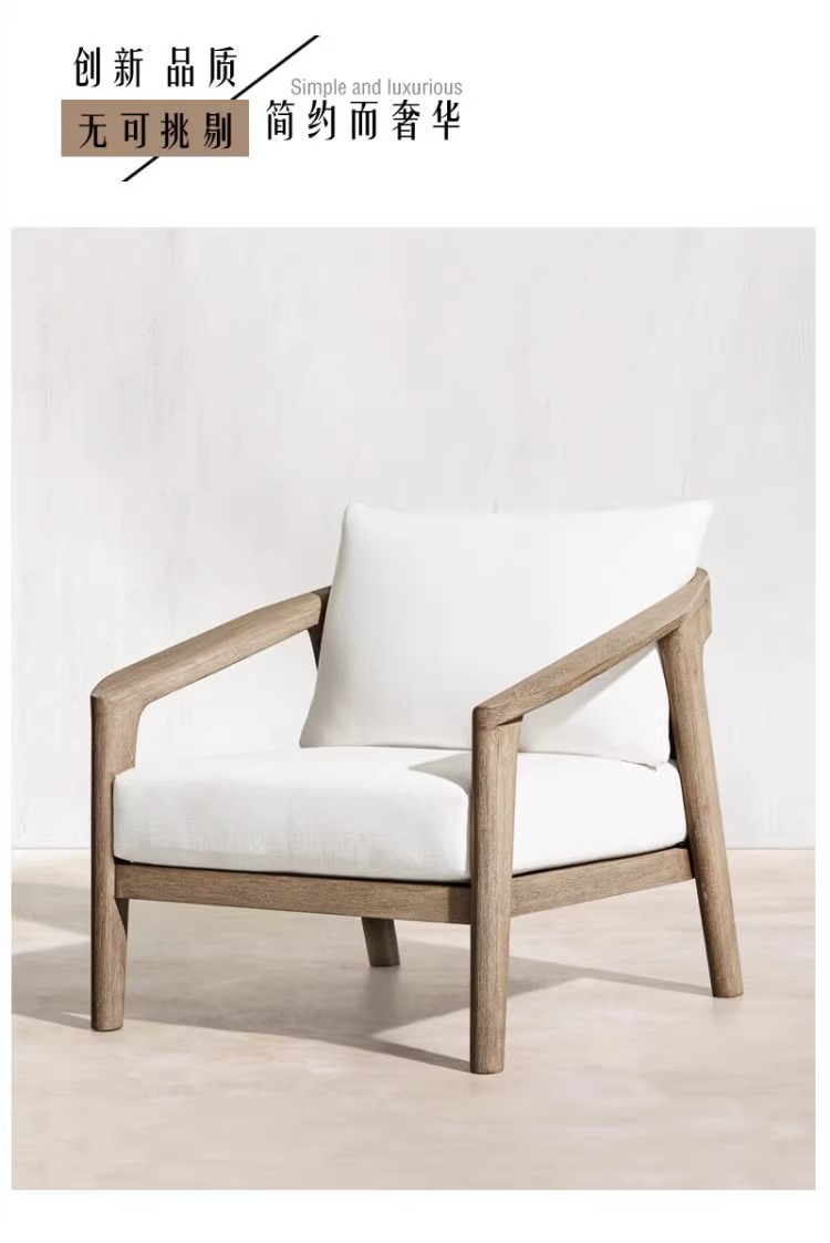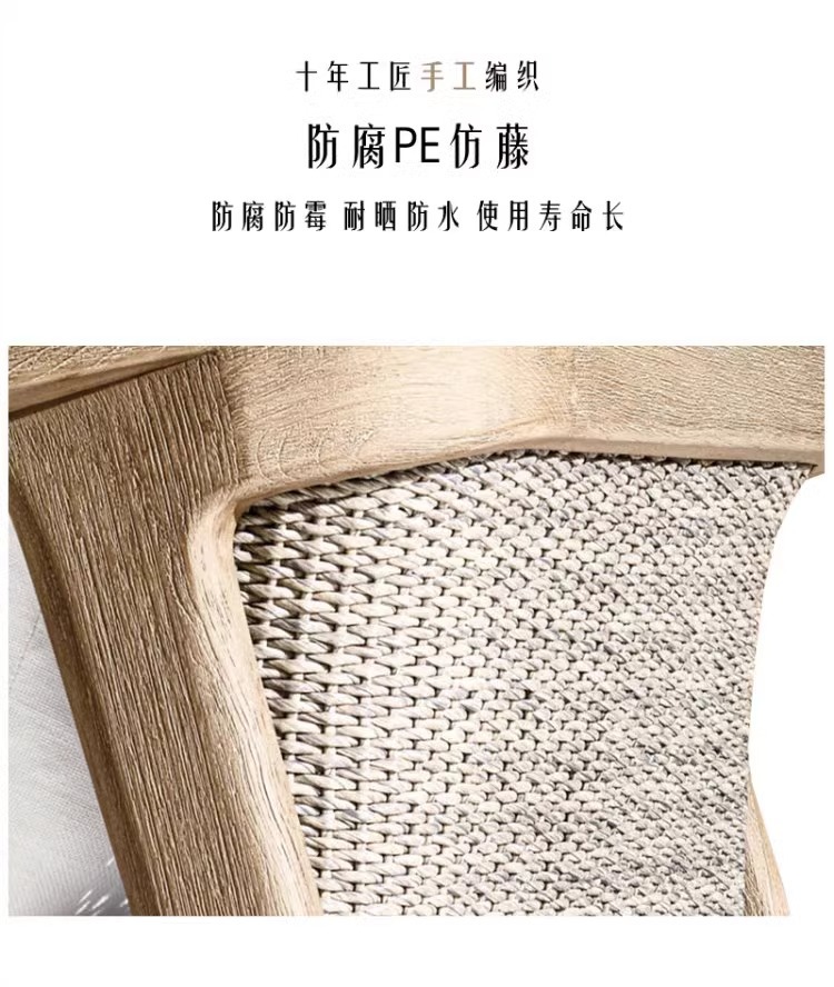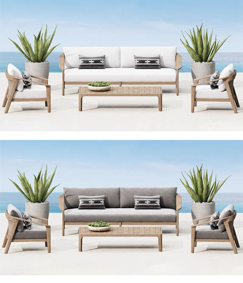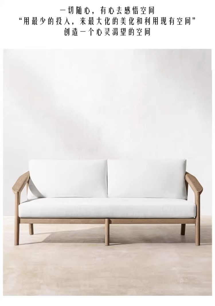 Sofá nórdico de teca al aire libre, sofá de patio al aire libre, impermeable y protector solar, sofá de ratán al aire libre, sofá de madera maciza