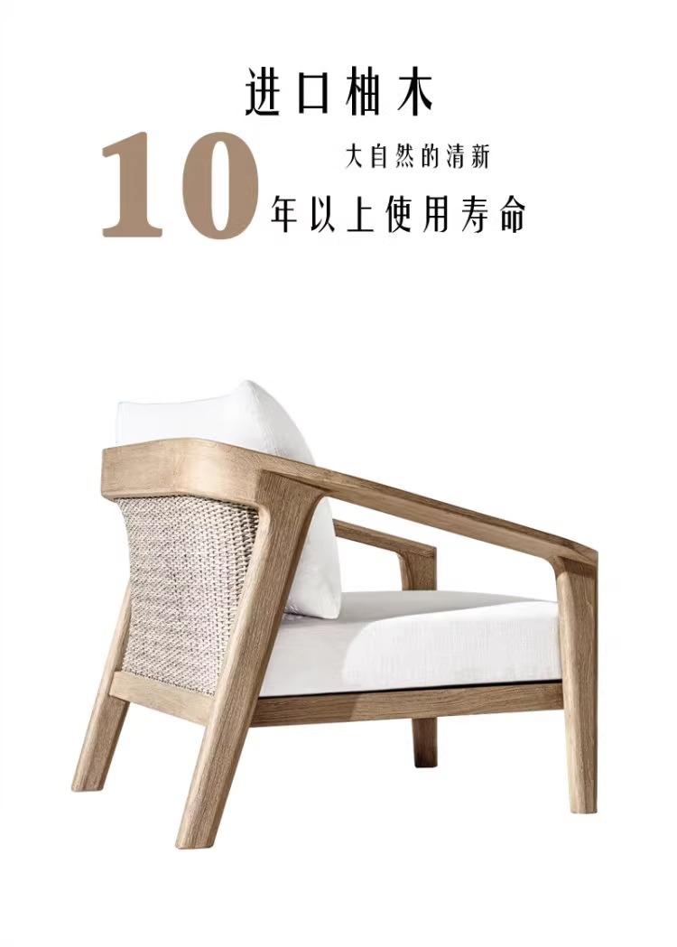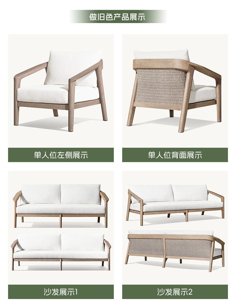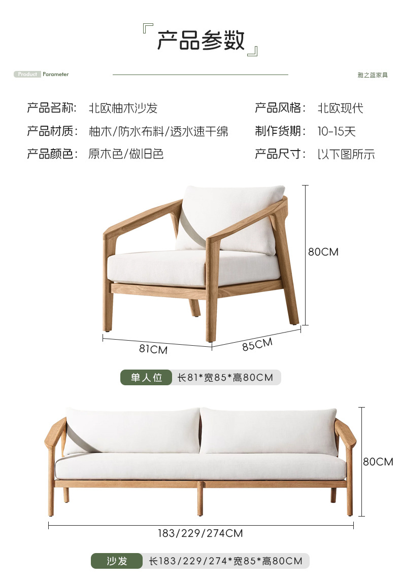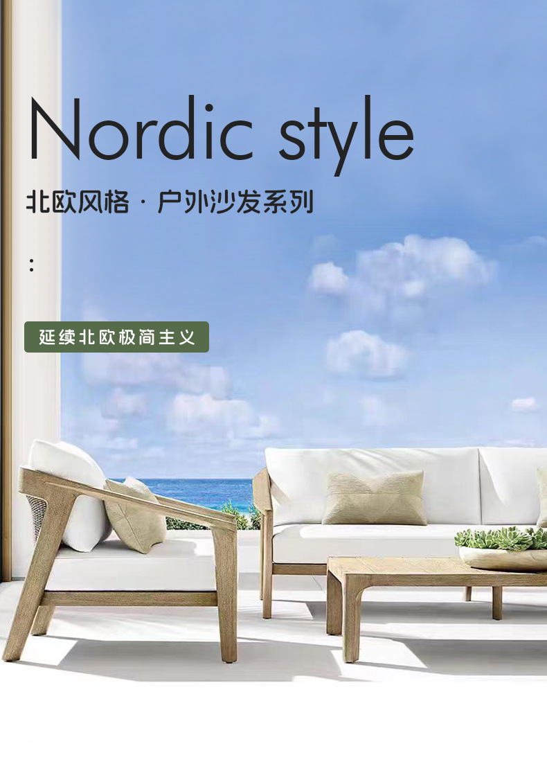 Sofá nórdico de teca al aire libre, sofá de patio al aire libre, impermeable y protector solar, sofá de ratán al aire libre, sofá de madera maciza