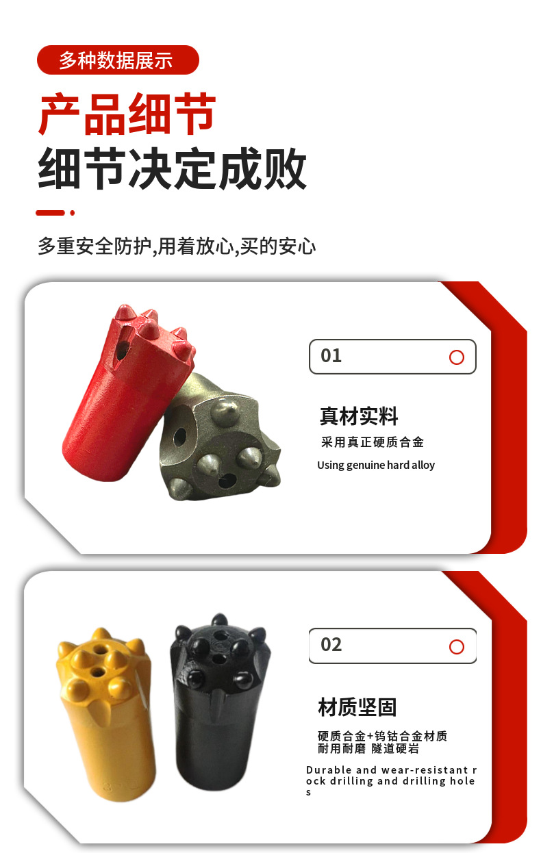 Broca de diente de bola 28 Broca de perforación de roca para minería prensada en frío de aleación 32 Broca de varilla de anclaje Alto horno 38 Broca de diente de bola
