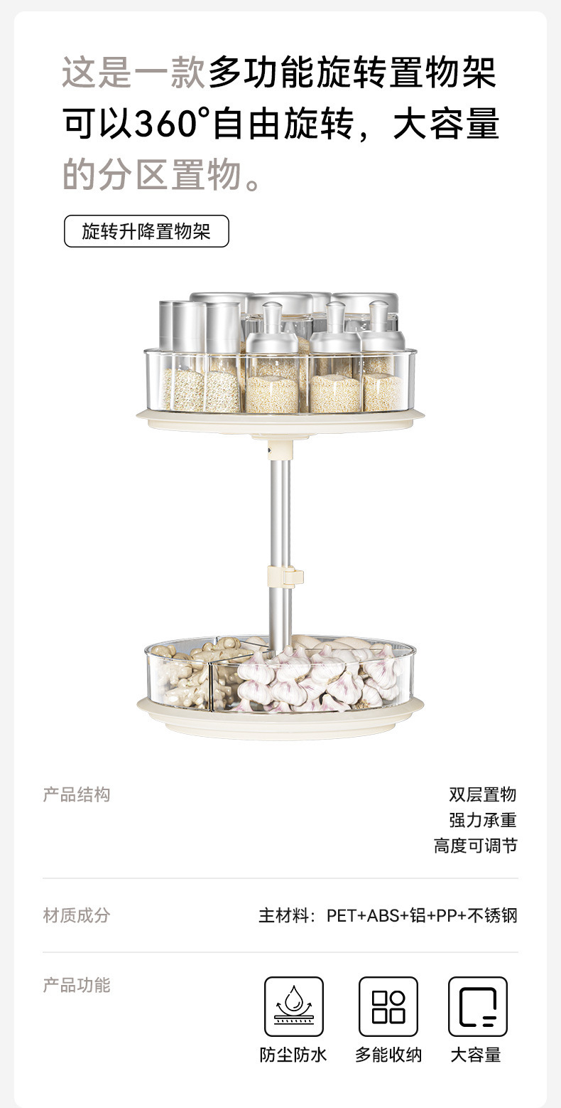 Estante giratorio para especias, organizador de almacenamiento de condimentos para encimera de cocina, estante de especias de varias capas, organizador de almacenamiento para botellas y frascos.