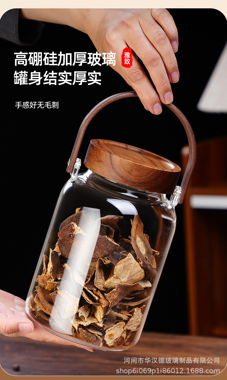 tanque de almacenamiento de cáscara de naranja con viga de elevación, tanque de sellado de vidrio de alto silicio de silicio, tanque de café, botella de vidrio de licor, jarra de té