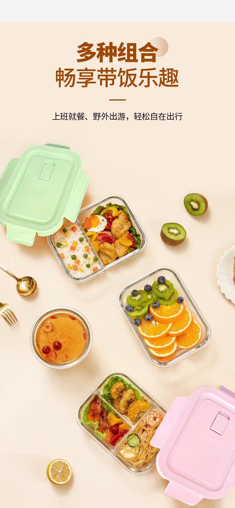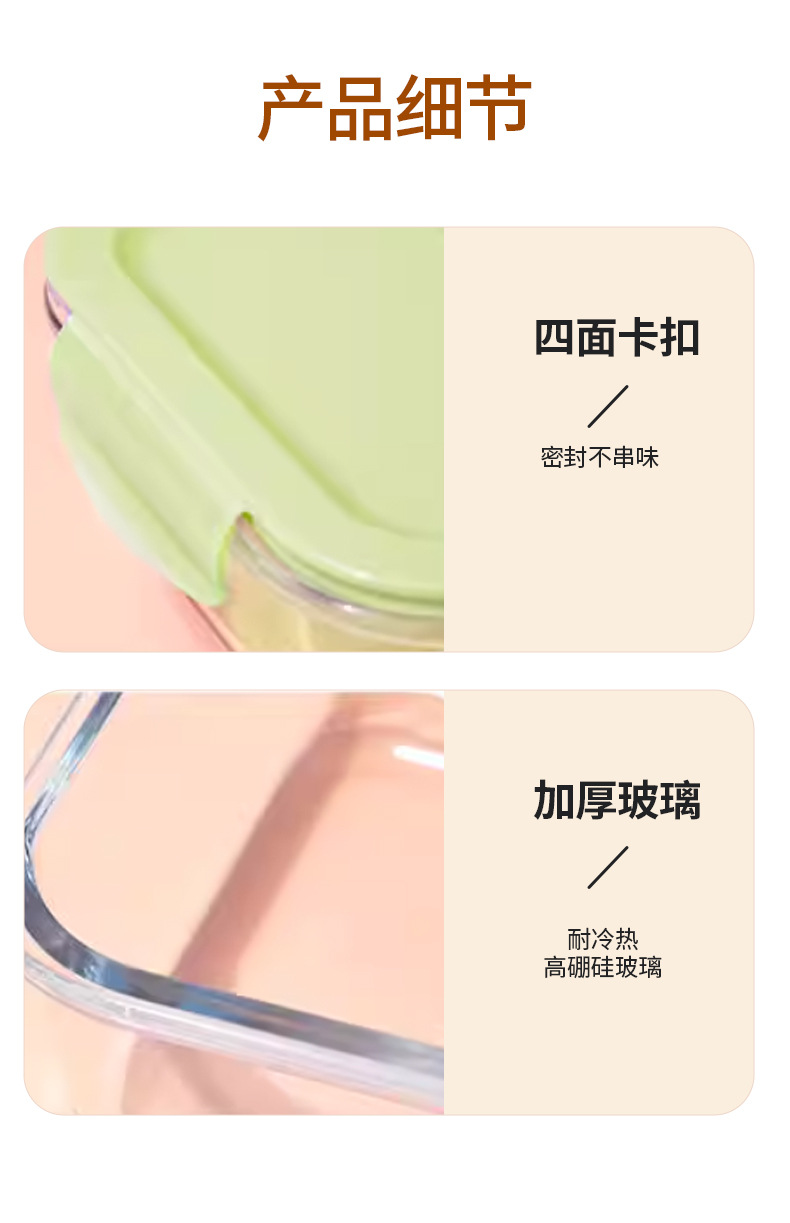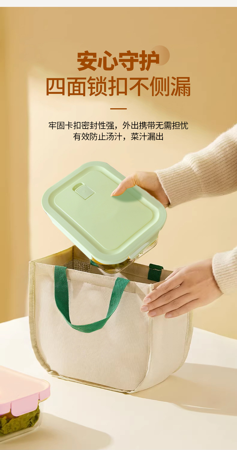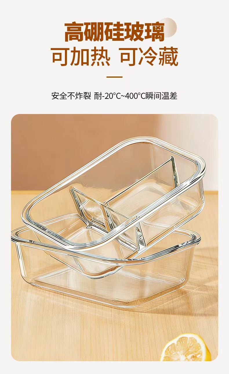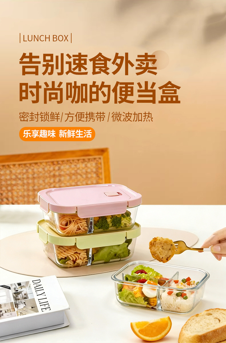 Caja de almuerzo de vidrio que se puede utilizar para calentar el recipiente de microondas, caja de sellado de refrigerador con cubierta sellada para estudiantes de trabajo, caja de preservación de alimentos