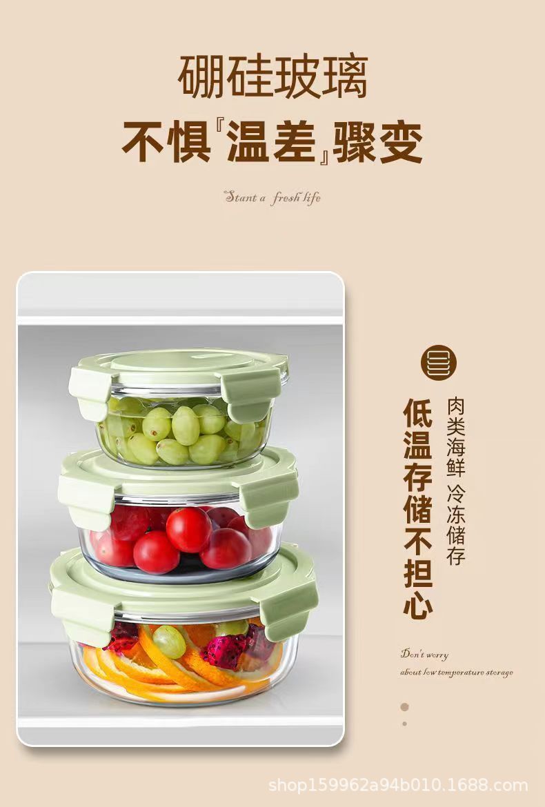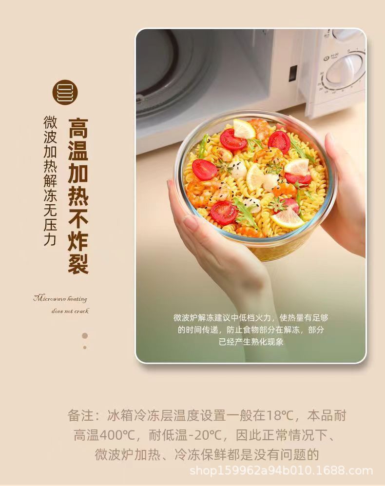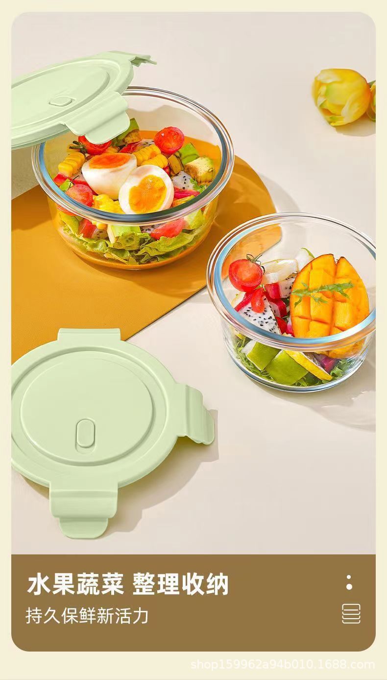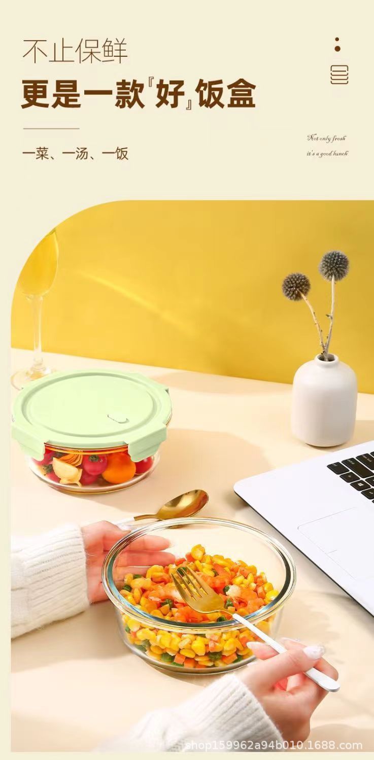 Caja de almuerzo de vidrio redondo de alto borosilicato que se puede calentar por microondas, tazón de vidrio, caja de almuerzo de gran tamaño