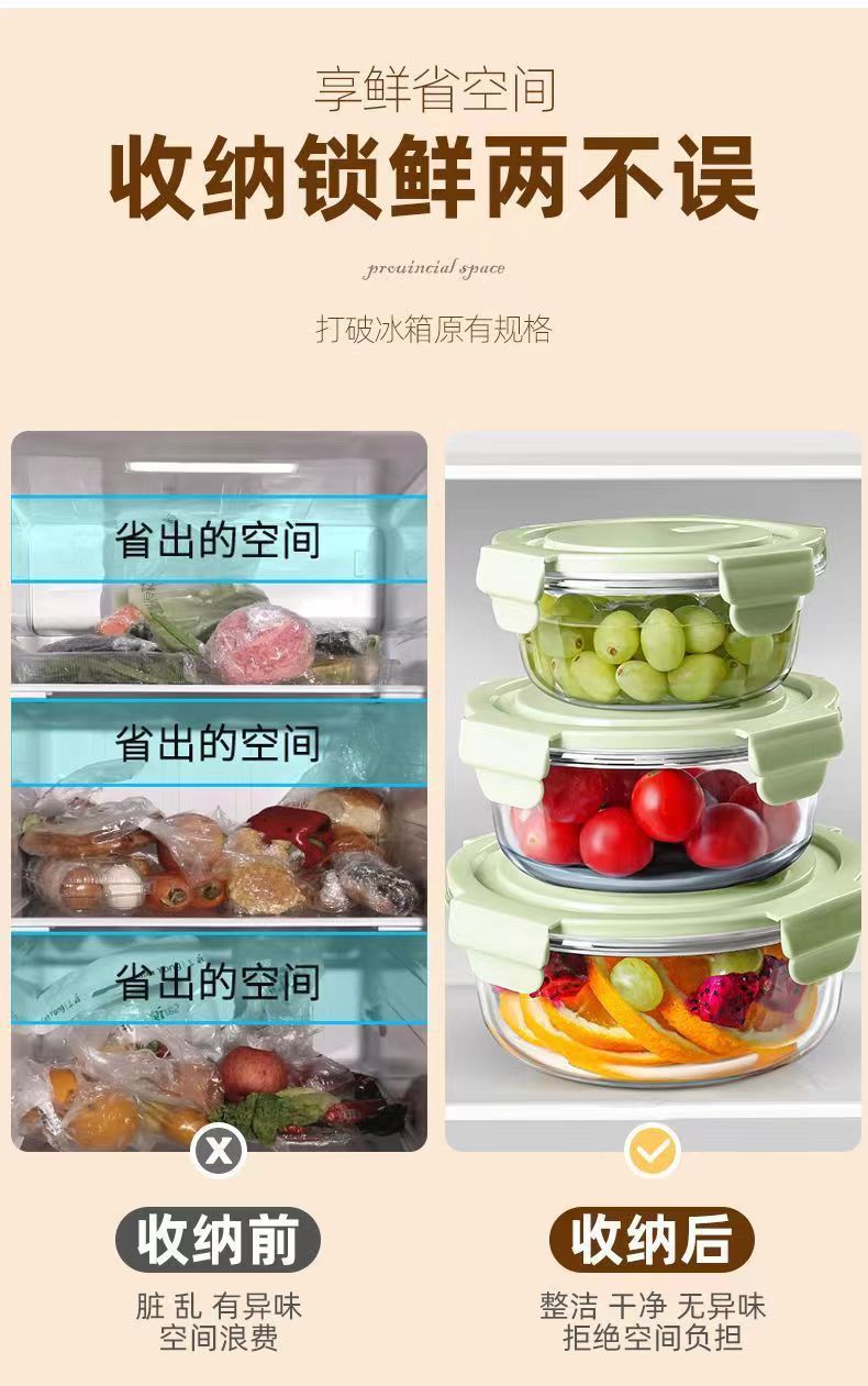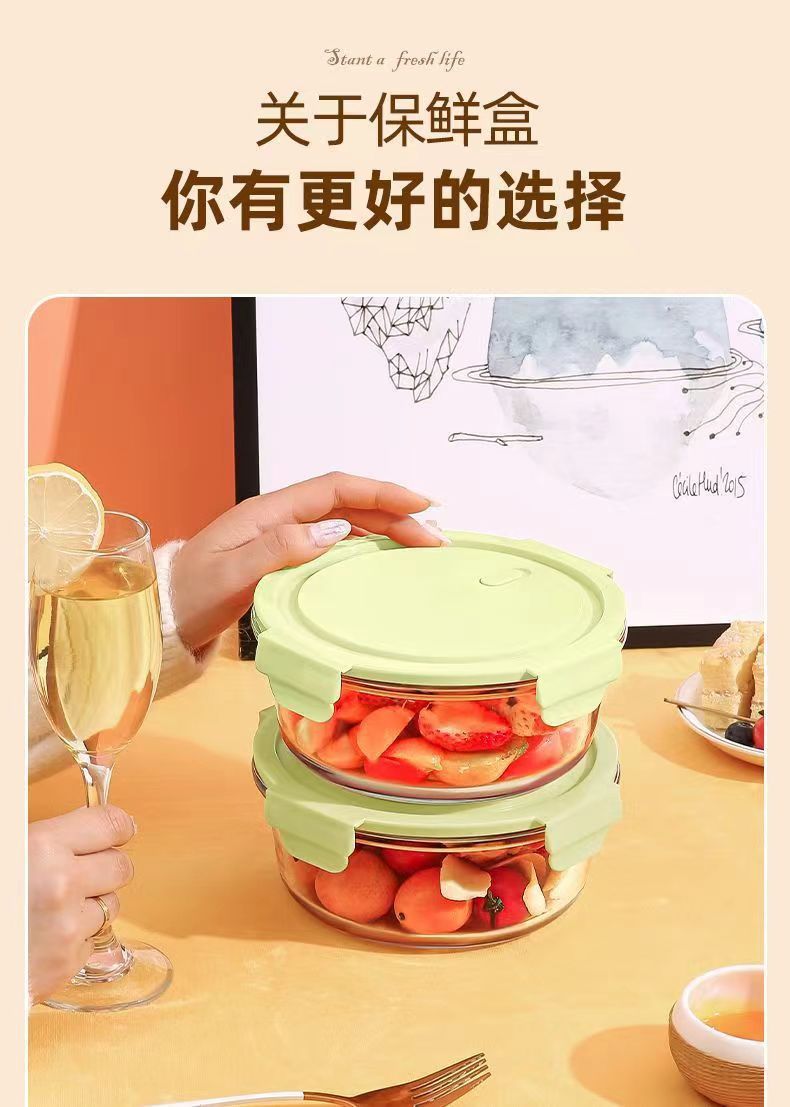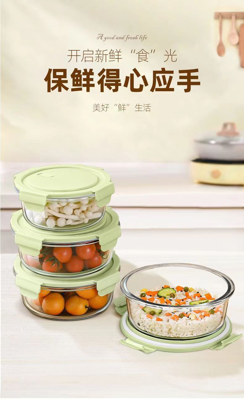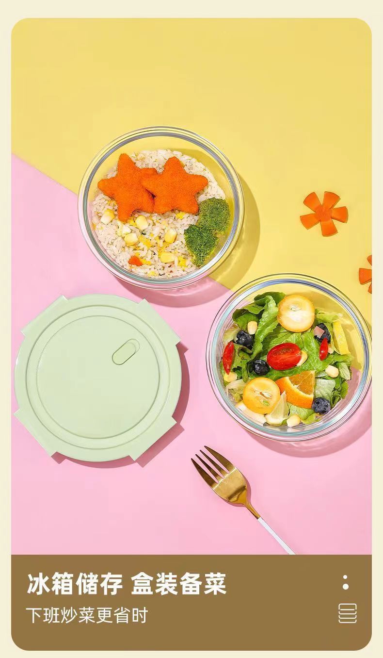 Caja de almuerzo de vidrio redondo de alto borosilicato que se puede calentar por microondas, tazón de vidrio, caja de almuerzo de gran tamaño