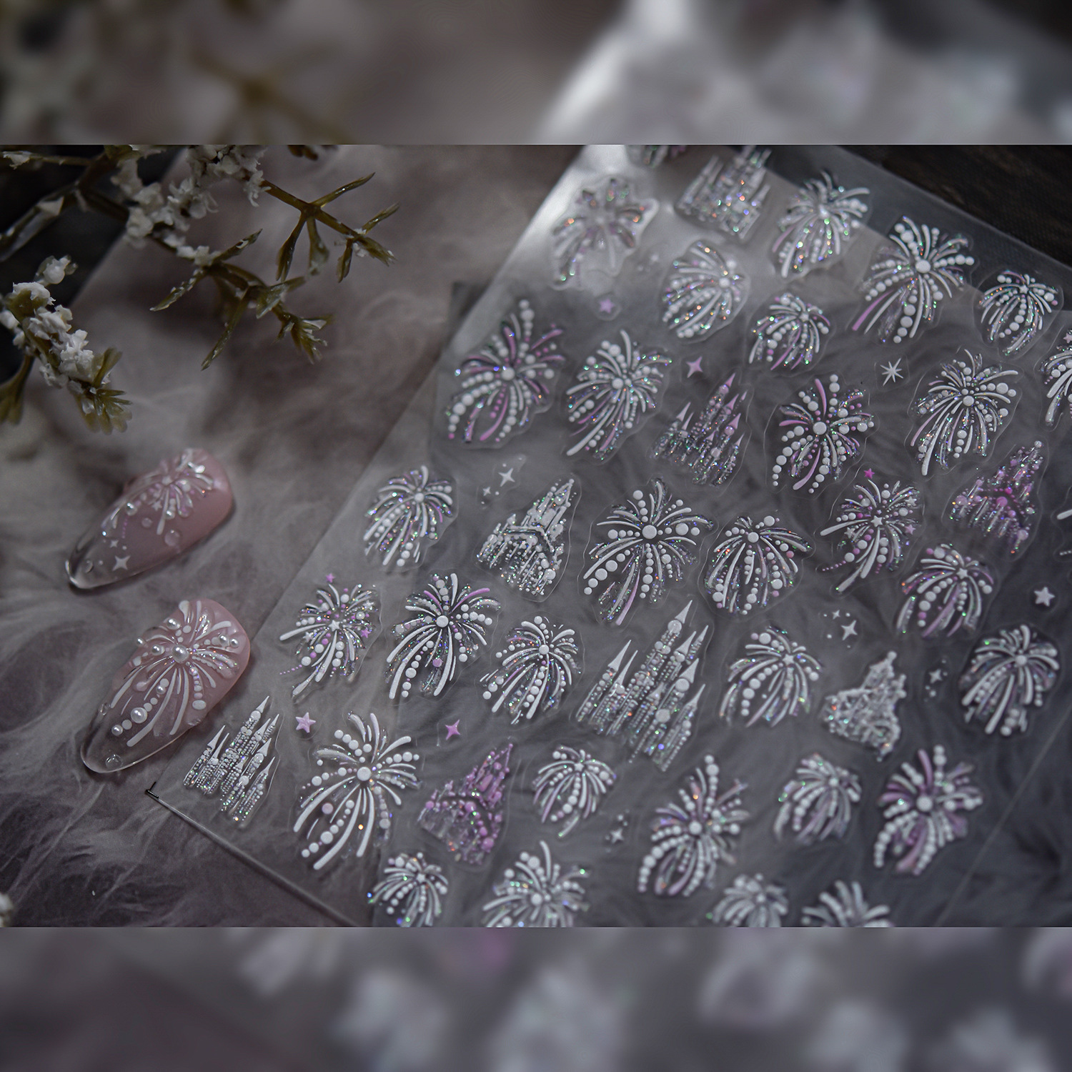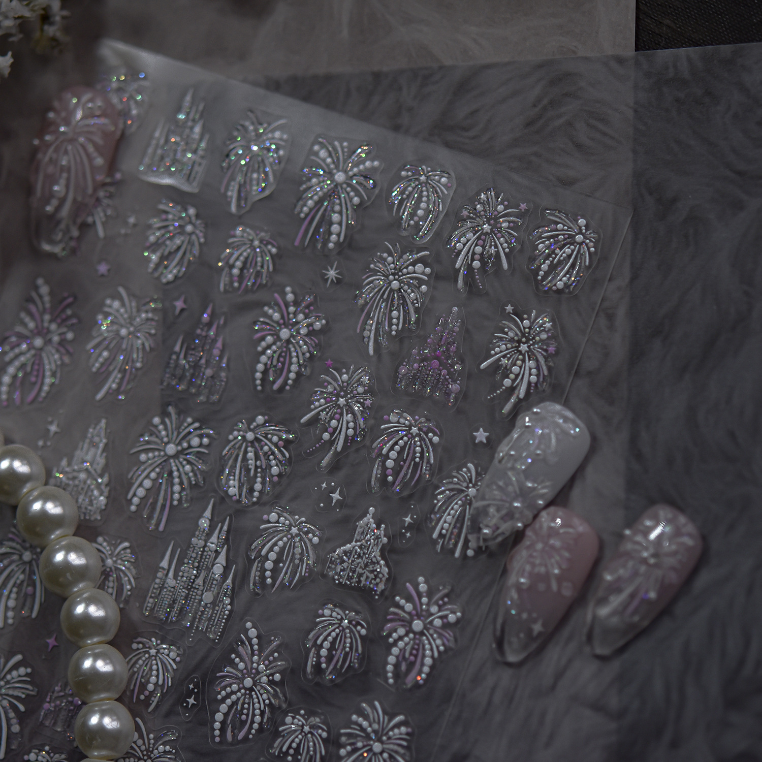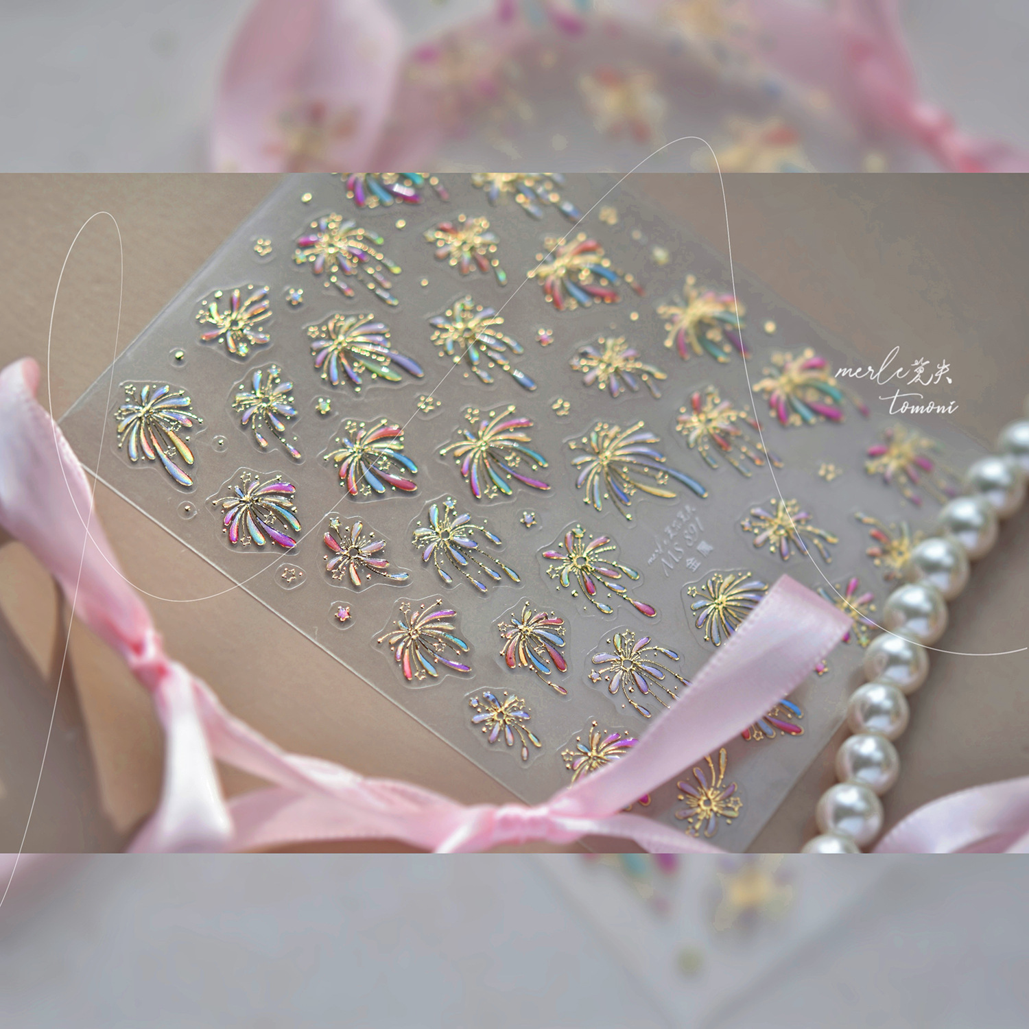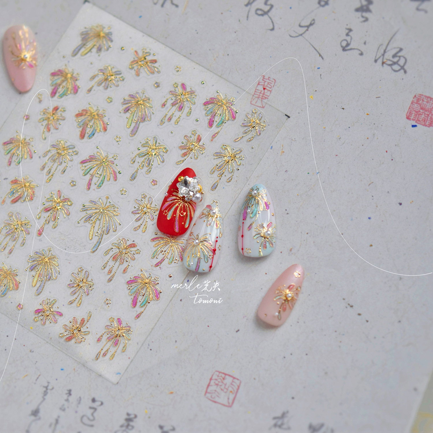 Tomoni & Mo Shuai Jin Uña nuevo estilo chino pegatinas de uñas brillante fantasía perlas fuegos artificiales accesorios materiales