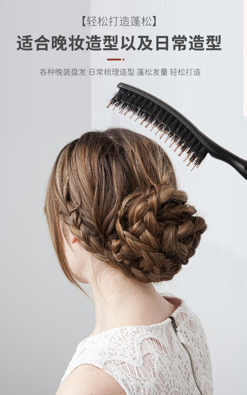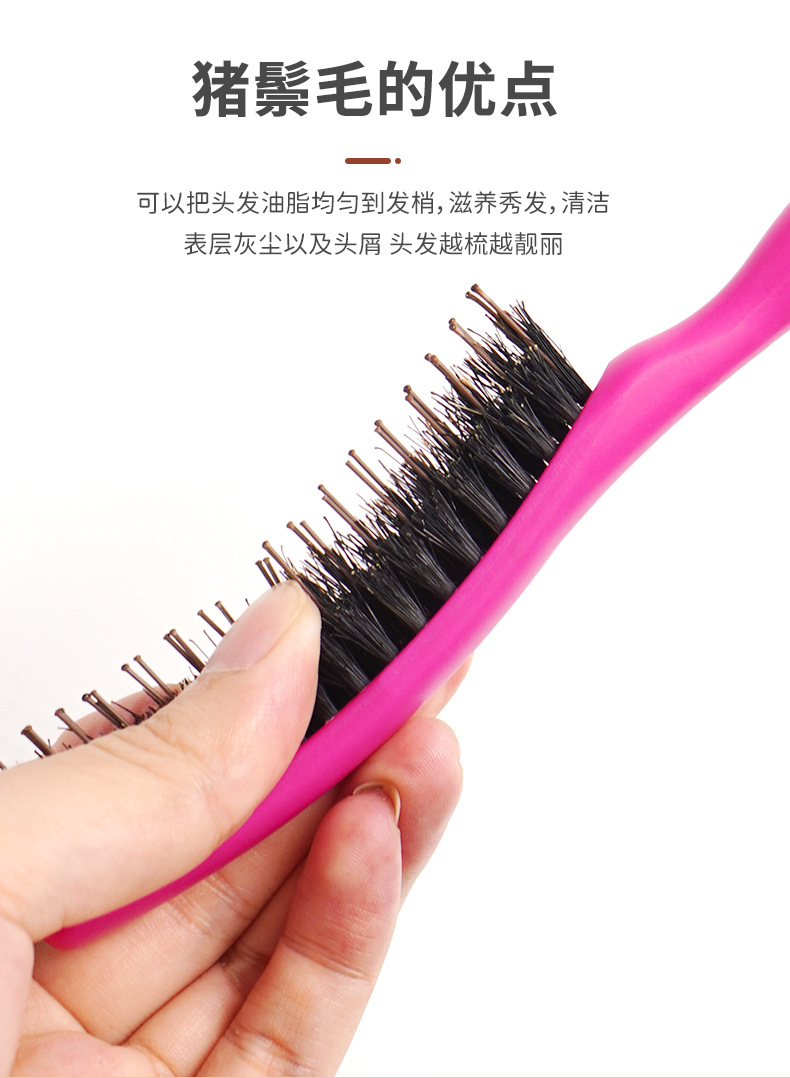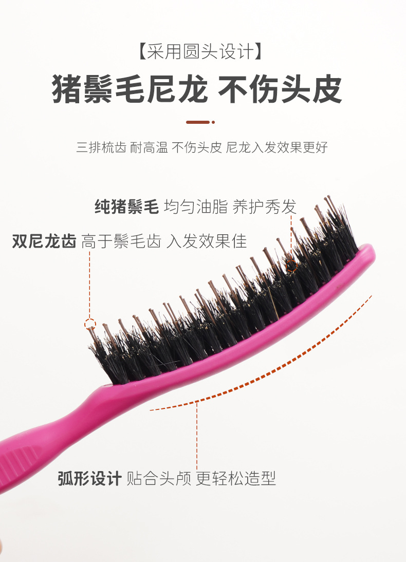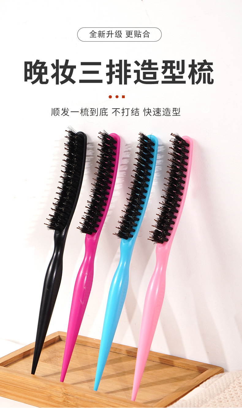 Puro melina de cerdo de nylon tres filas de cabello de noche sala de estudio de maquillaje bandeja de cabello de cola de punta cabello de cabello de estilo suelto grueso rizado peine