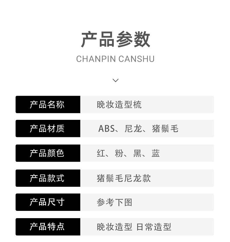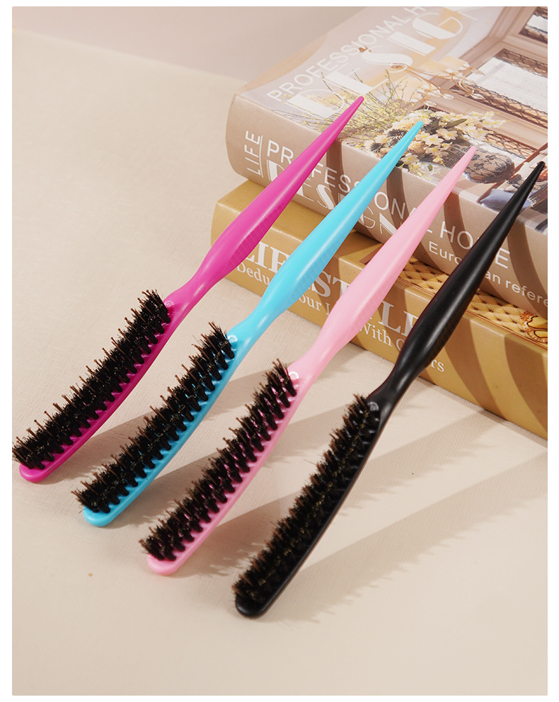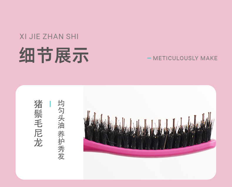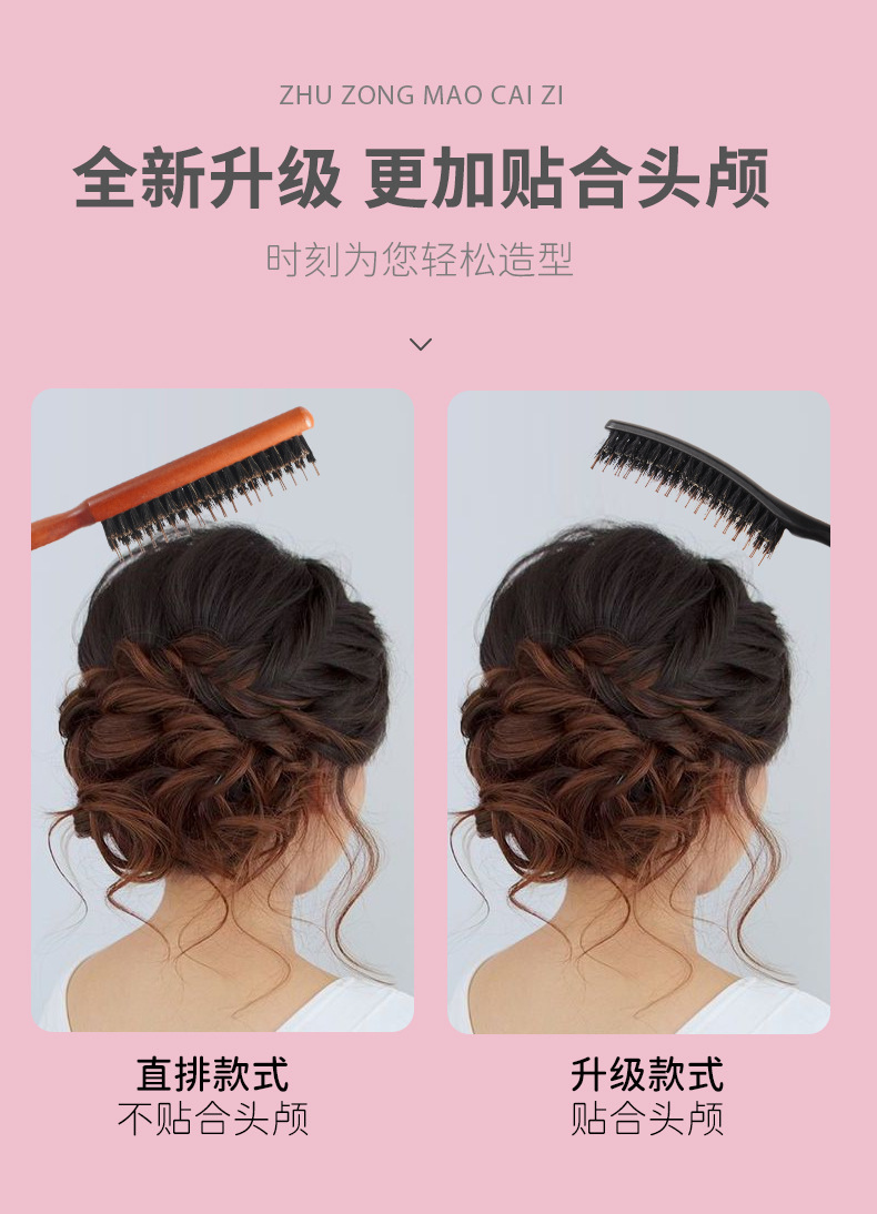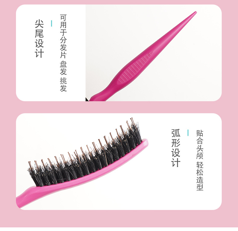 Puro melina de cerdo de nylon tres filas de cabello de noche sala de estudio de maquillaje bandeja de cabello de cola de punta cabello de cabello de estilo suelto grueso rizado peine
