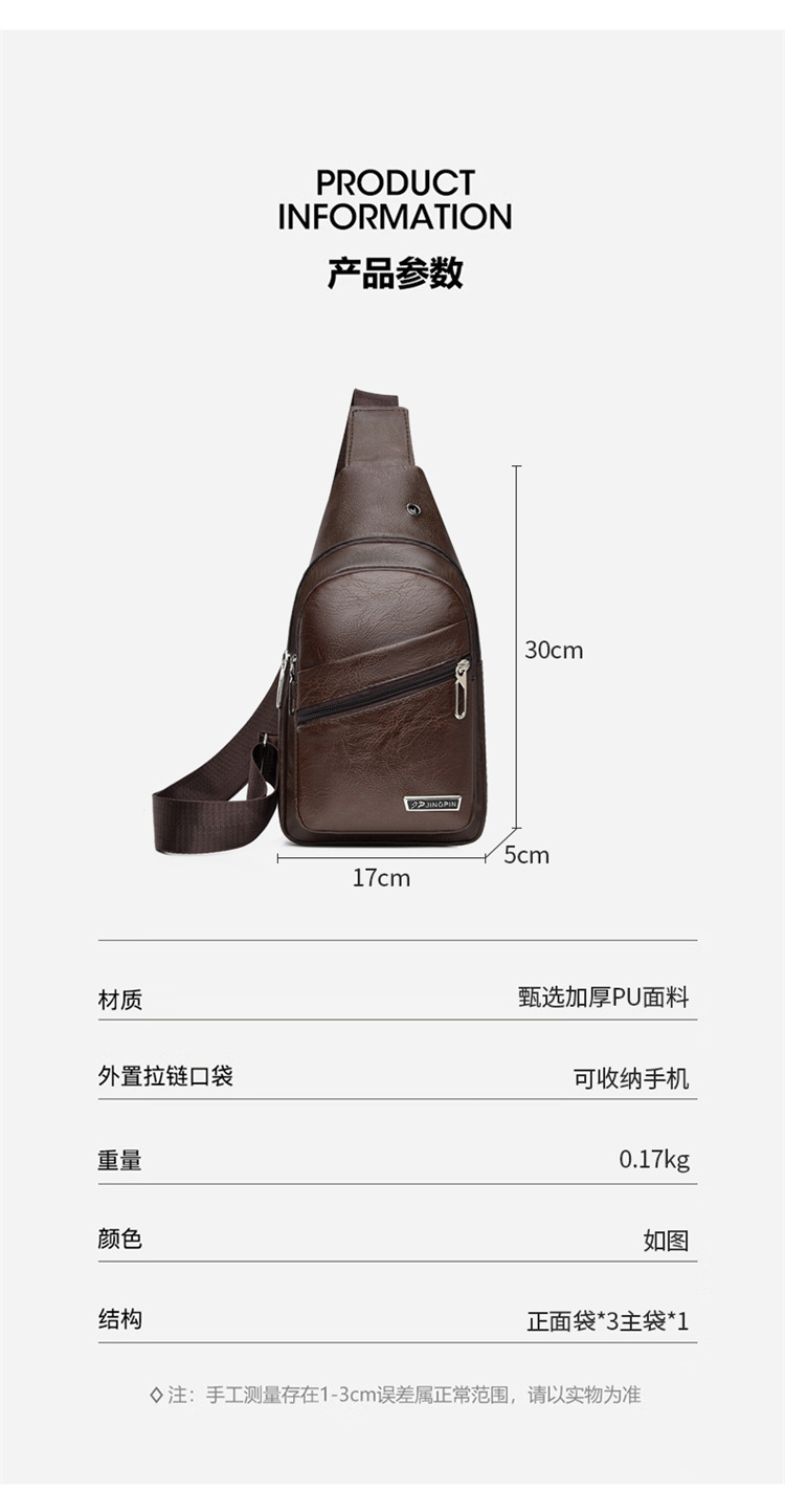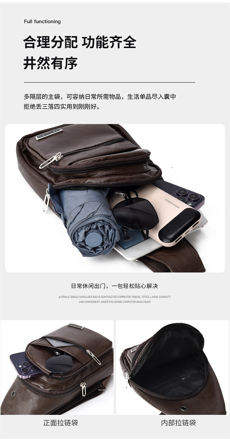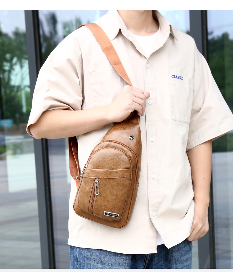 2024 bolso de pecho de cuero suave PU simple bolso de hombro a prueba de agua bolso de mochila de negocios casual al por mayor