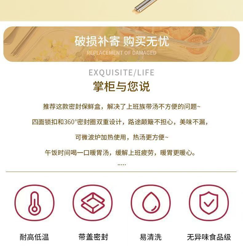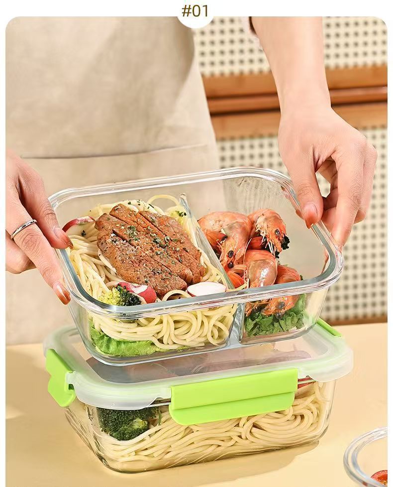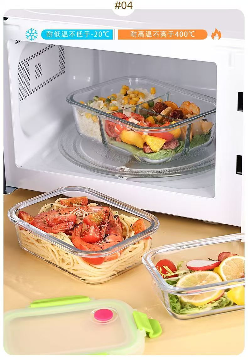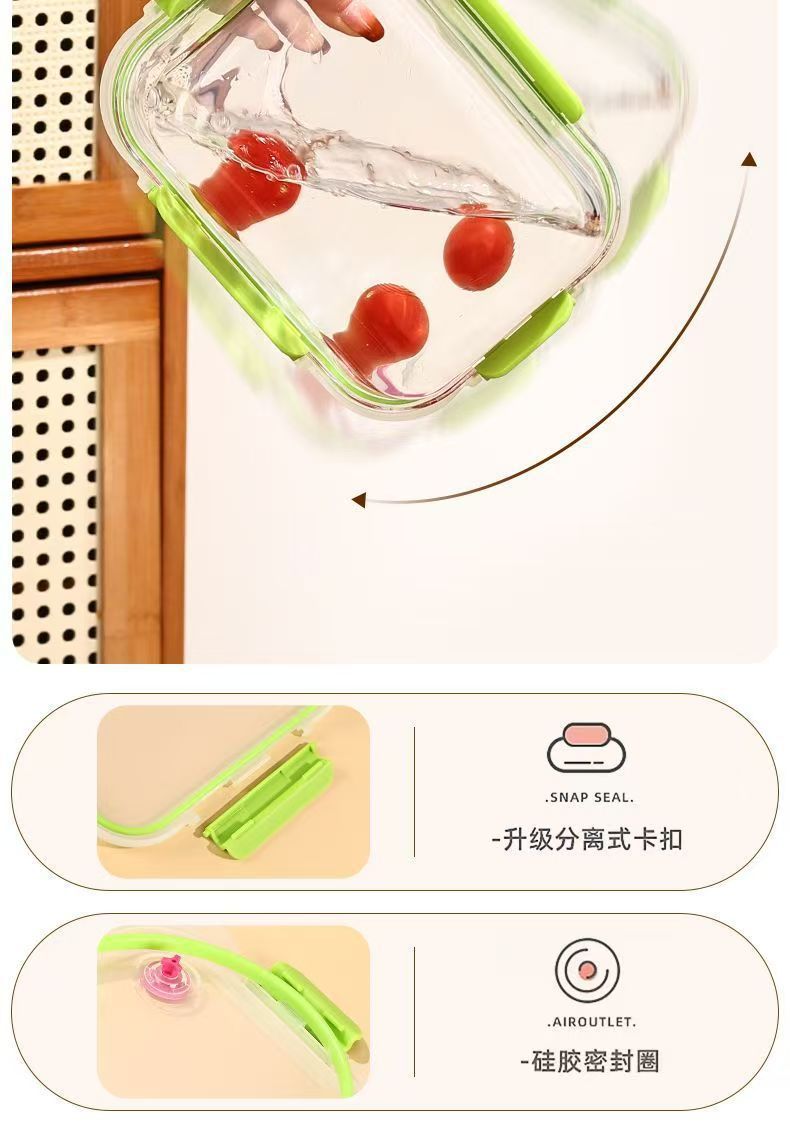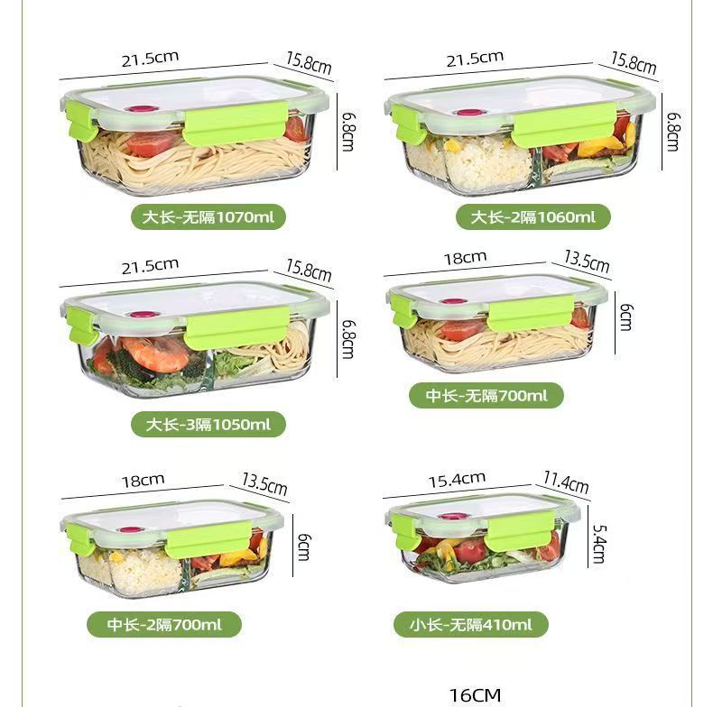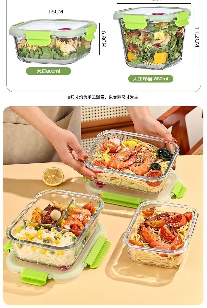 La lonchera de vidrio con alto contenido de borosilicato se puede usar en el horno microondas, la lonchera para estudiantes, la lonchera para trabajadores de oficina, la lonchera se puede calentar con tapa