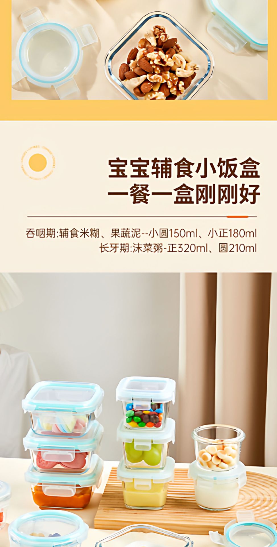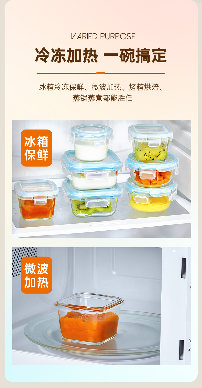 Caja de subenvasamiento de pequeña capacidad especial para bebés bolos de alimentos suplementarios pequeña caja de almuerzo de alimentos de microondas calentamiento caja de preservación de vidrio
