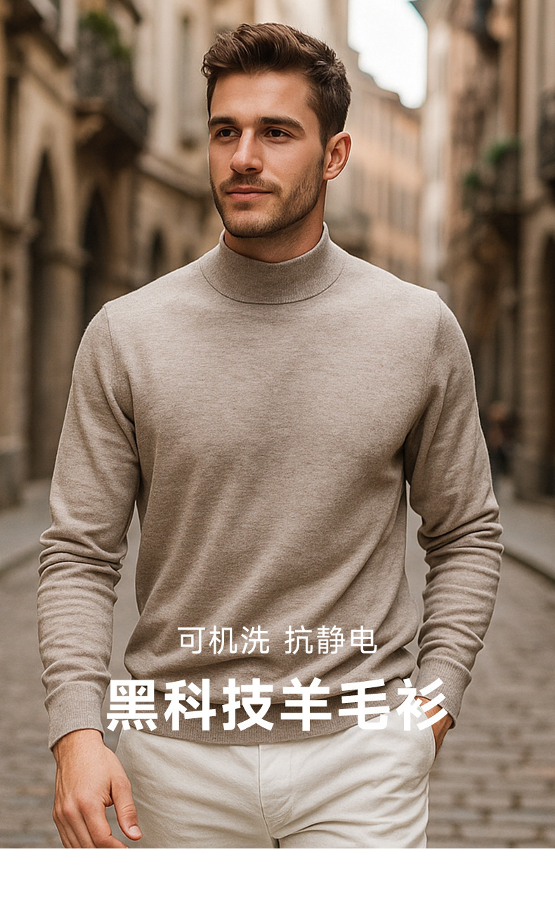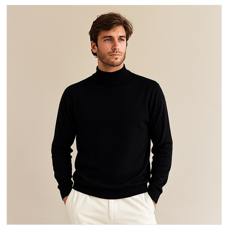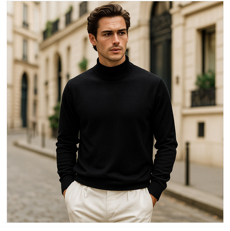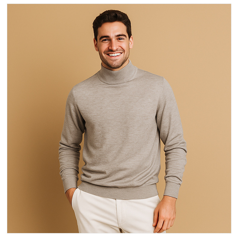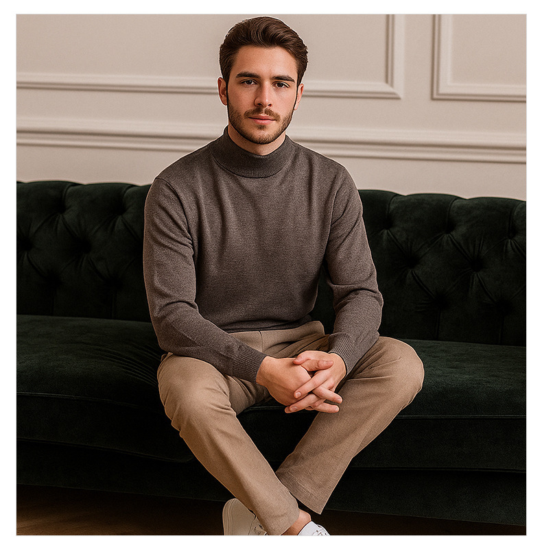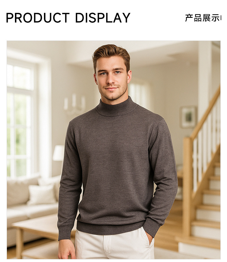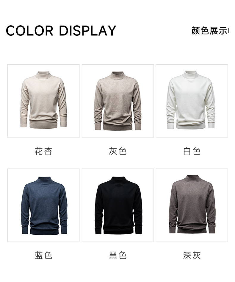 Suéter de lana de cuello medio alto de hombre otoño y invierno nuevo color sólido overcoat de punto superior de viento lento suéter de hombre camisa base