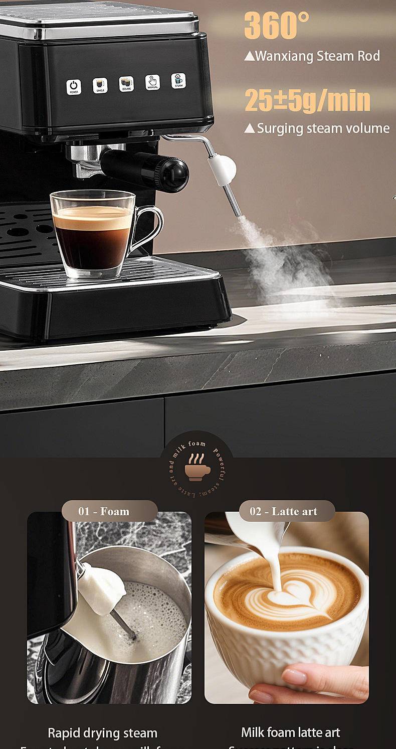 Máquina Espresso Máquina de café italiano Máquina de burbujas de leche semiautomática pequeña para el café espresso