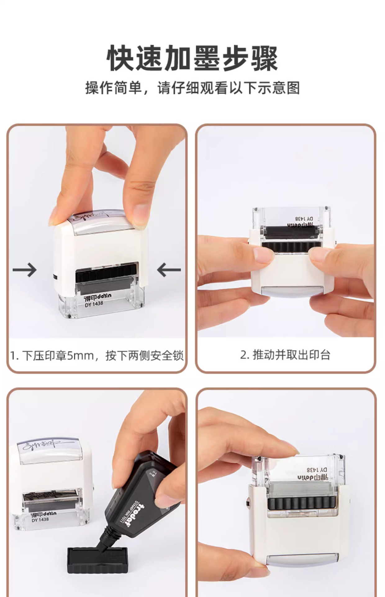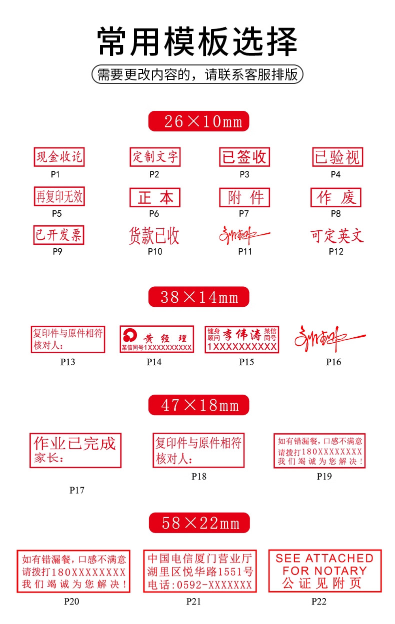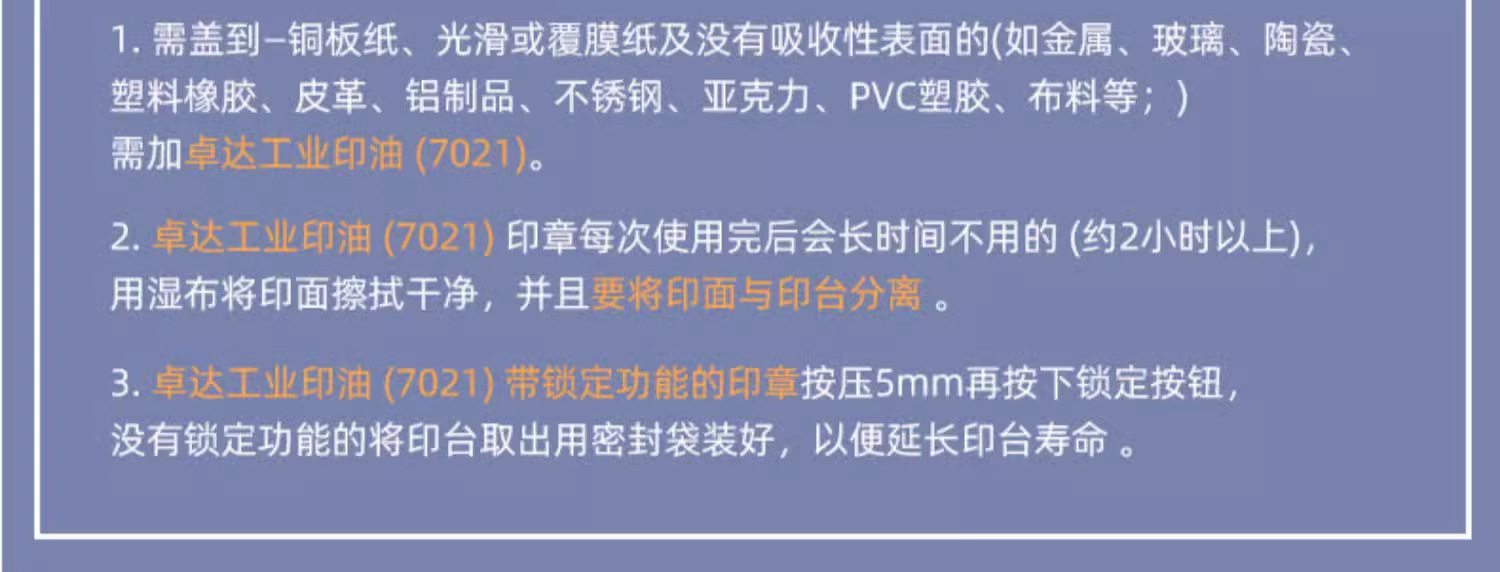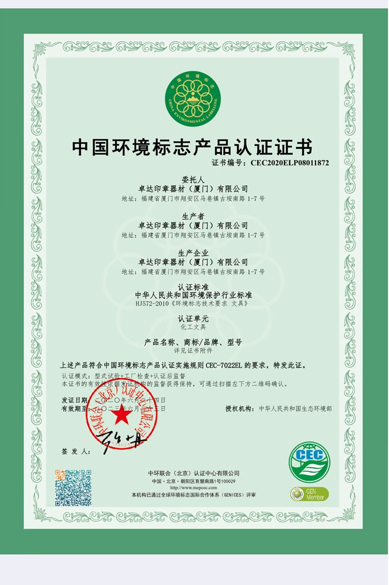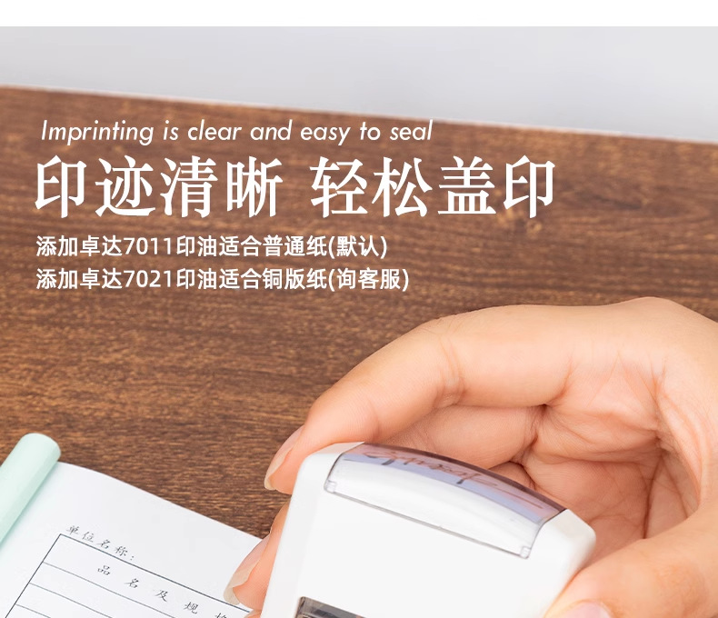 El sello de Zhuoda puede ser impreso en tinta, sello de flip, sello grabado, texto, patrón, nombre, dirección telefónica, sello de firma.