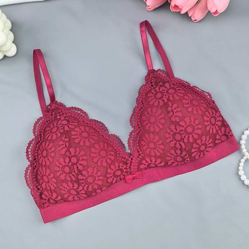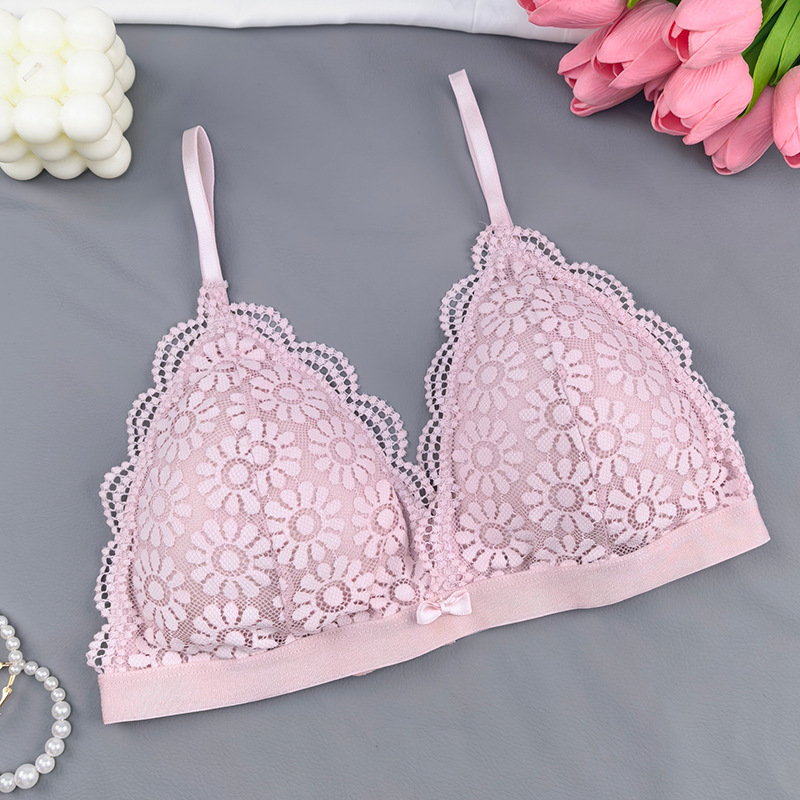 Europa y América de encaje sexy copa triangular francesa cabra hermosa ropa interior de espalda simple y ligera sin anillo de acero para estudiantes sujetadores de pecho
