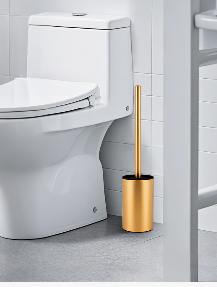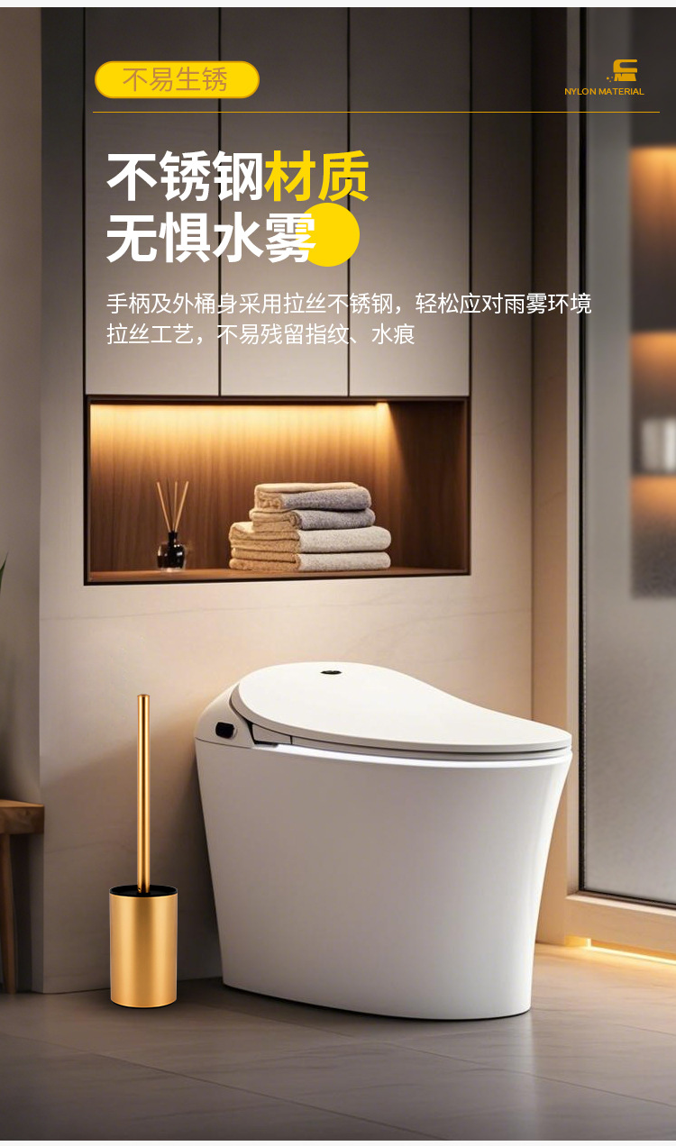 Cepillo de baño de mango largo dorado de acero inoxidable Cepillo de limpieza de inodoro para el hogar con cabezal de cepillo base Nuevo 2025