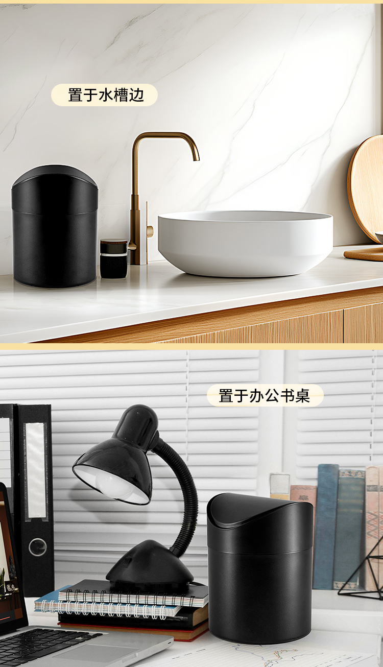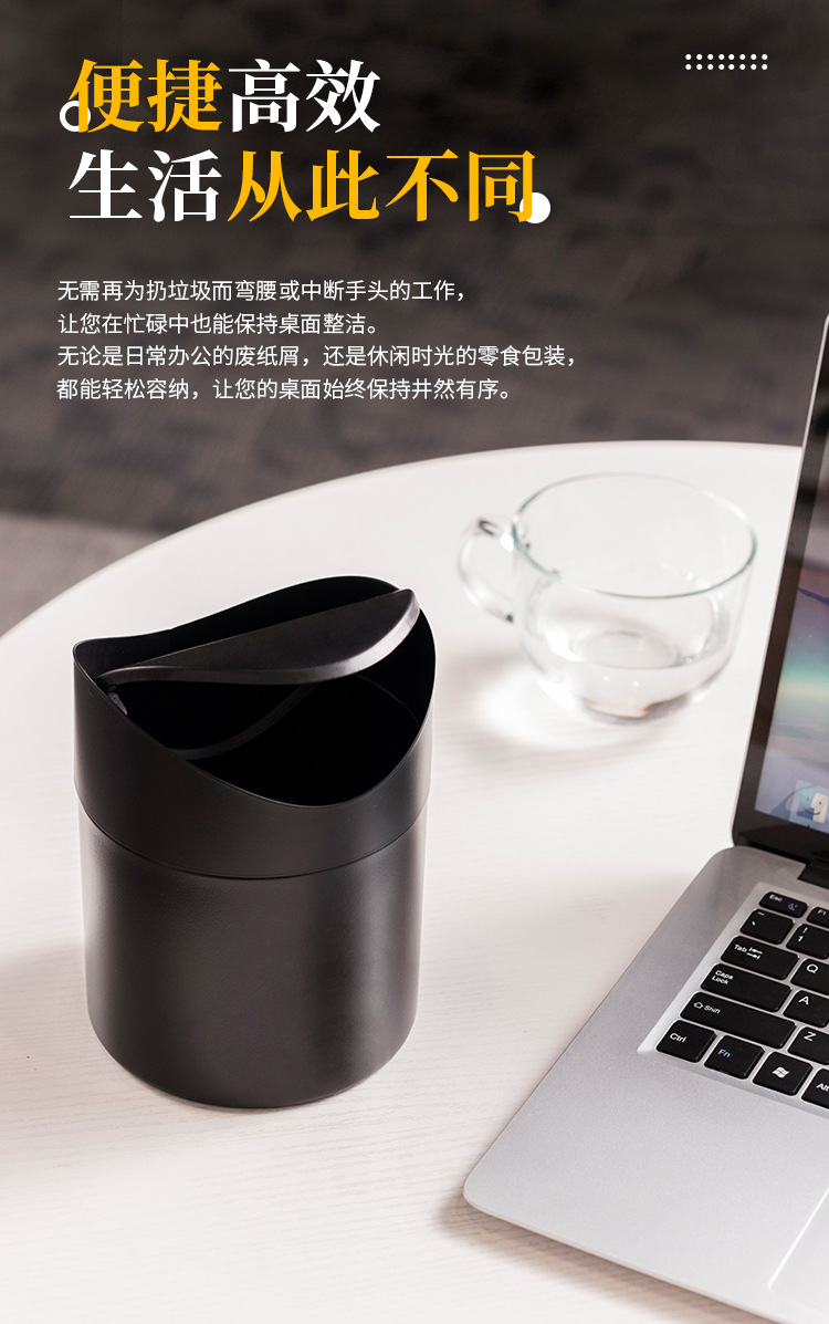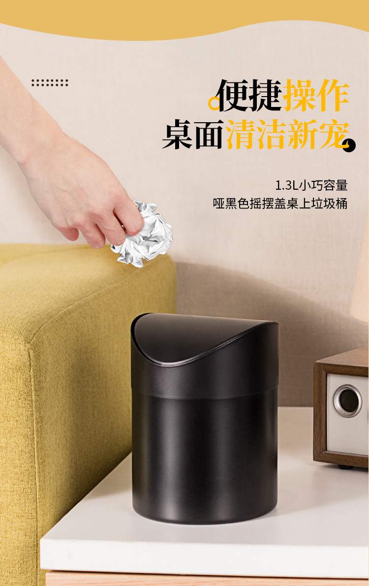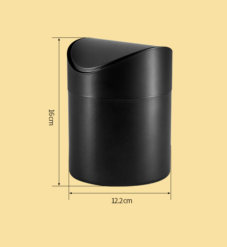 Cubo de basura de escritorio negro de 1.3L con tapa basculante, contenedor de almacenamiento para oficina, mini cubo de basura para coche con tapa abatible