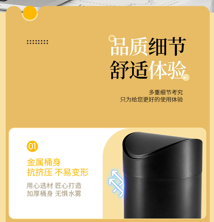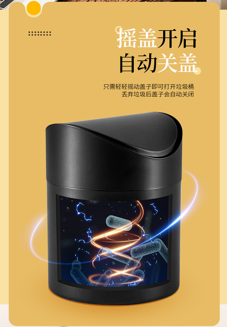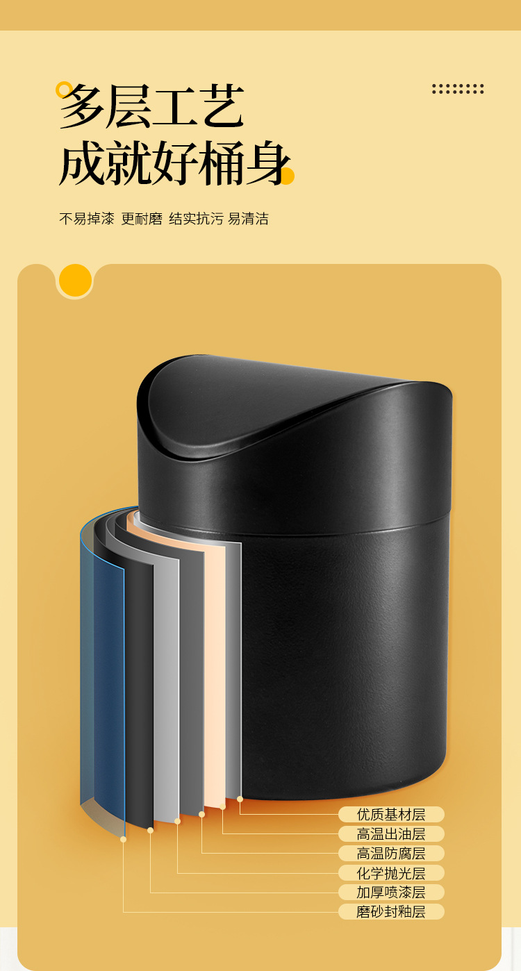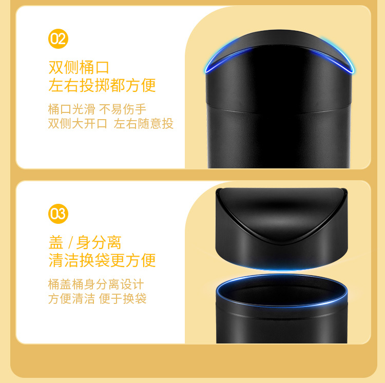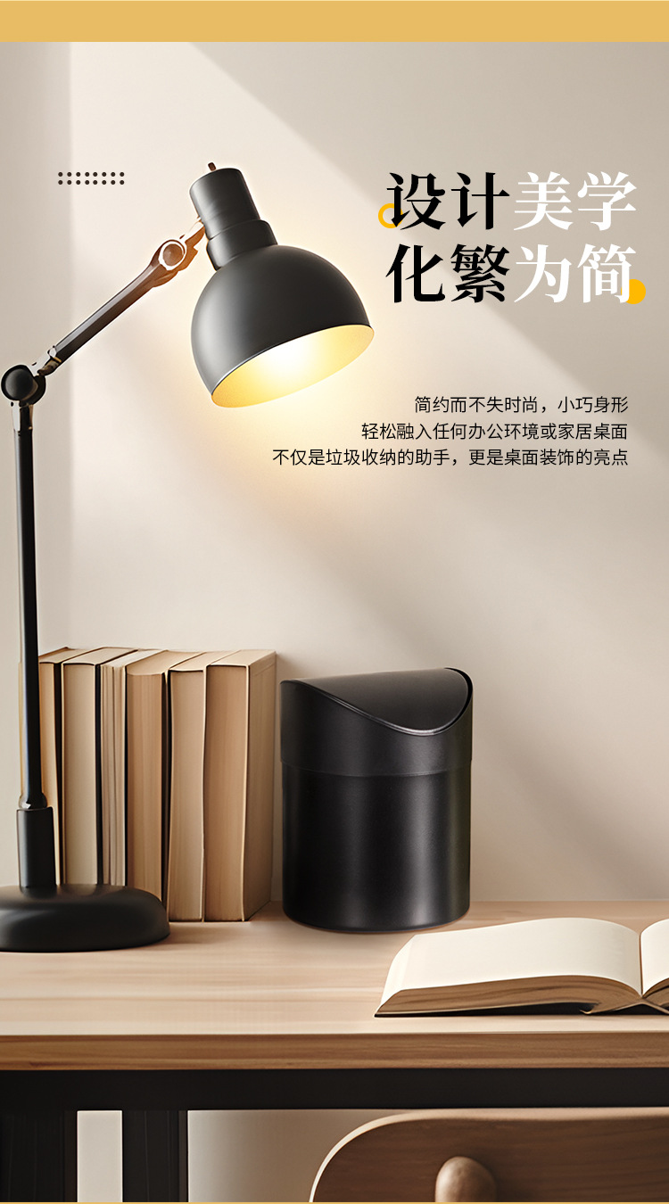 Cubo de basura de escritorio negro de 1.3L con tapa basculante, contenedor de almacenamiento para oficina, mini cubo de basura para coche con tapa abatible