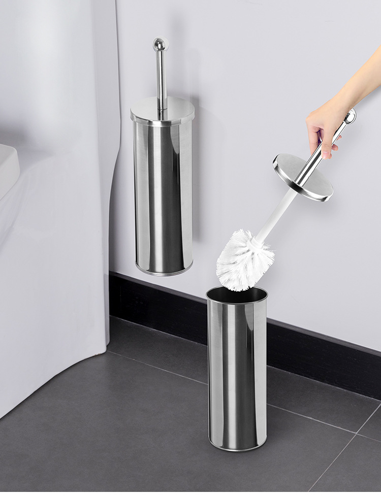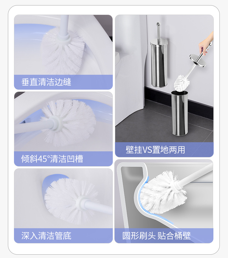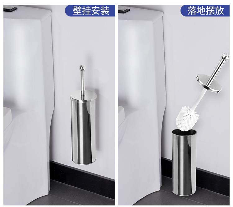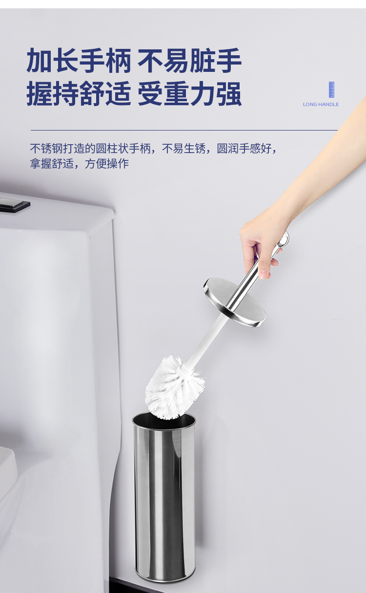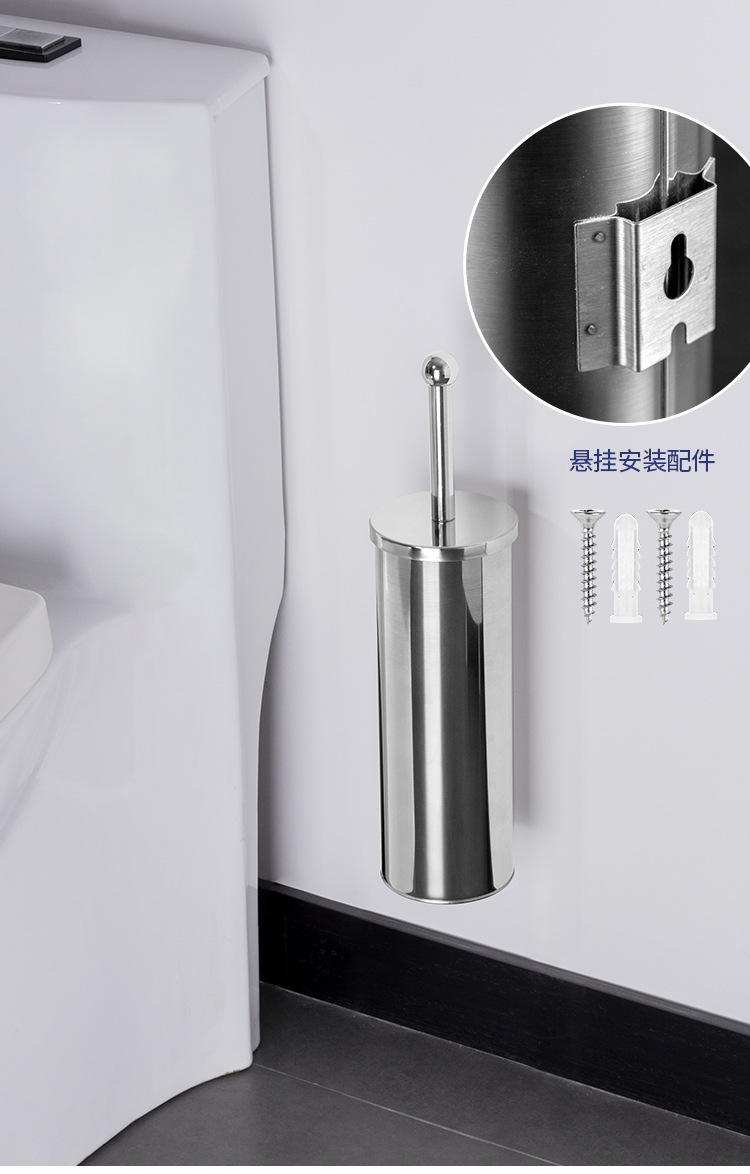 Cepillo de inodoro de acero inoxidable que se puede colgar en la pared con base para limpiar el hogar, cepillo de inodoro, cepillo de limpieza de mango largo de pelo suave