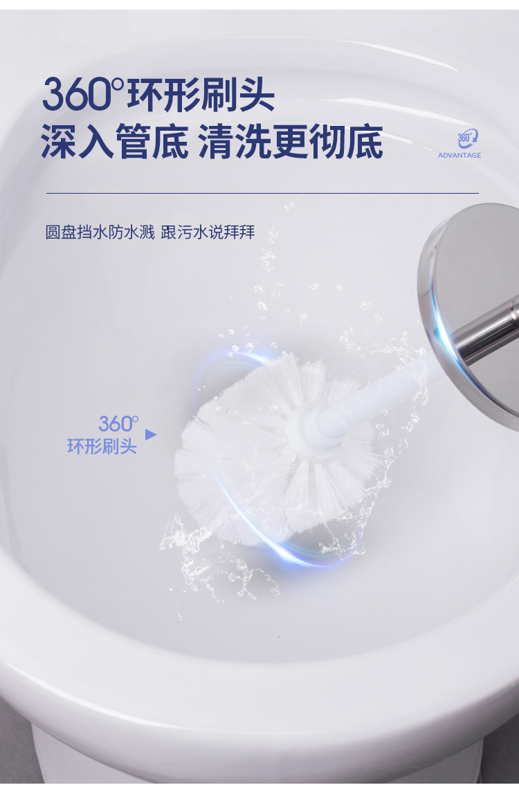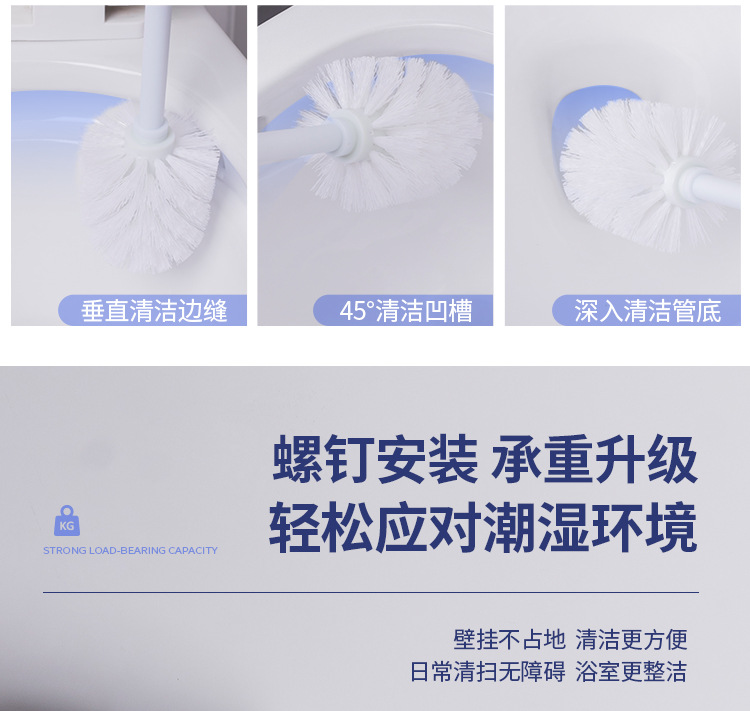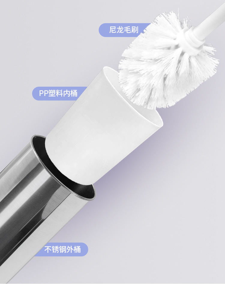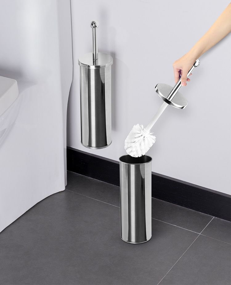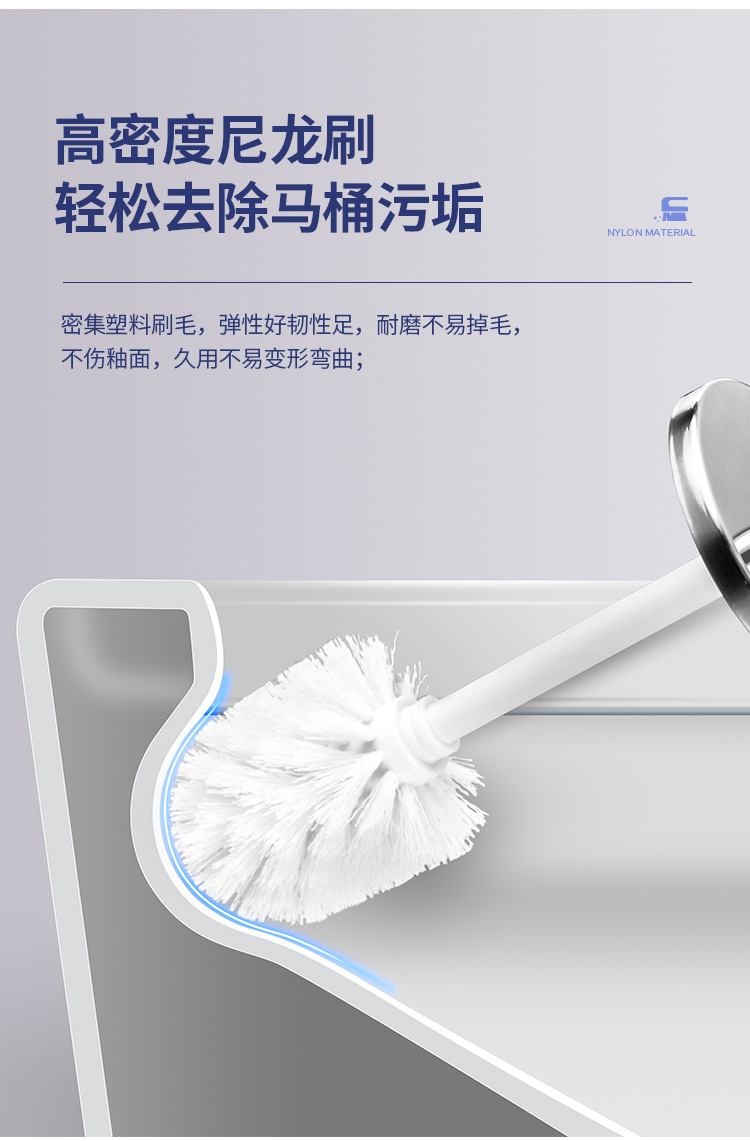 Cepillo de inodoro de acero inoxidable que se puede colgar en la pared con base para limpiar el hogar, cepillo de inodoro, cepillo de limpieza de mango largo de pelo suave