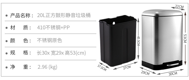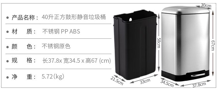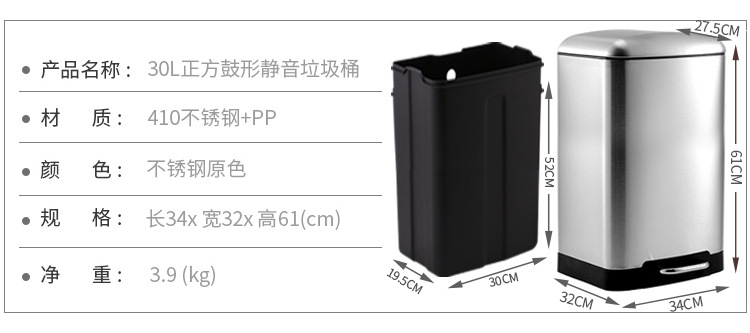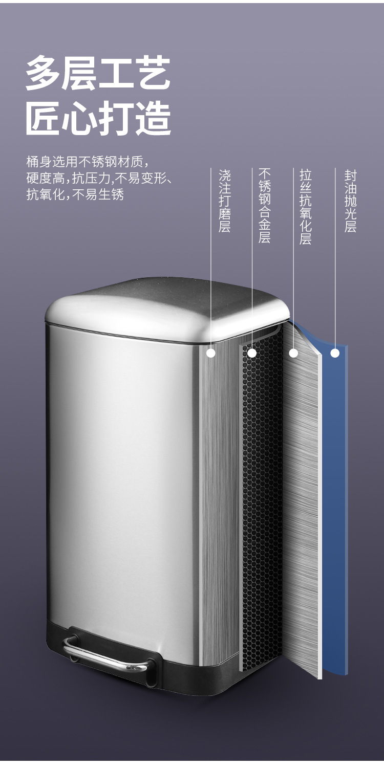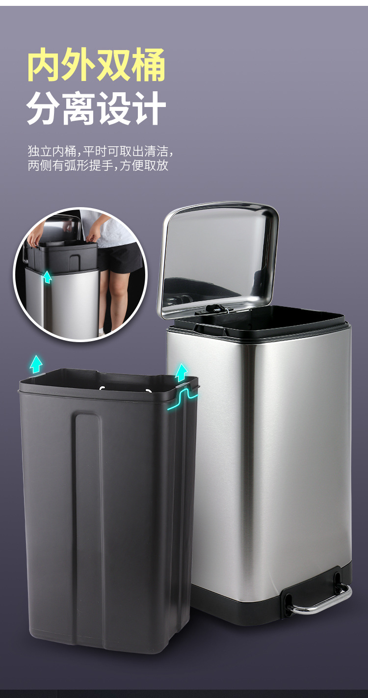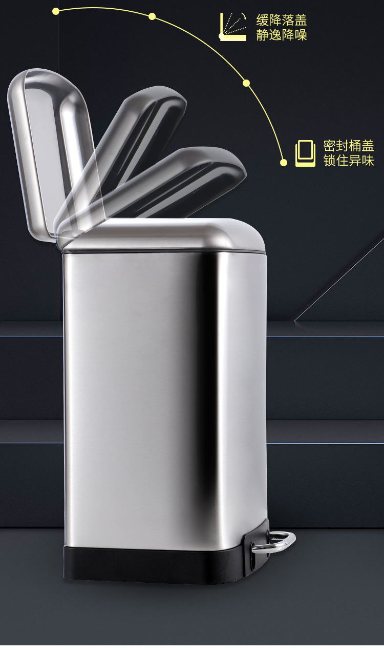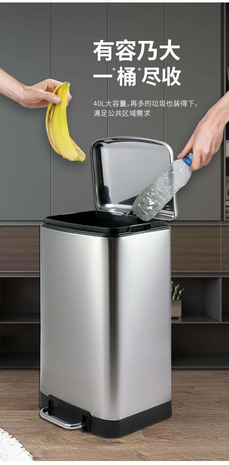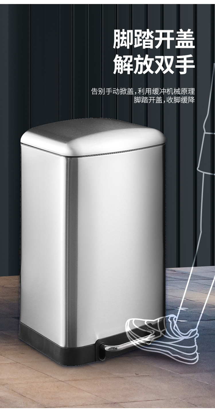 La basura comercial grande puede pedal Cubo de almacenamiento con tapa centro comercial de acero inoxidable unidad de la empresa lenta caída de la basura puede