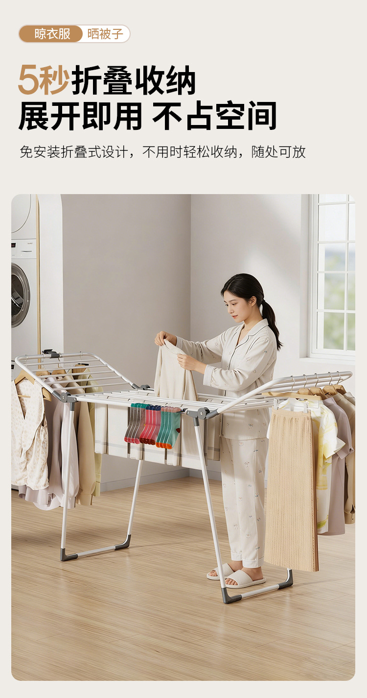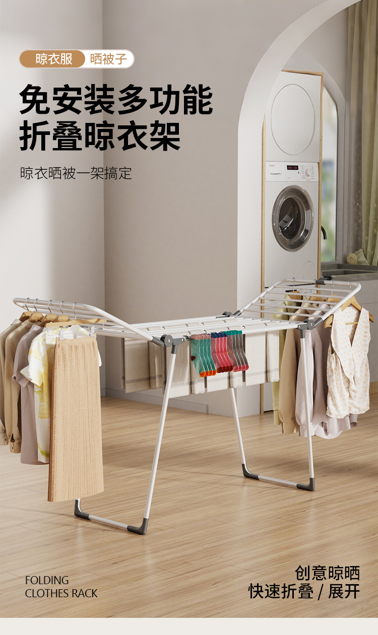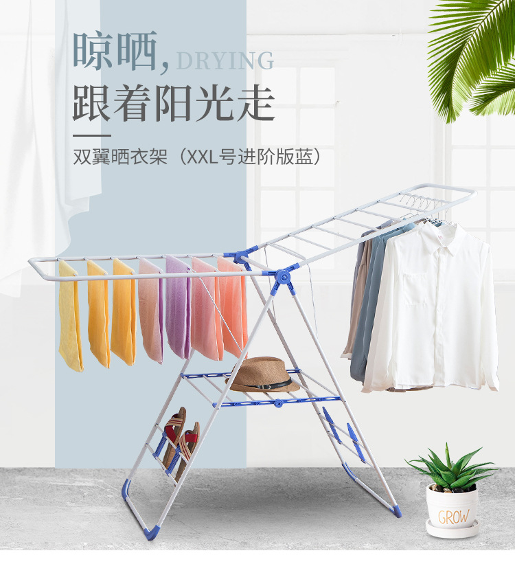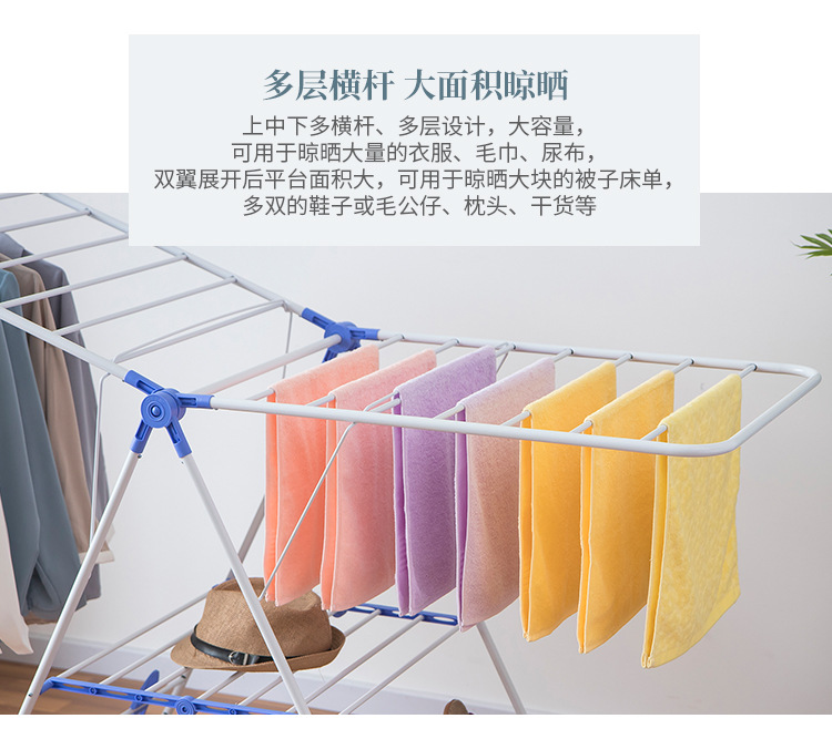 Piso del hogar multifuncional plegable percha de ropa X-tipo balcón percha de ropa interior Instalación-Libre ala tipo percha de ropa al por mayor