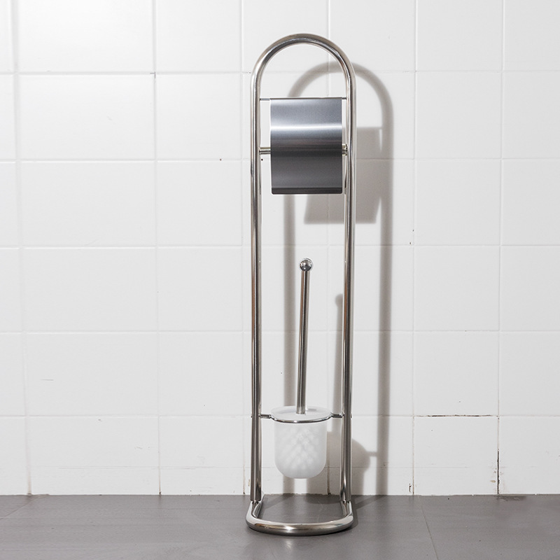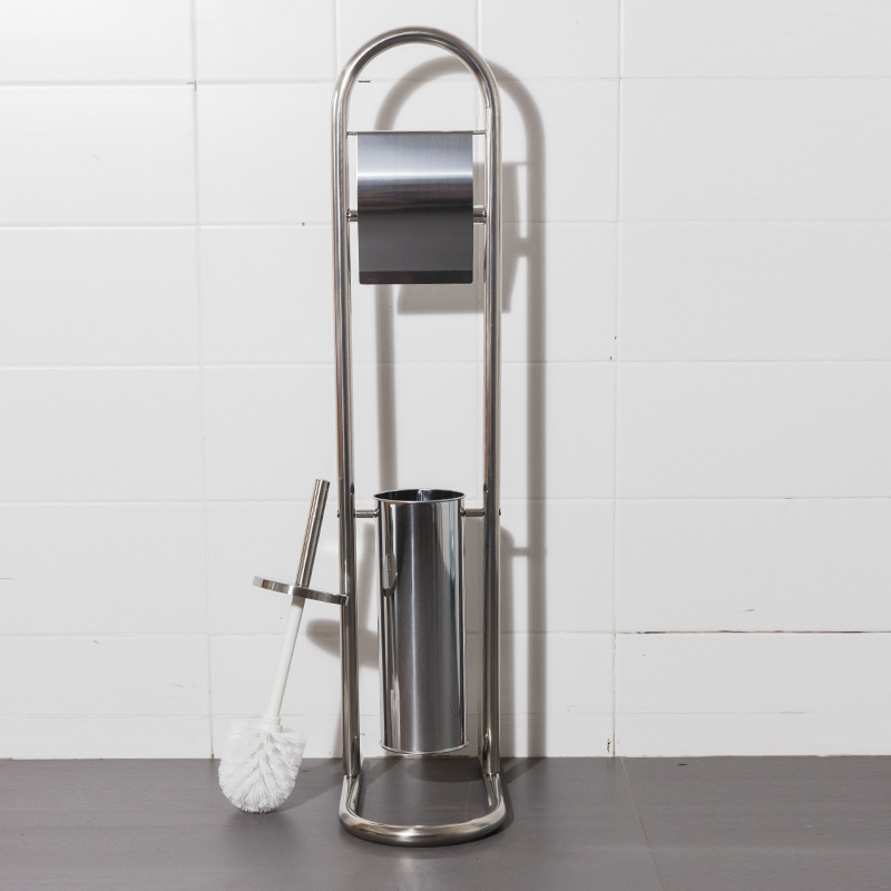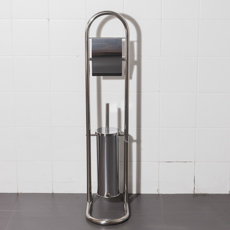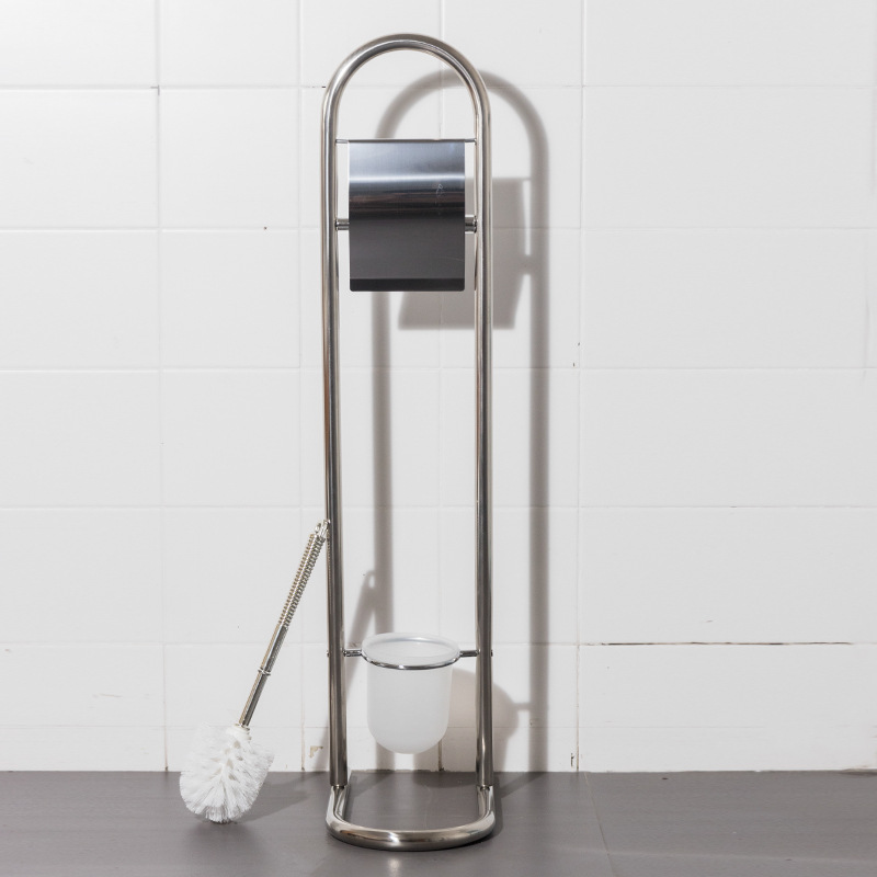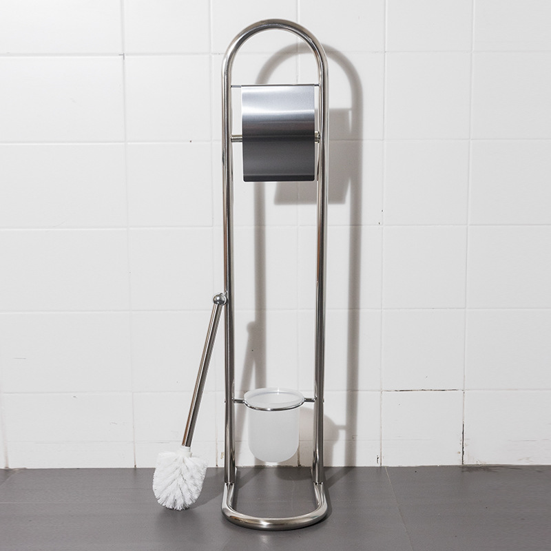 Estante de limpieza de piso móvil, soporte de papel higiénico, cepillo de inodoro, soporte de toallas de papel de acero inoxidable integrado, sin perforación, comercio exterior