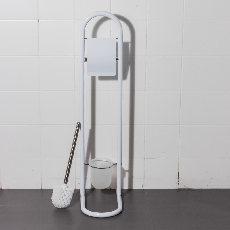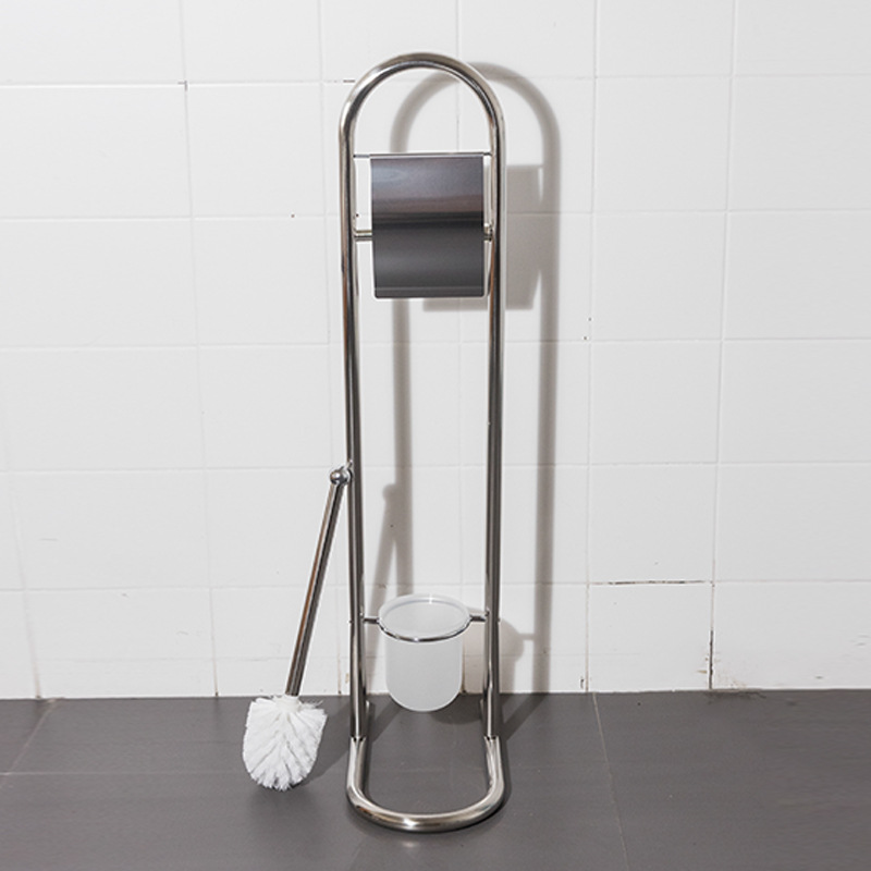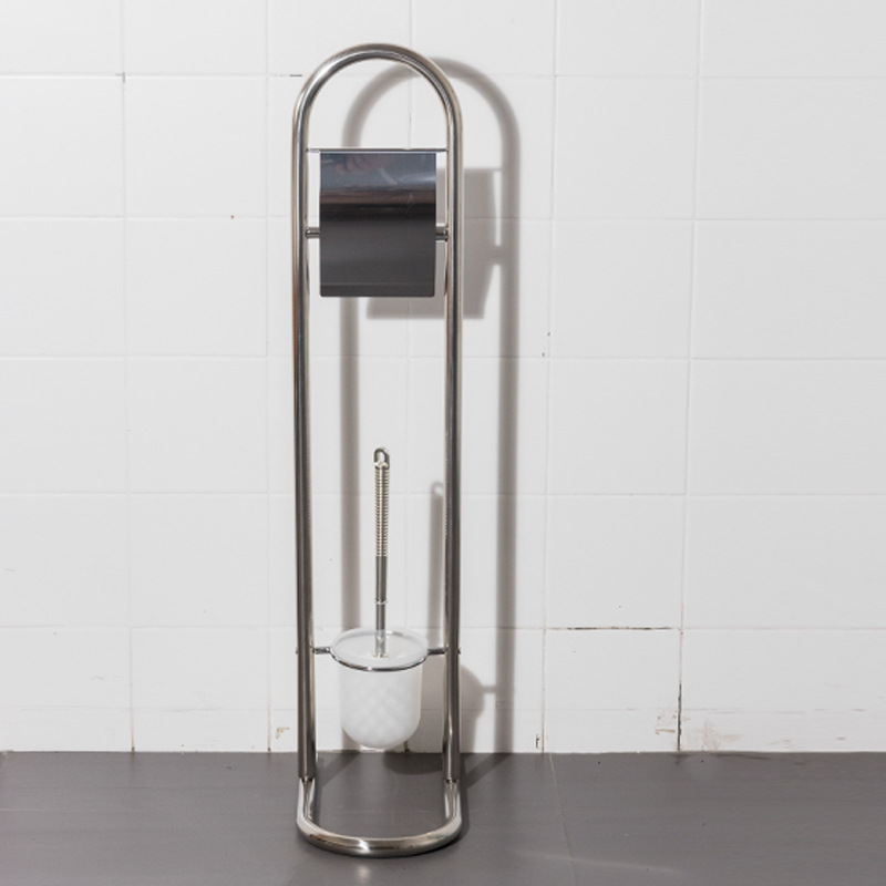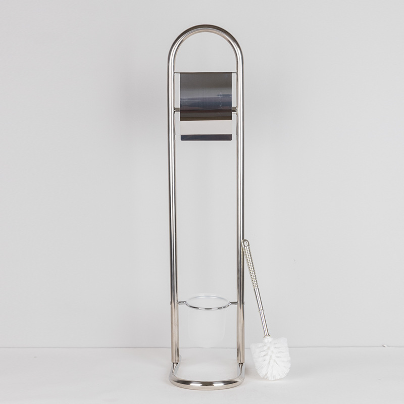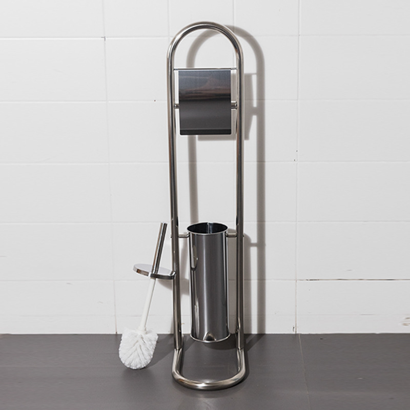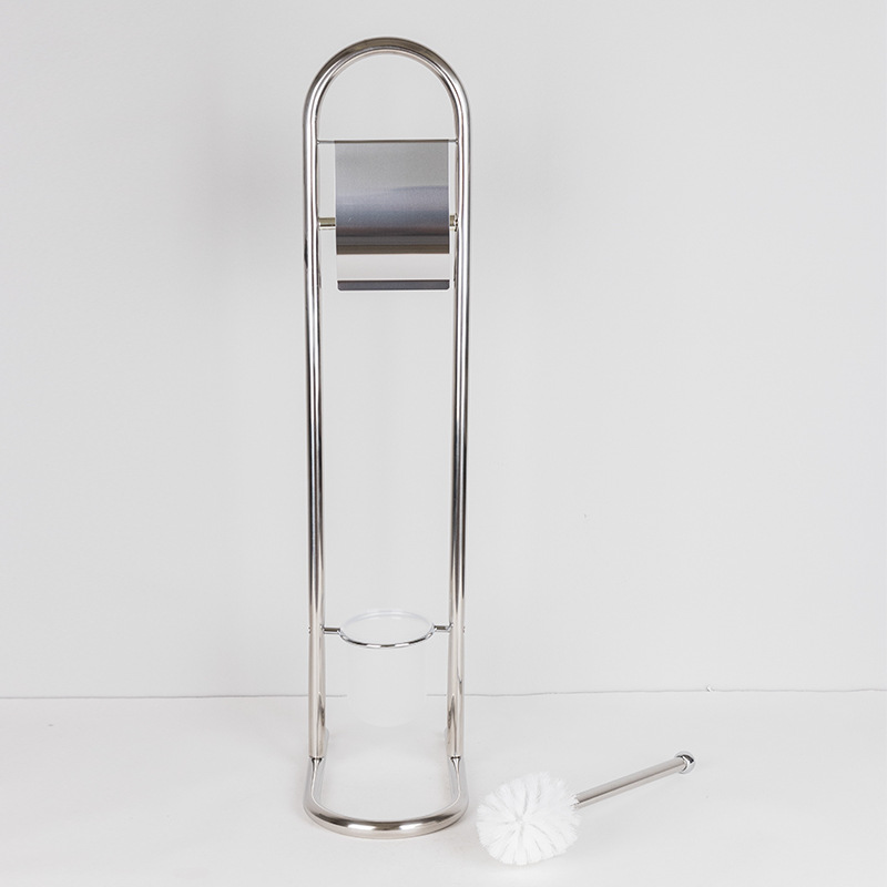 Estante de limpieza de piso móvil, soporte de papel higiénico, cepillo de inodoro, soporte de toallas de papel de acero inoxidable integrado, sin perforación, comercio exterior