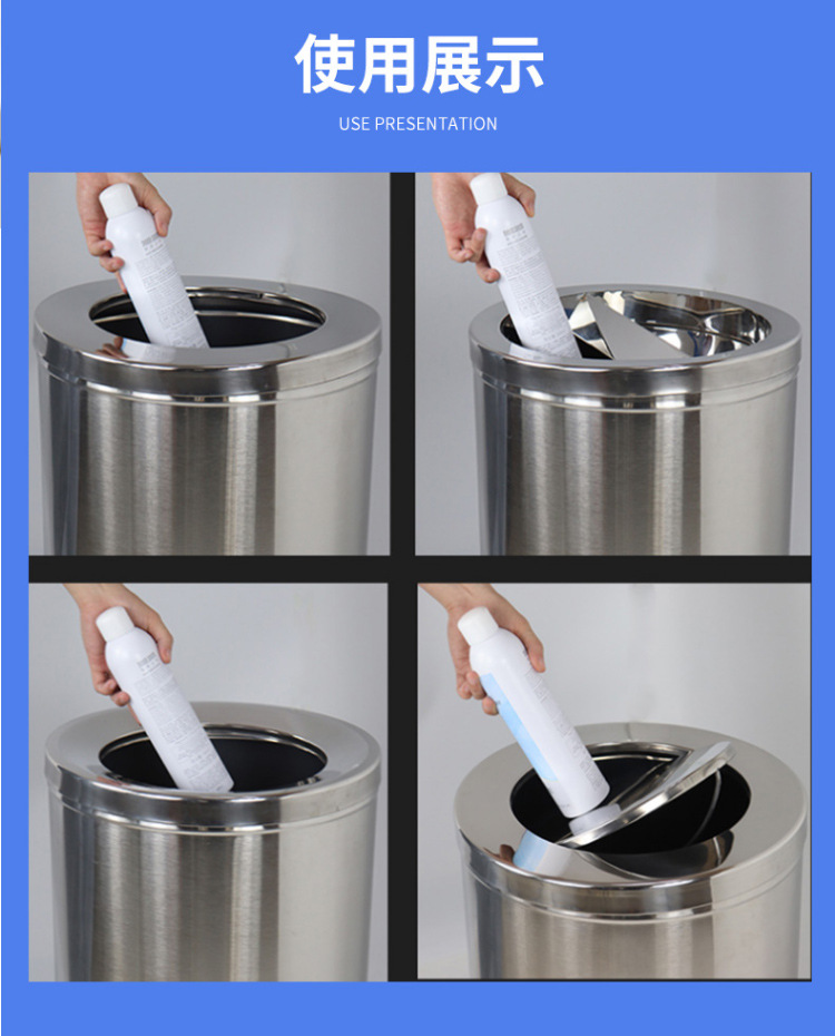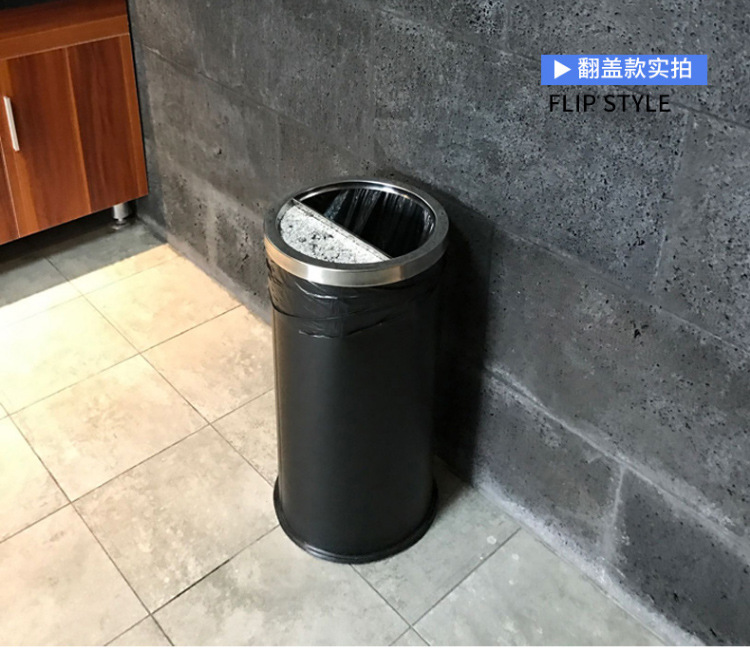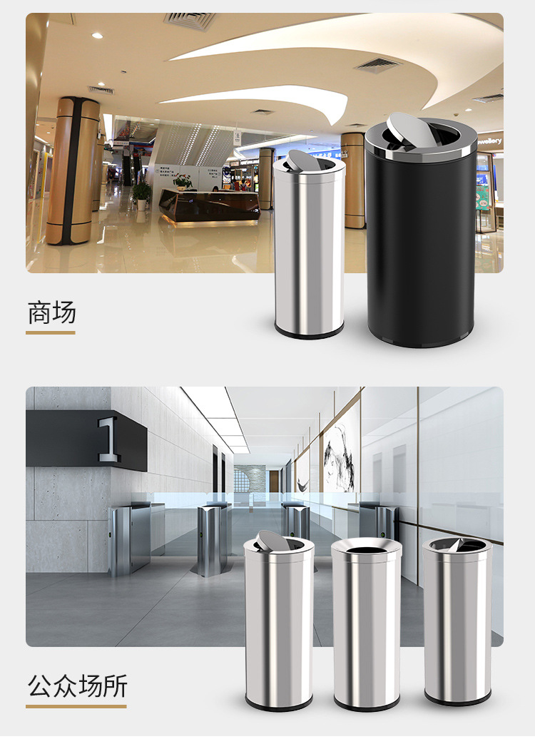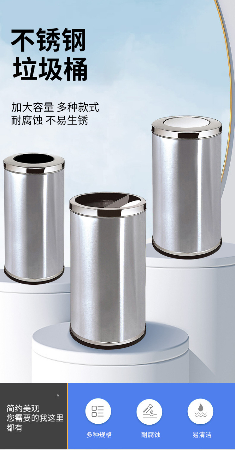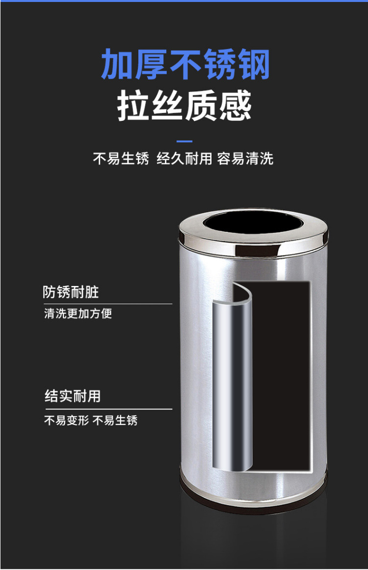 Hotel de acero inoxidable cubo de basura redondo con cenicero empresa hotel vertical pasillo elevador cubo de fumadores