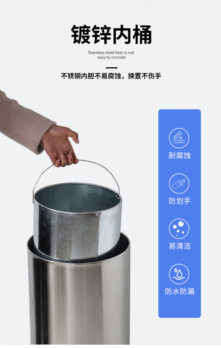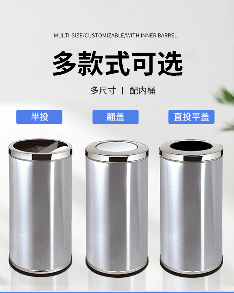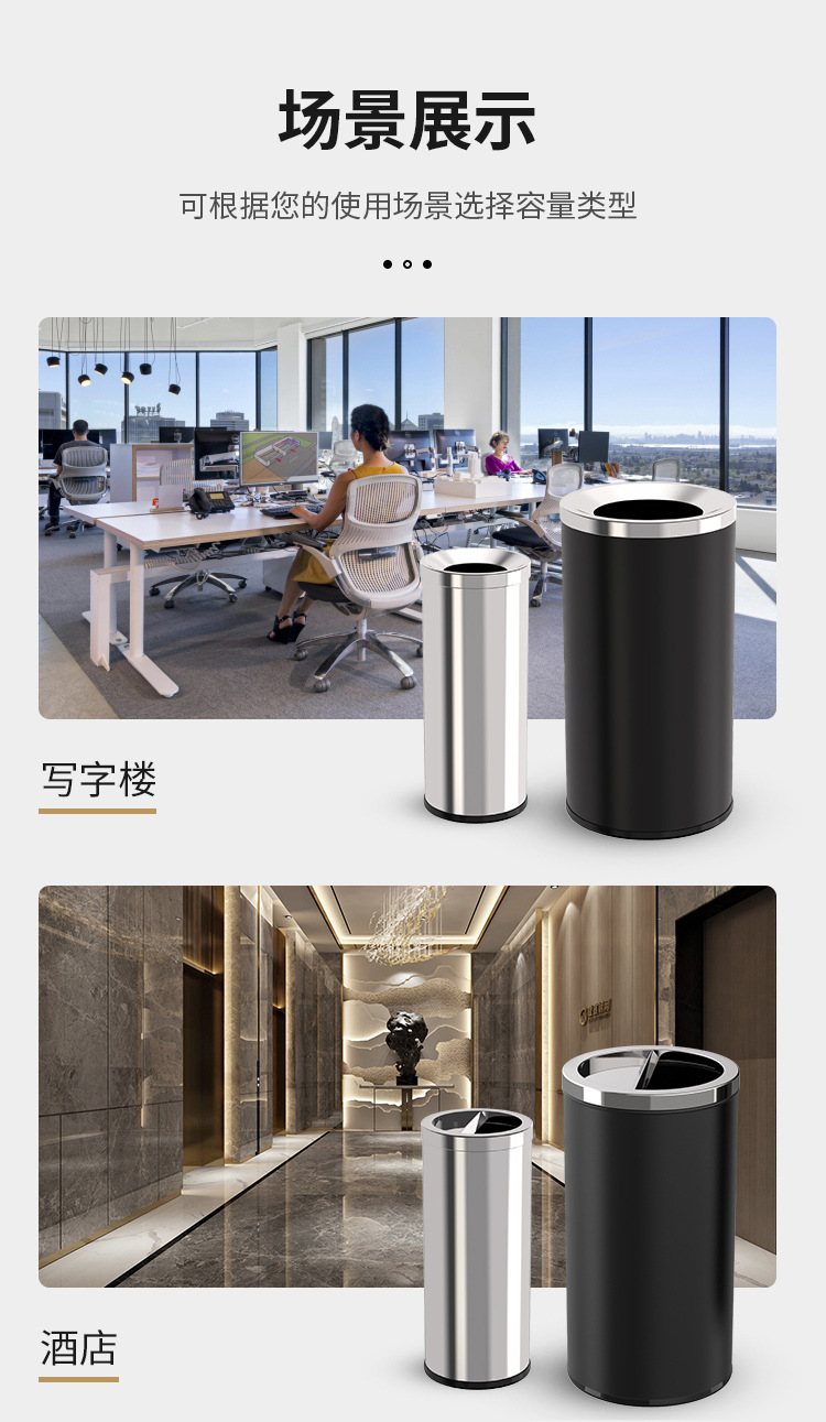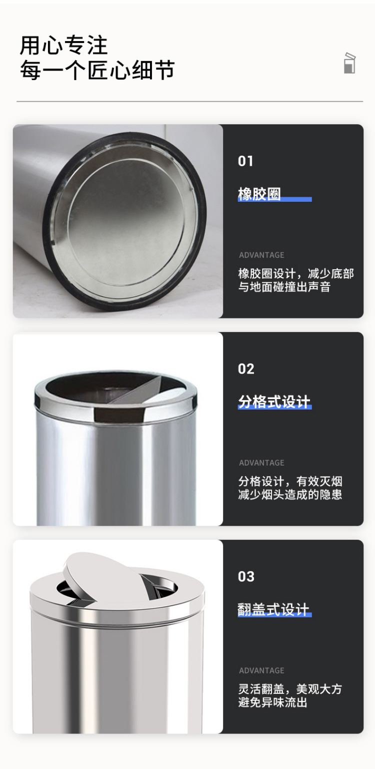 Hotel de acero inoxidable cubo de basura redondo con cenicero empresa hotel vertical pasillo elevador cubo de fumadores
