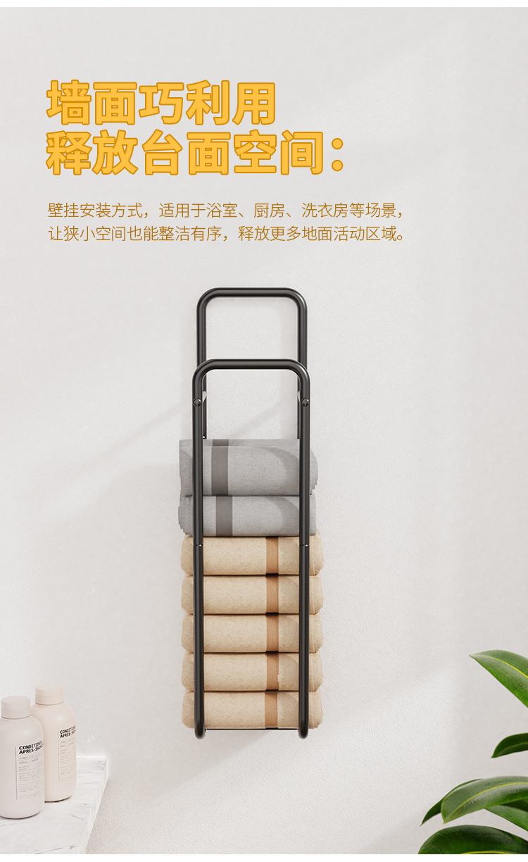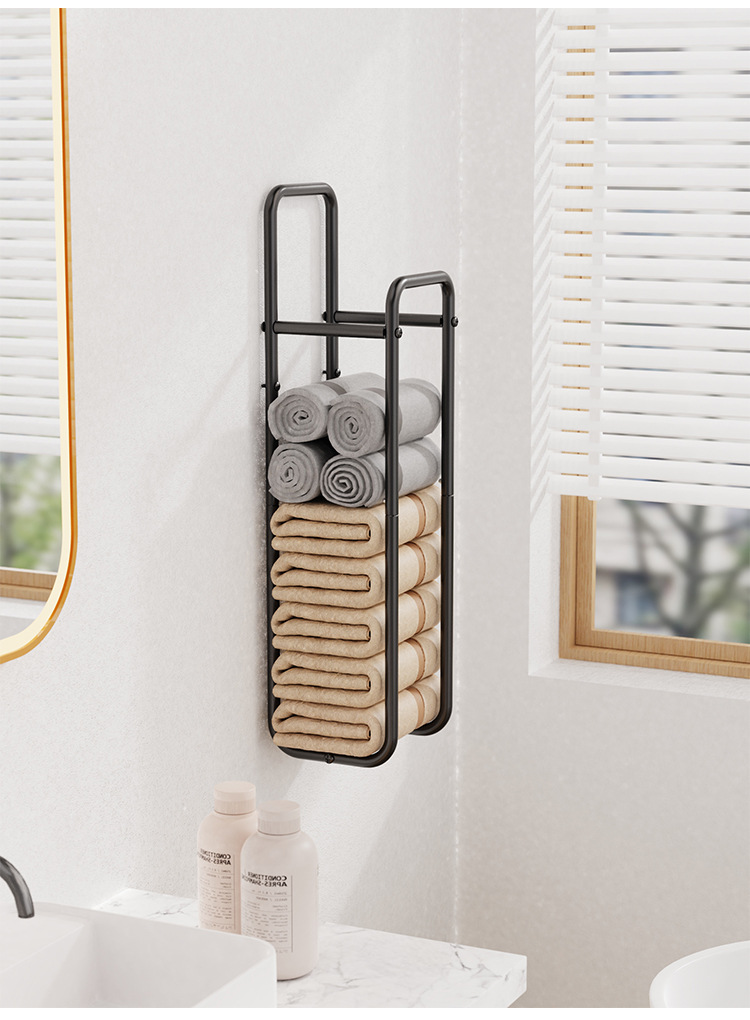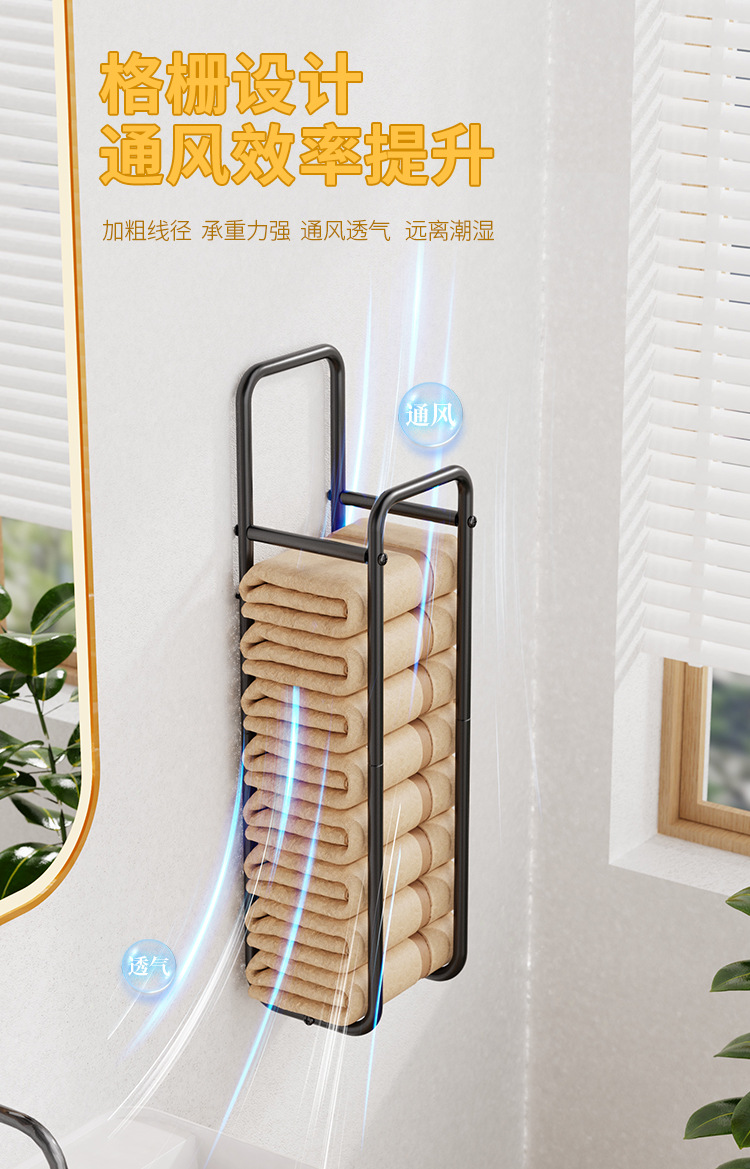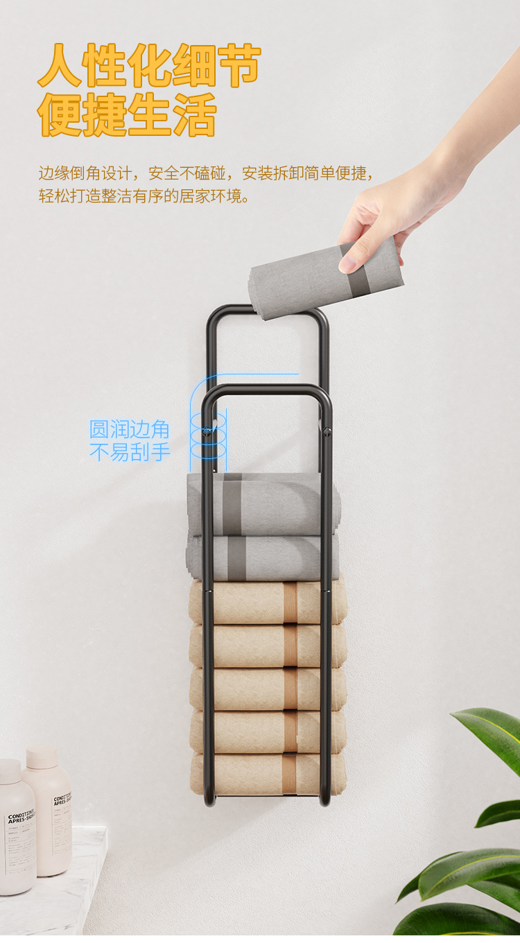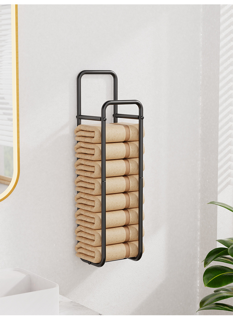 Transfronterizo nuevo tipo de toalla de pared almacenamiento de ropa estante de toallas de baño apilado perforación toallas de lavado de cara negras estante de almacenamiento