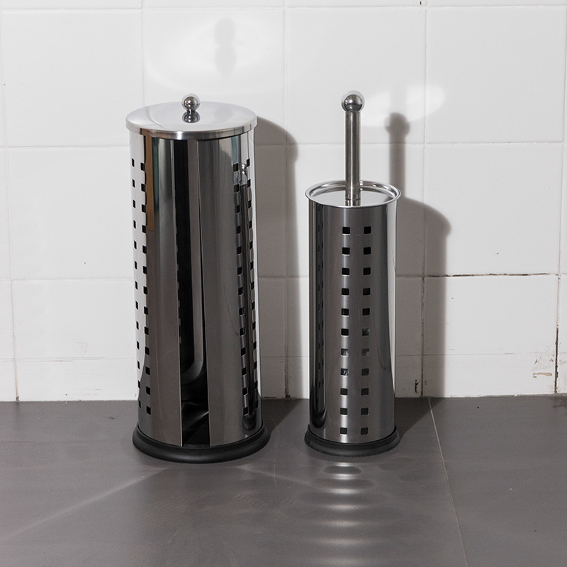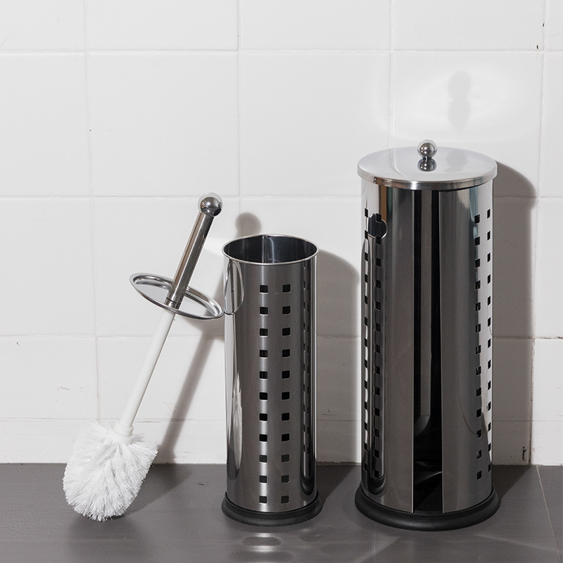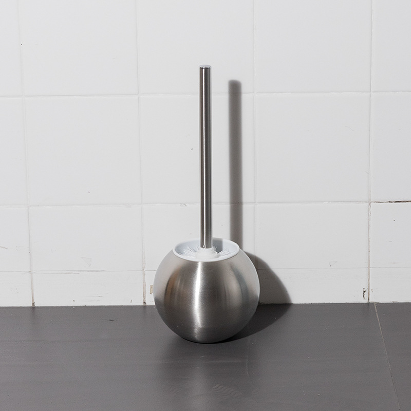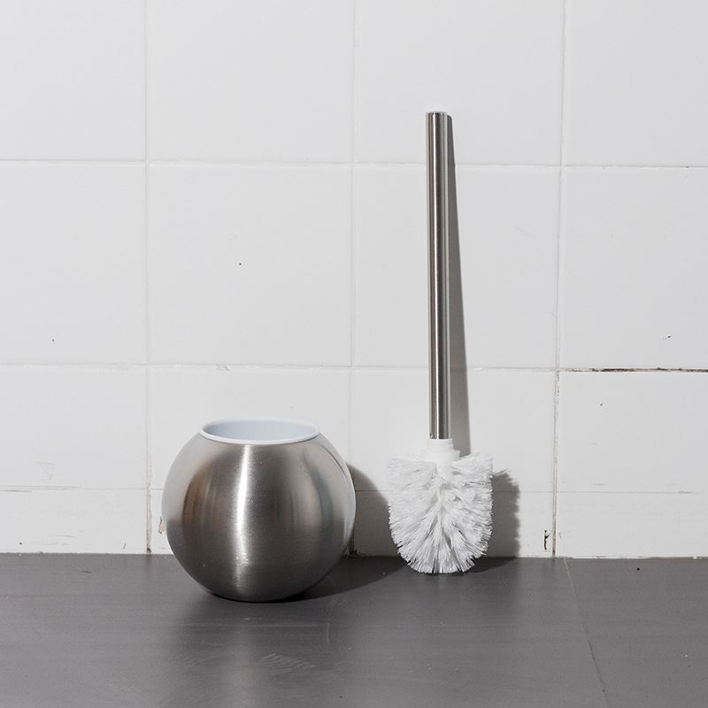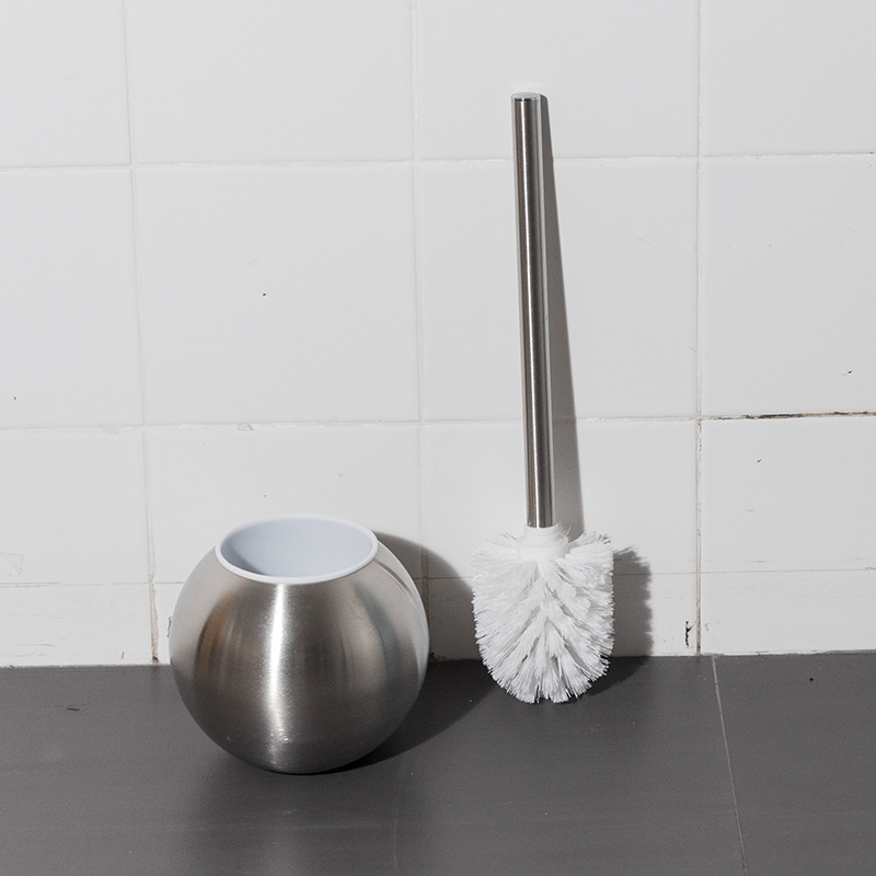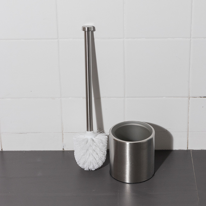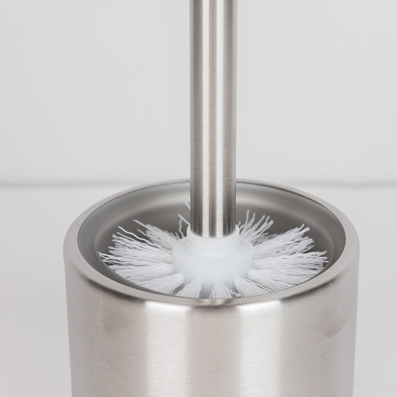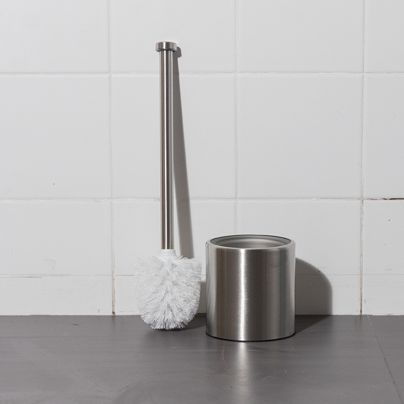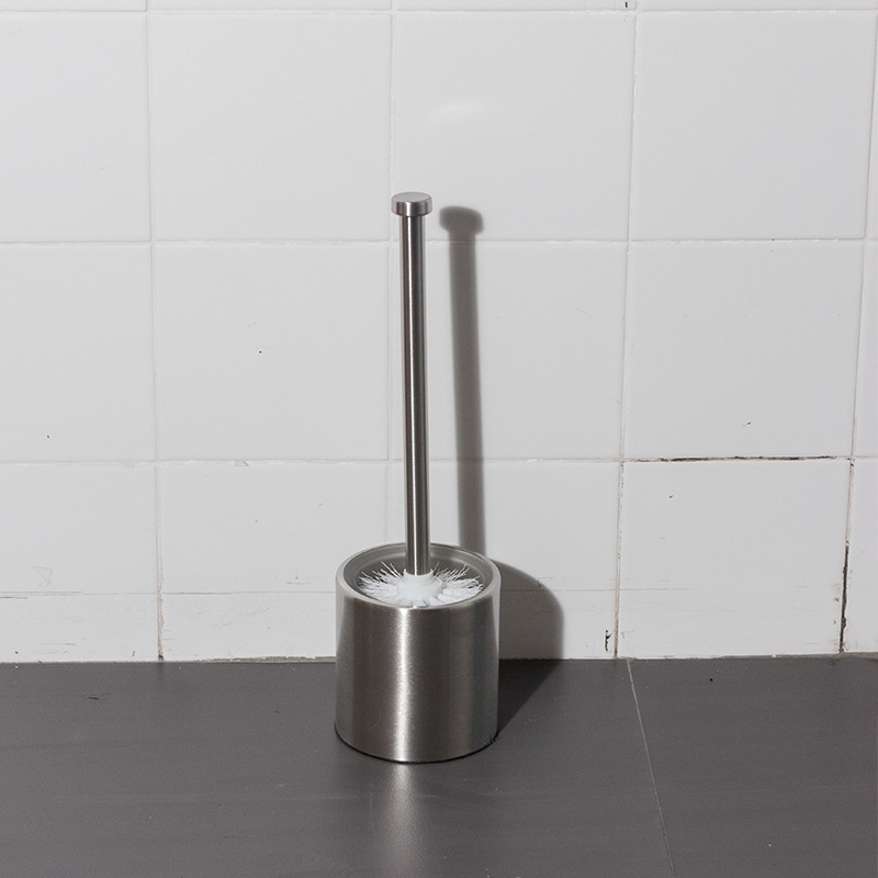 Ourunzhe cepillo de inodoro de acero inoxidable con base para limpieza del hogar cepillo de inodoro cepillo de limpieza de mango largo de pelo suave