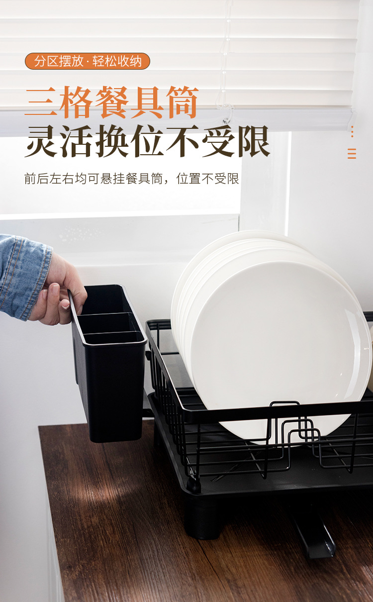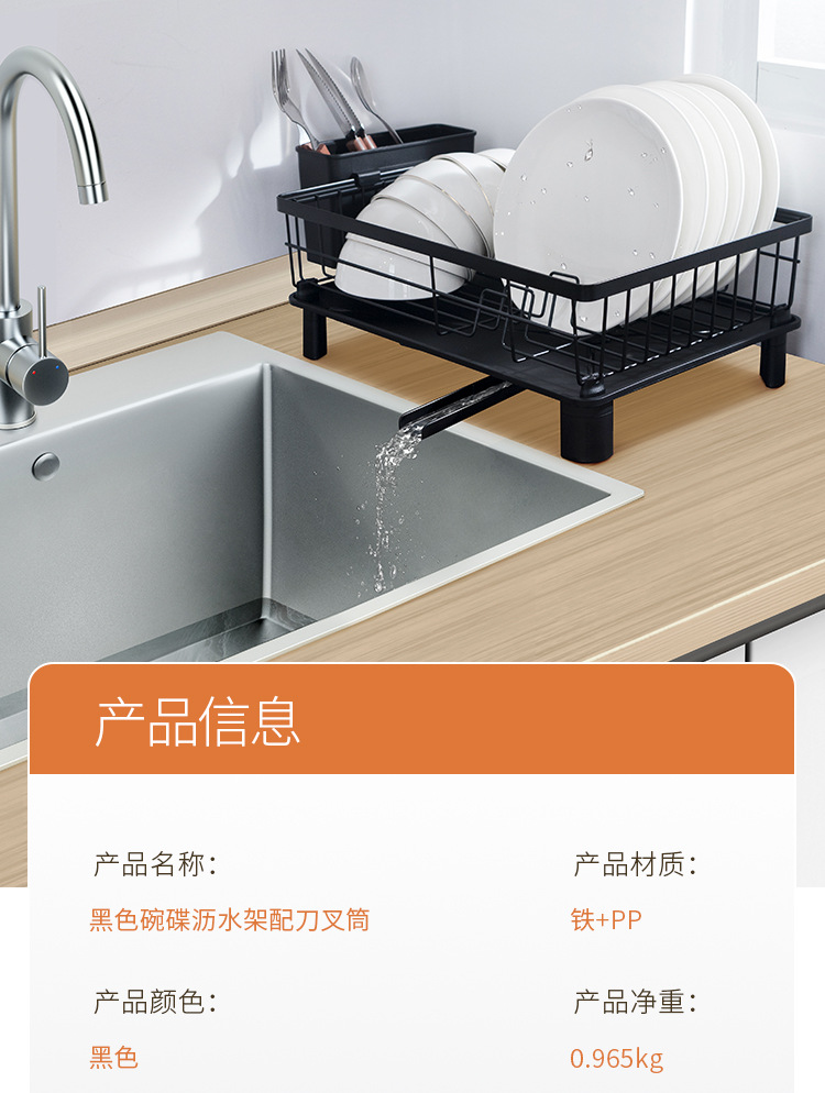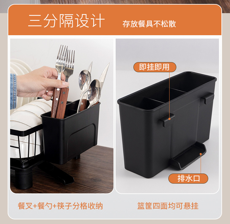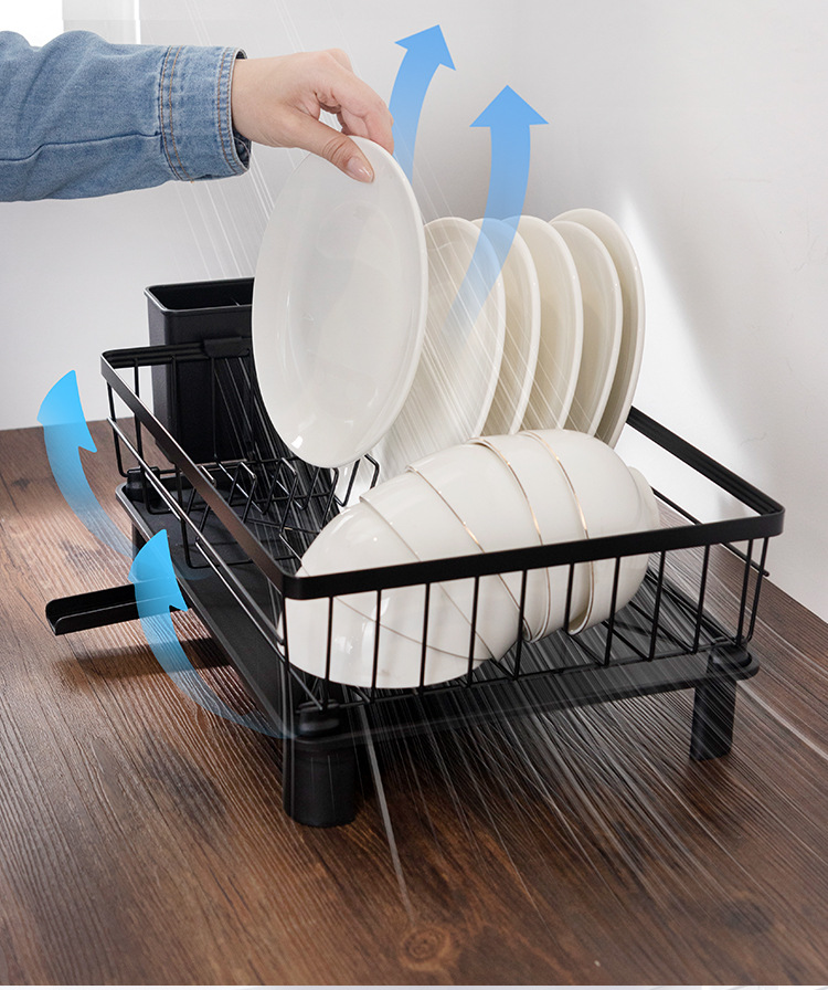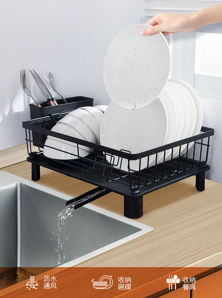 Rejilla de drenaje de platos negros transfronterizos con tubo de cuchillo y tenedor, mesa de cocina, estante para platos de una sola capa, estante para fregadero de vajilla