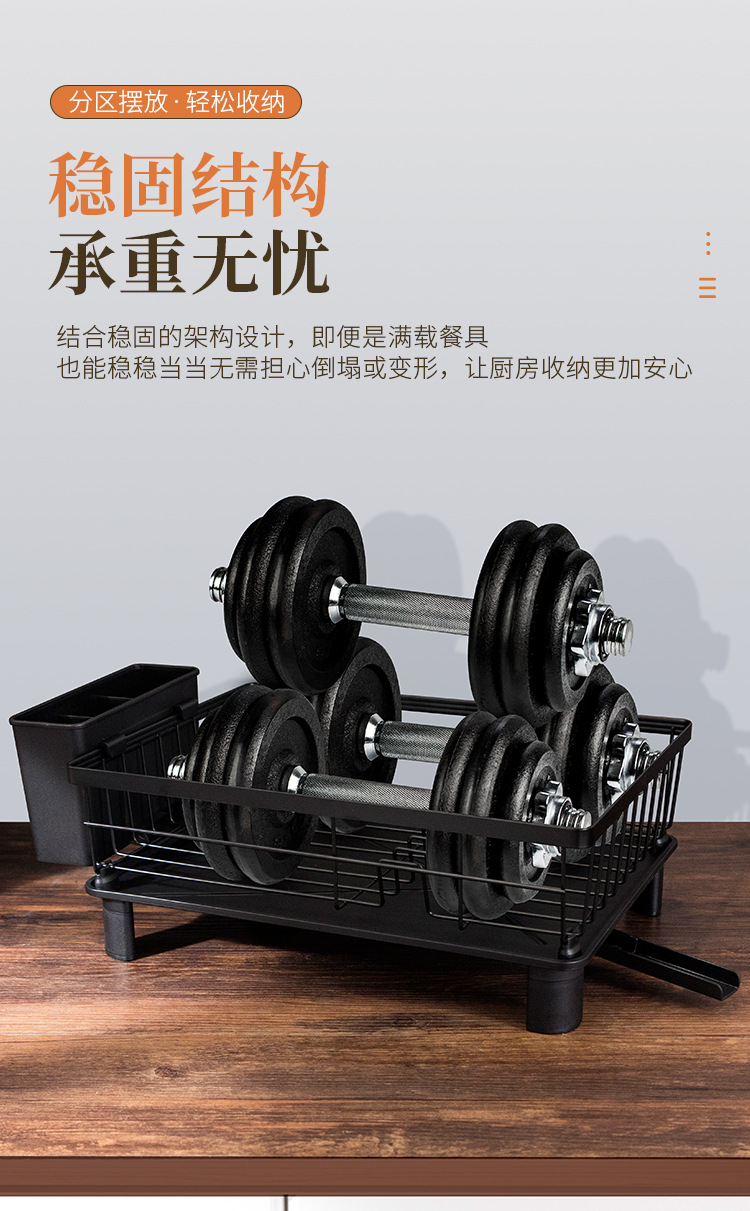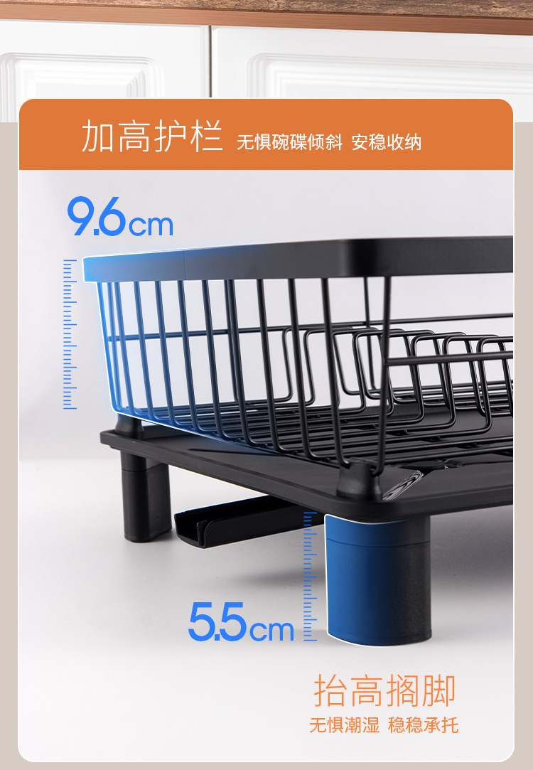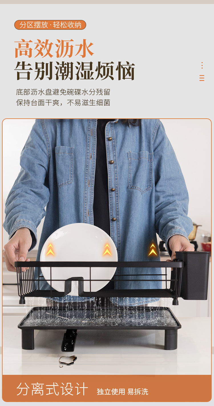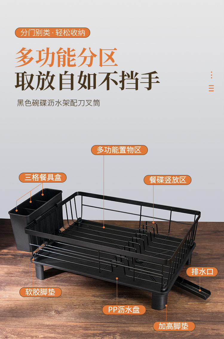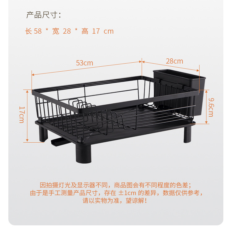 Rejilla de drenaje de platos negros transfronterizos con tubo de cuchillo y tenedor, mesa de cocina, estante para platos de una sola capa, estante para fregadero de vajilla
