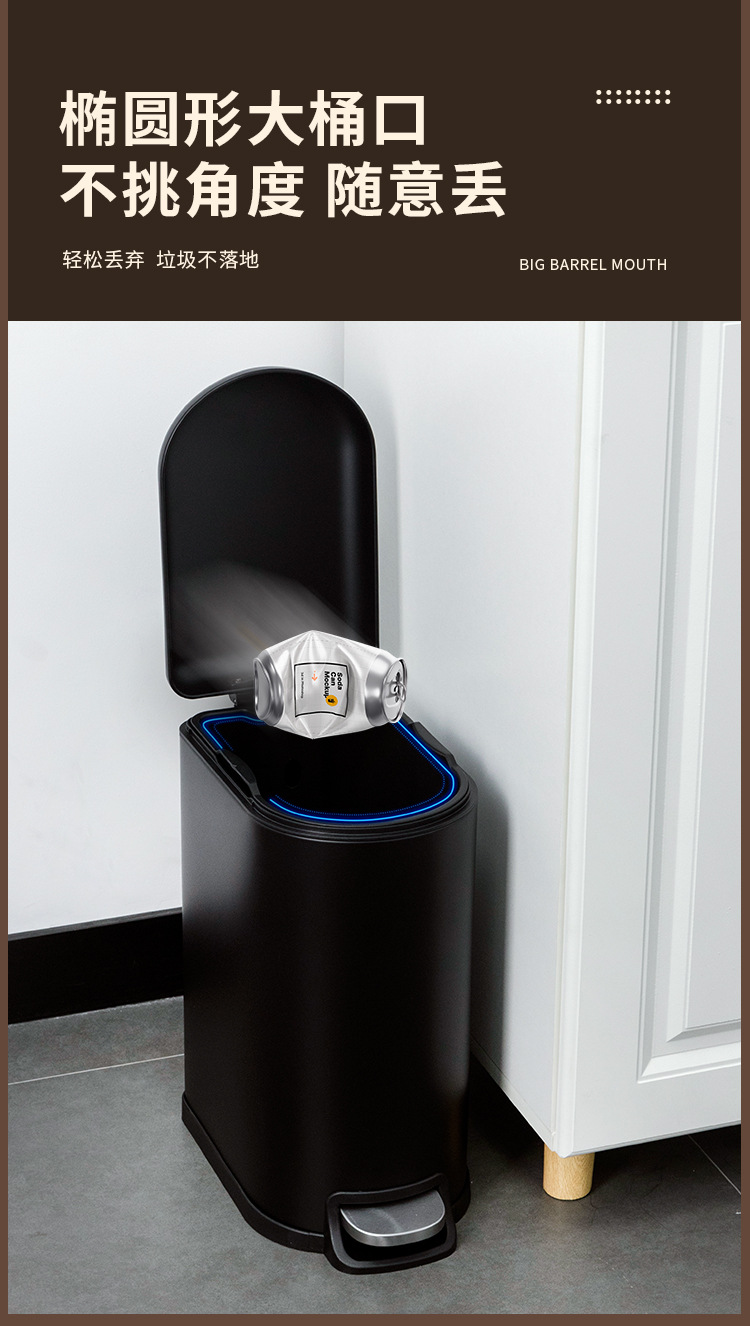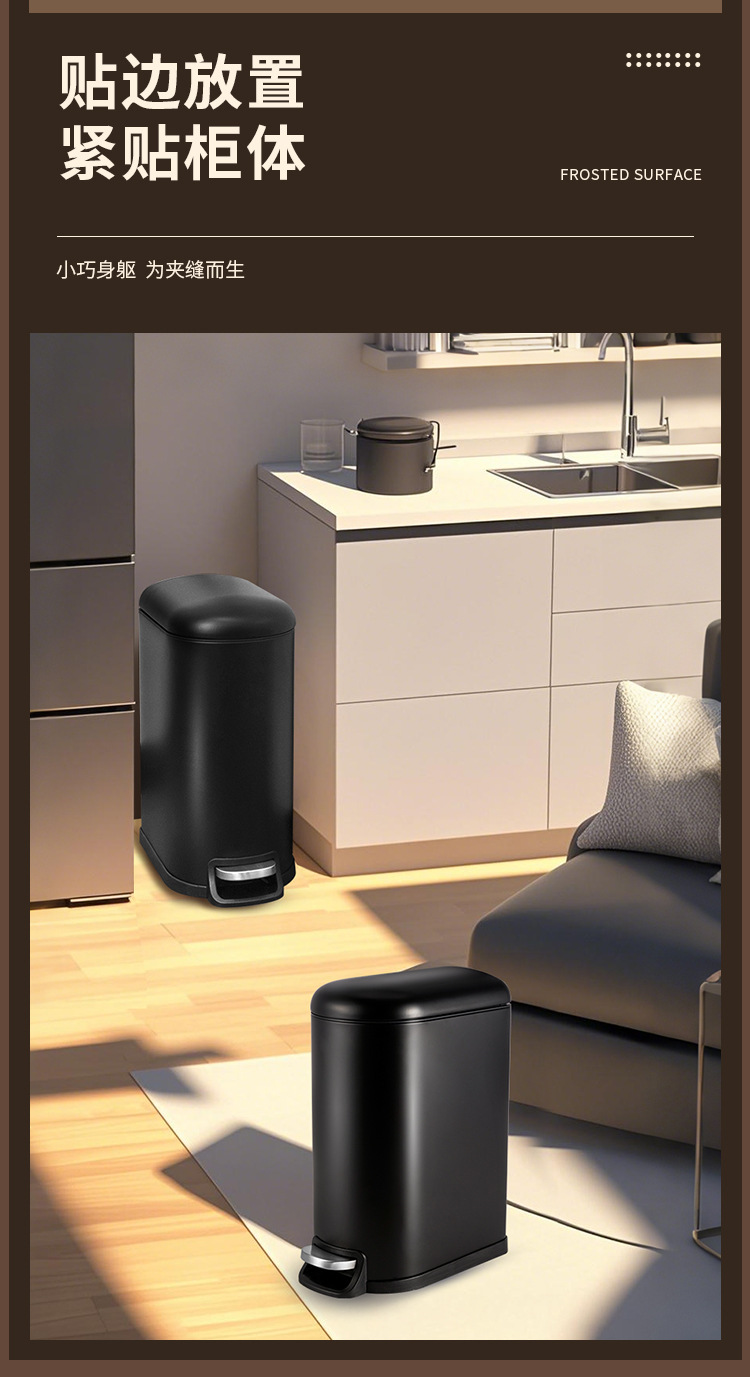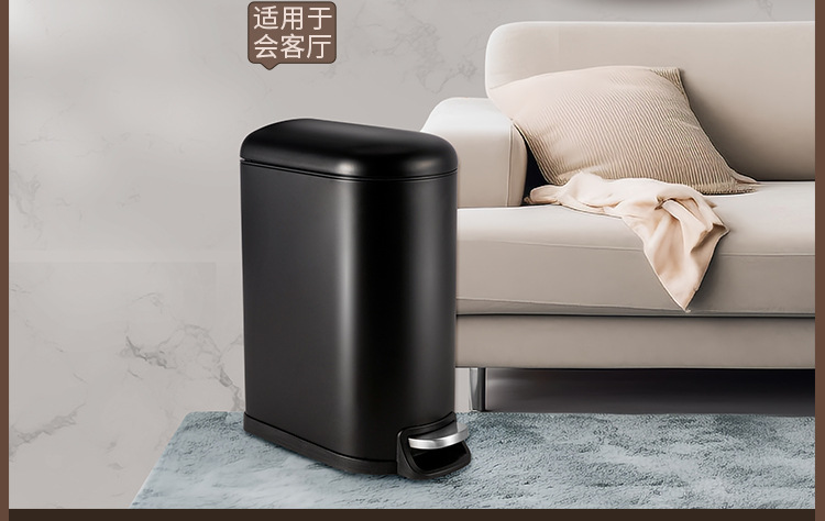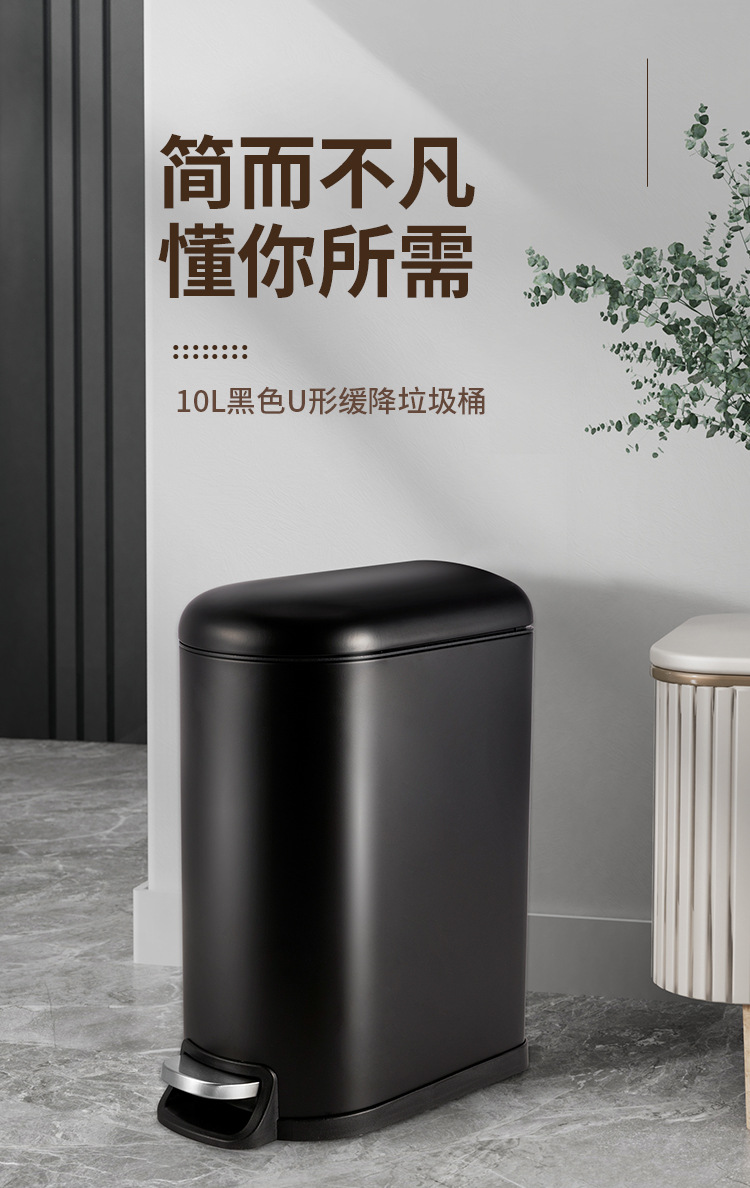 Bote de basura de tapa fija de 10 litros para el hogar negro mate, pie hacia abajo, silencioso, cubo sanitario con tapa, cubo de limpieza de cocina