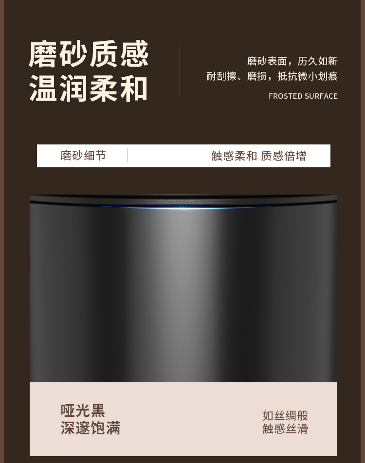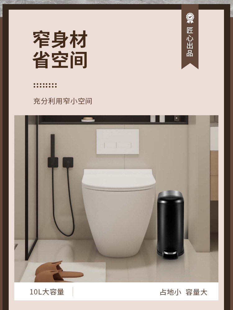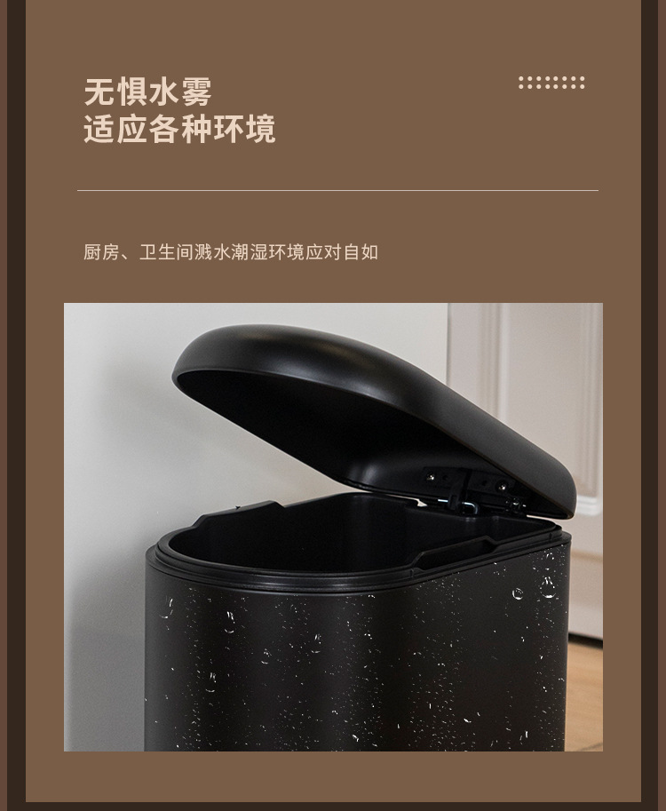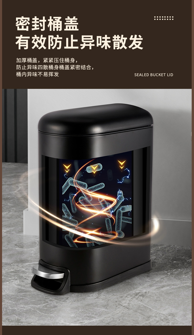 Bote de basura de tapa fija de 10 litros para el hogar negro mate, pie hacia abajo, silencioso, cubo sanitario con tapa, cubo de limpieza de cocina