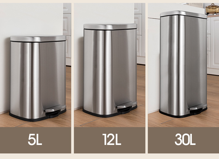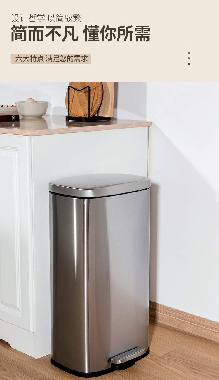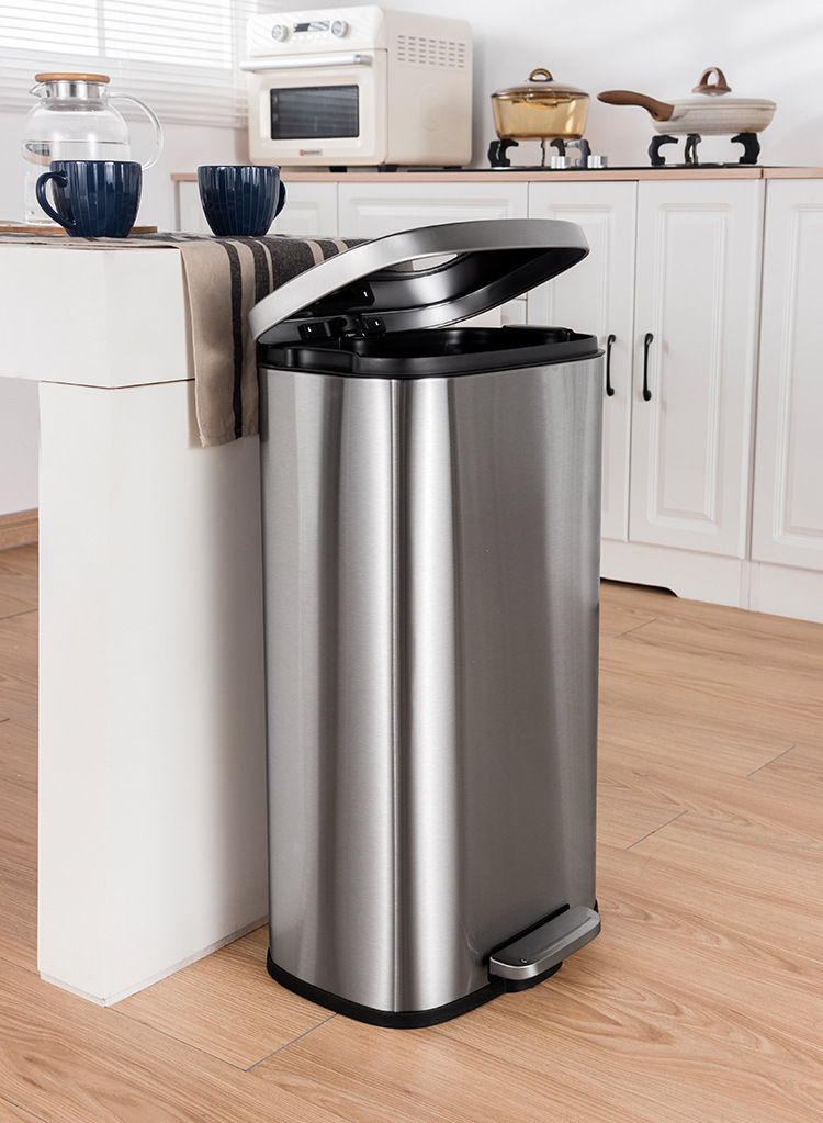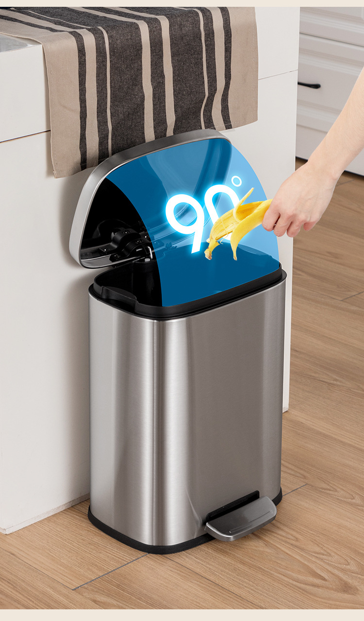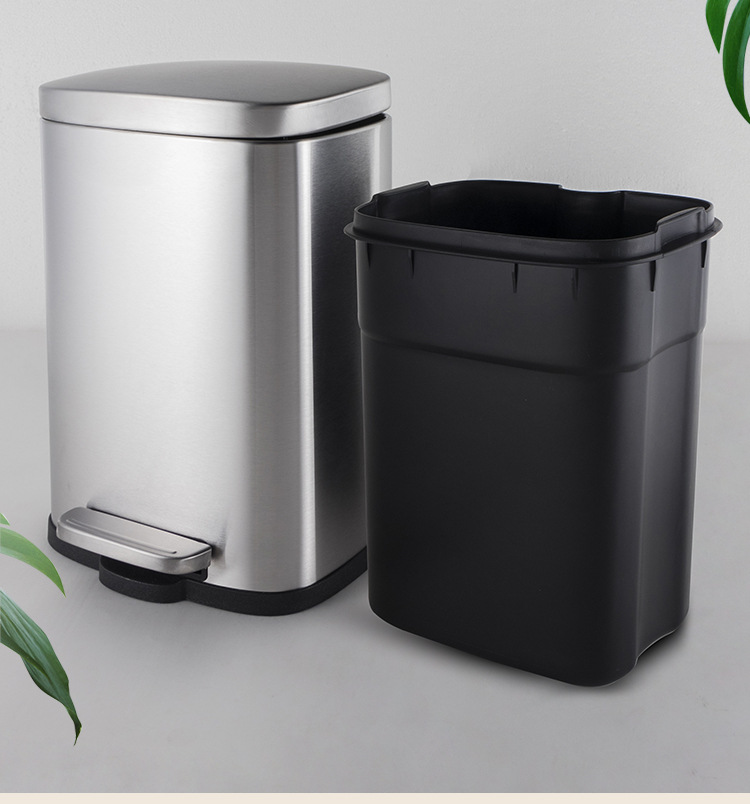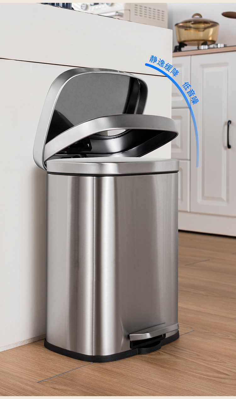 Tapa fija ligera de arena de acero inoxidable, bote de basura rectangular silencioso, sala de estar, cocina, pie, pie simple, cubo de limpieza