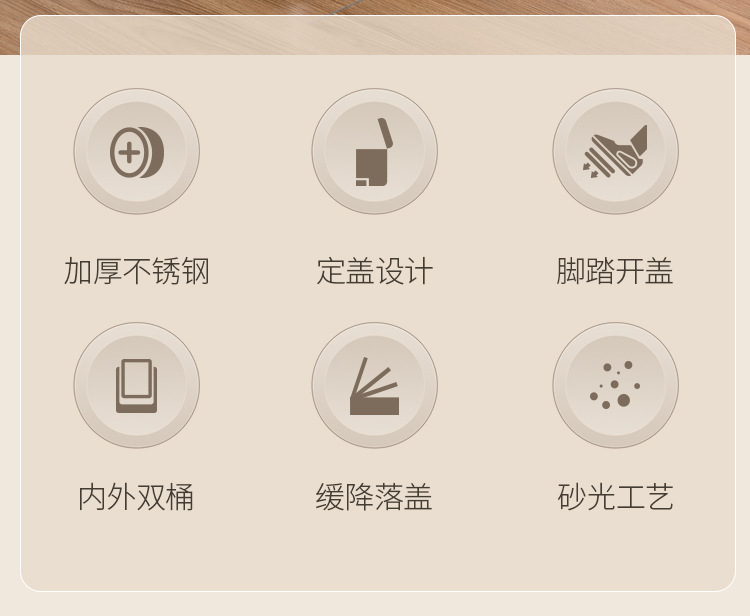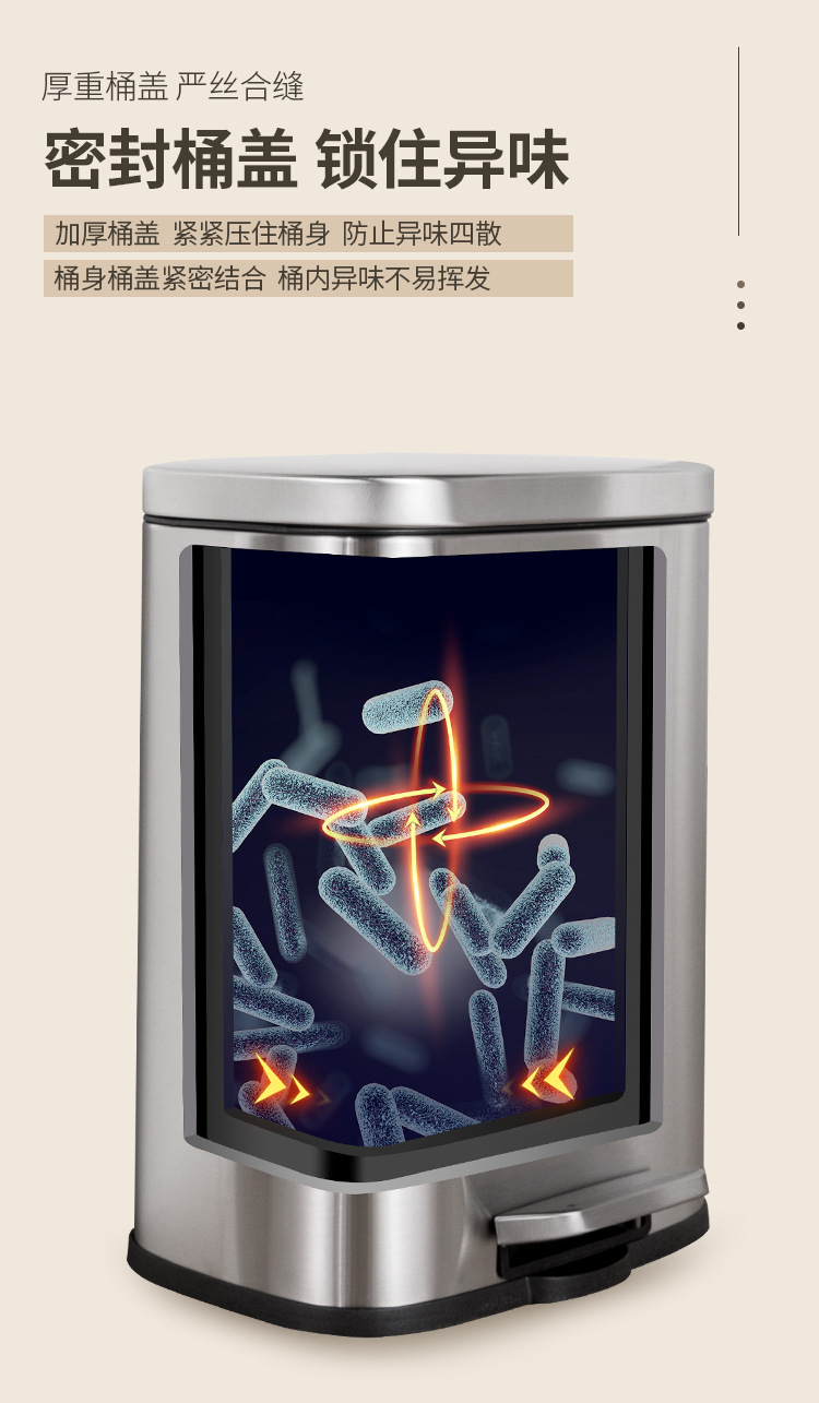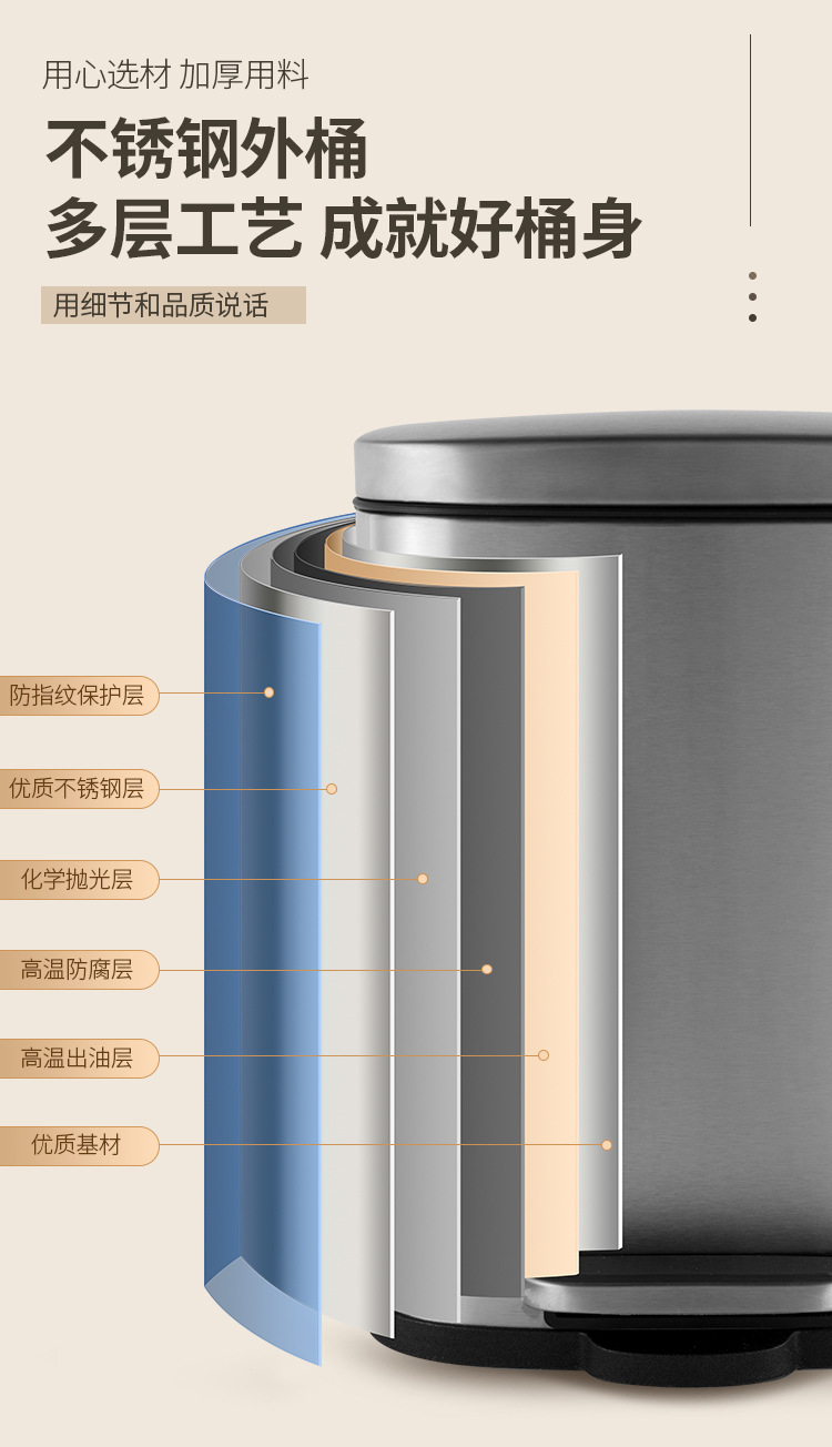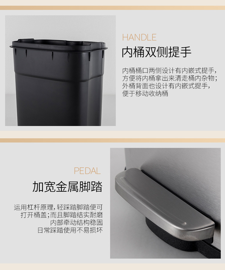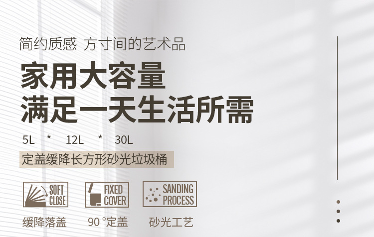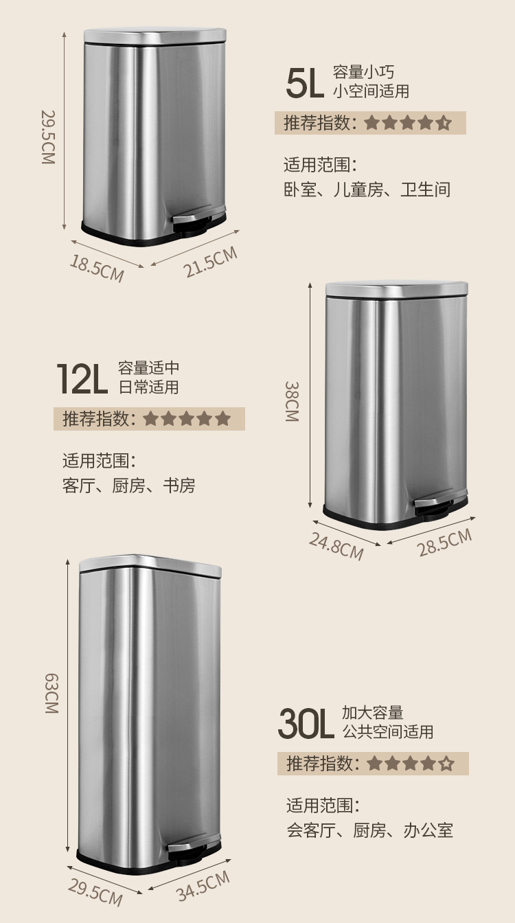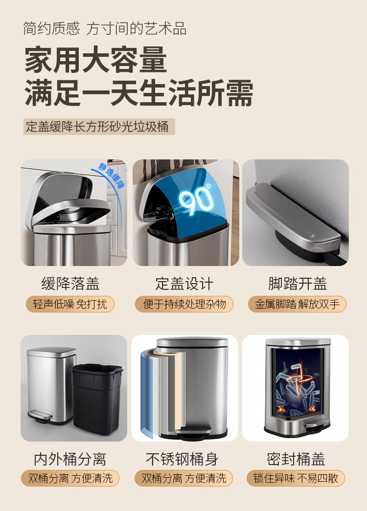 Tapa fija ligera de arena de acero inoxidable, bote de basura rectangular silencioso, sala de estar, cocina, pie, pie simple, cubo de limpieza
