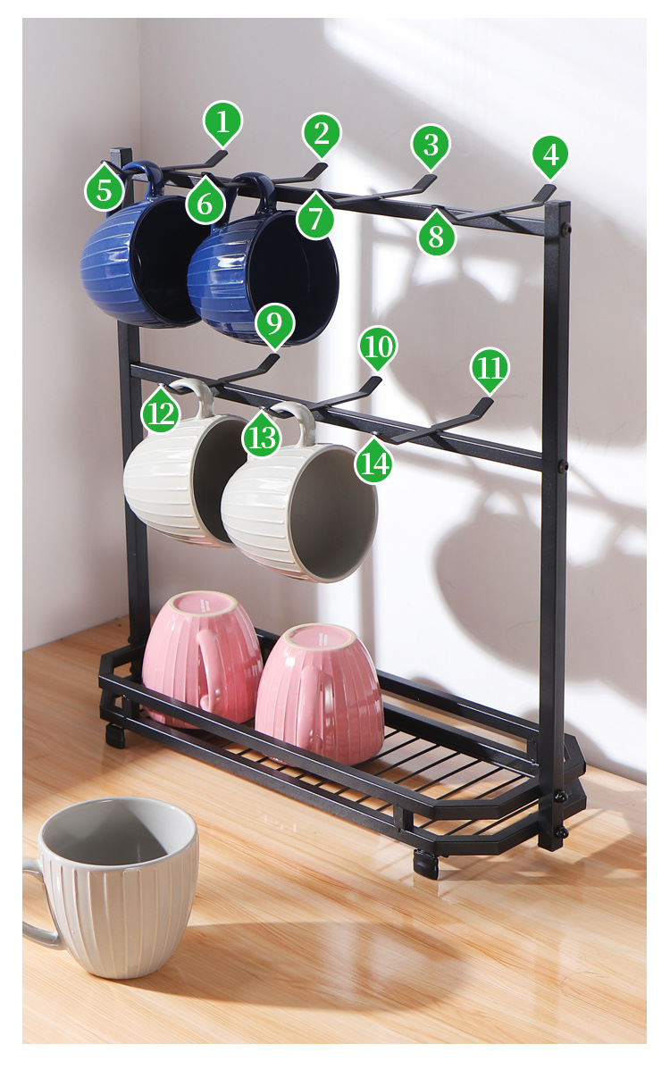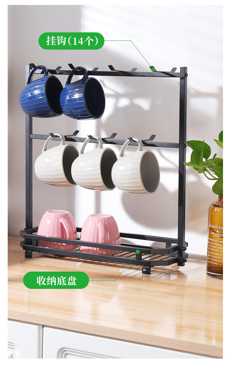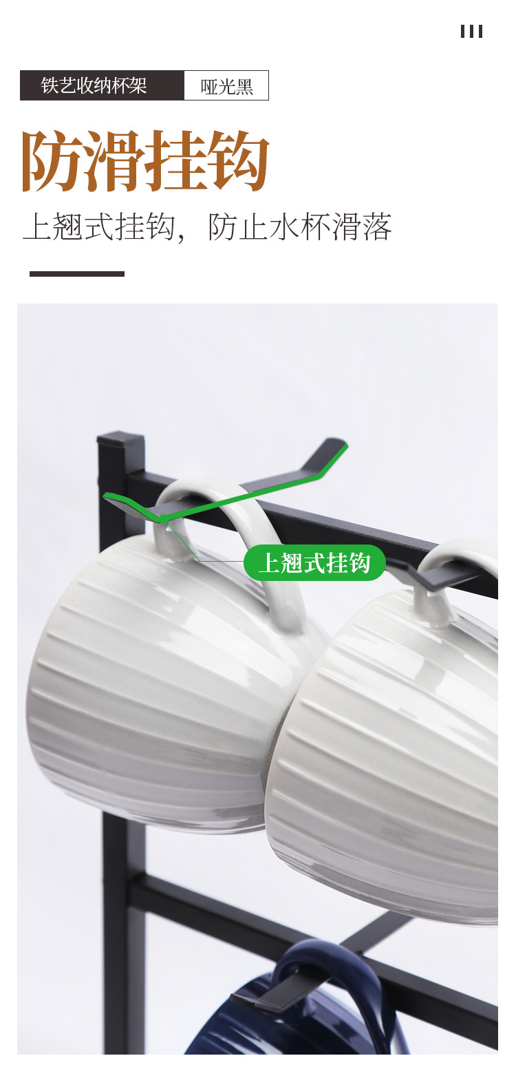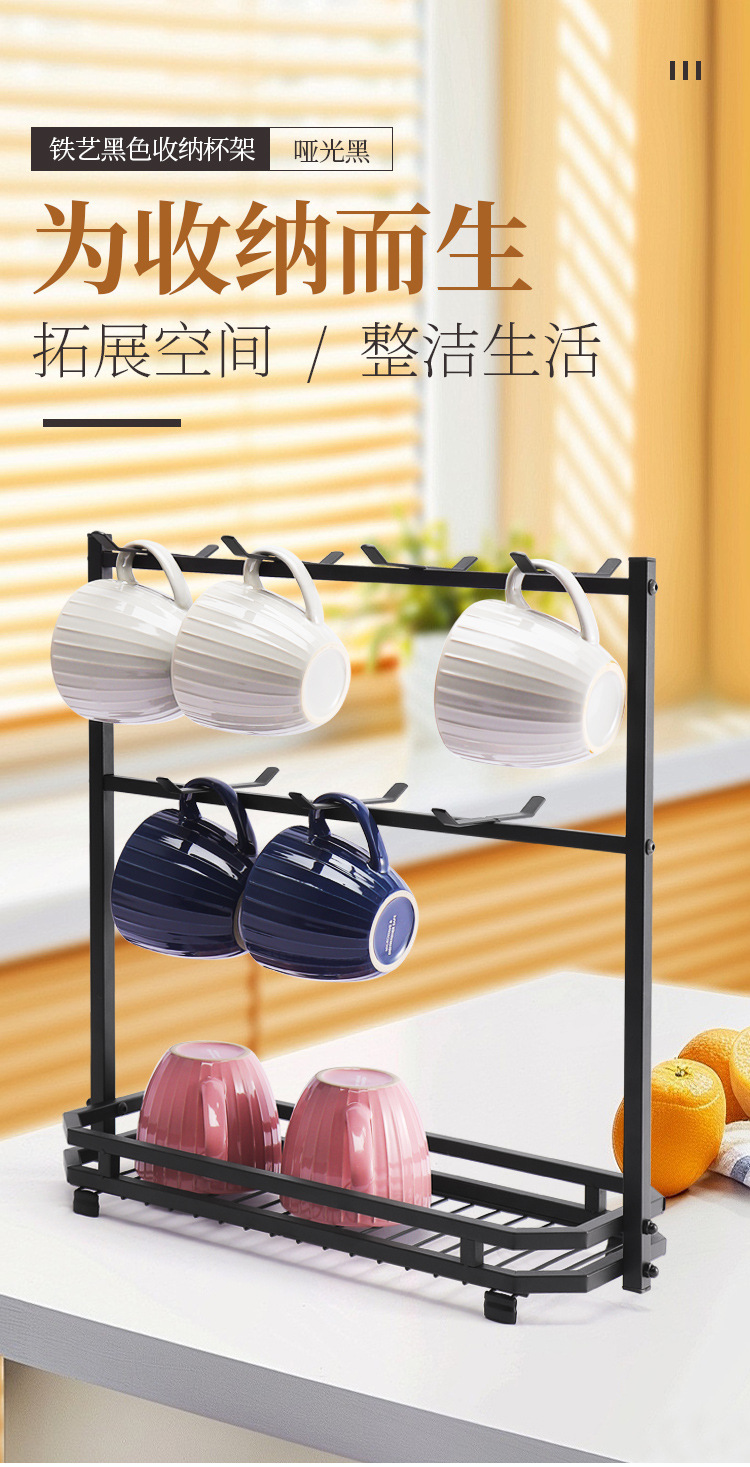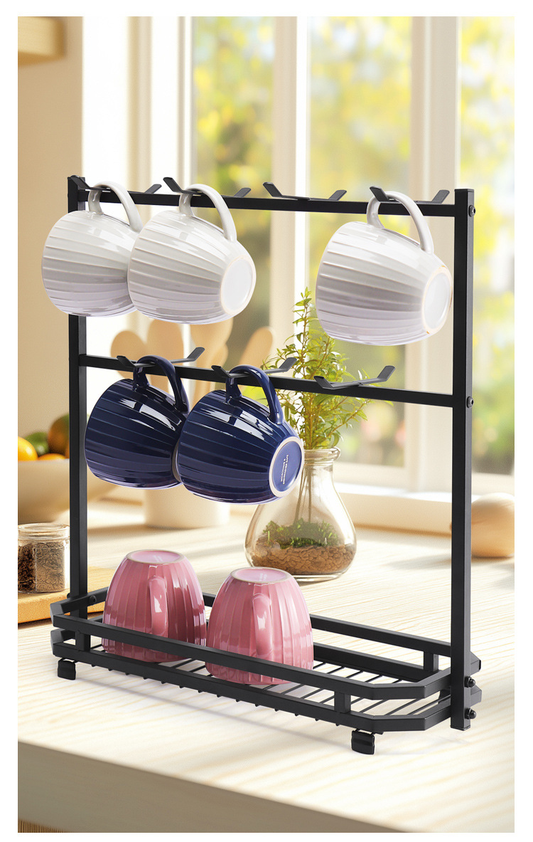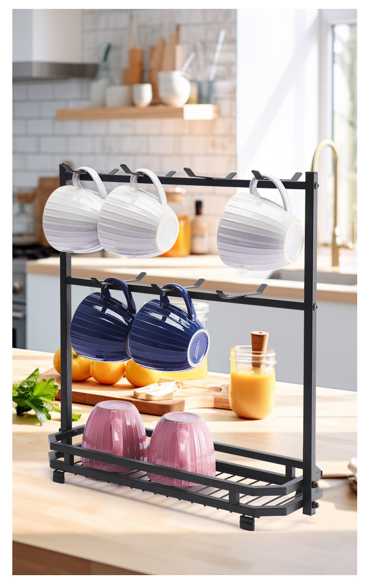 Soporte para tazas de café en stock, estante de hierro forjado sin taladro para tazas, estante de almacenamiento de tres niveles para tazas de té invertidas para cocina.